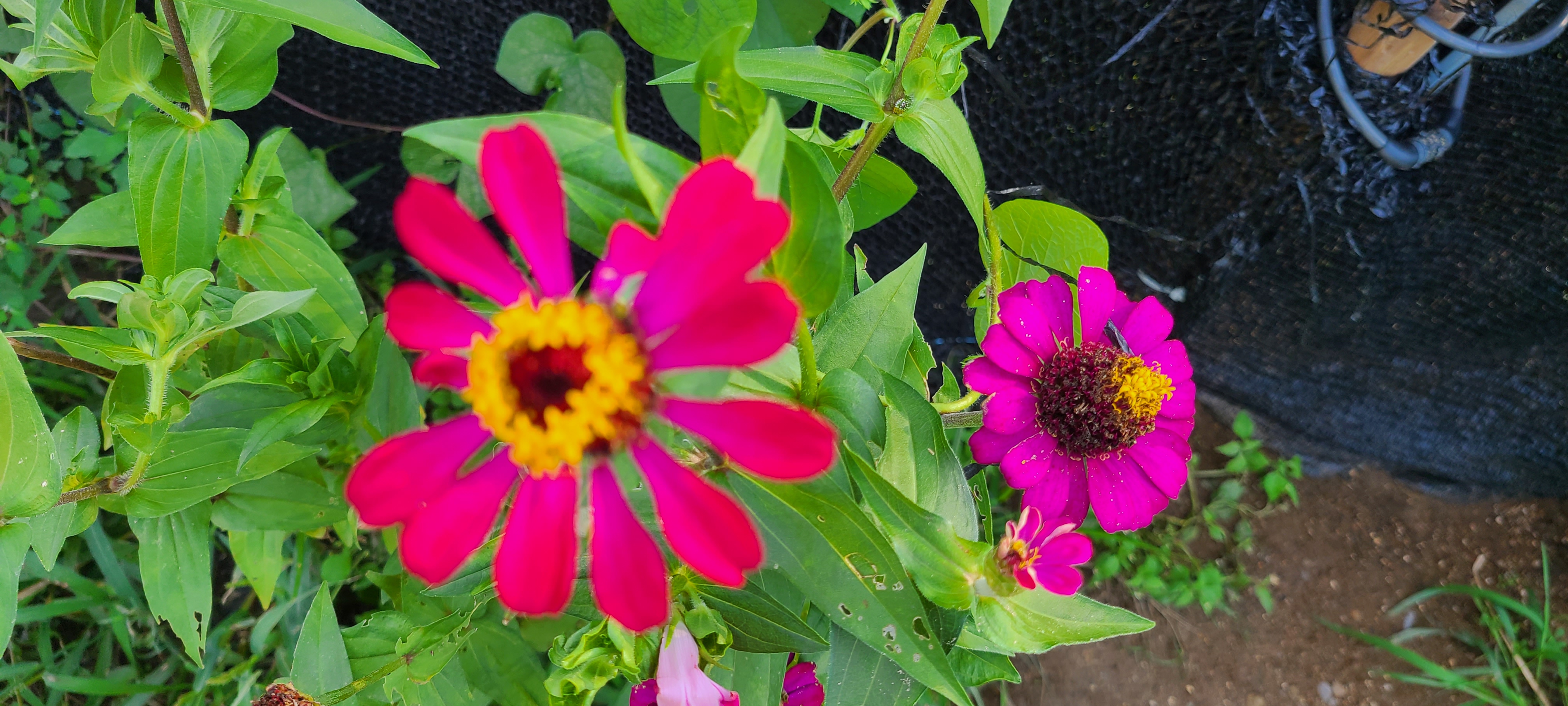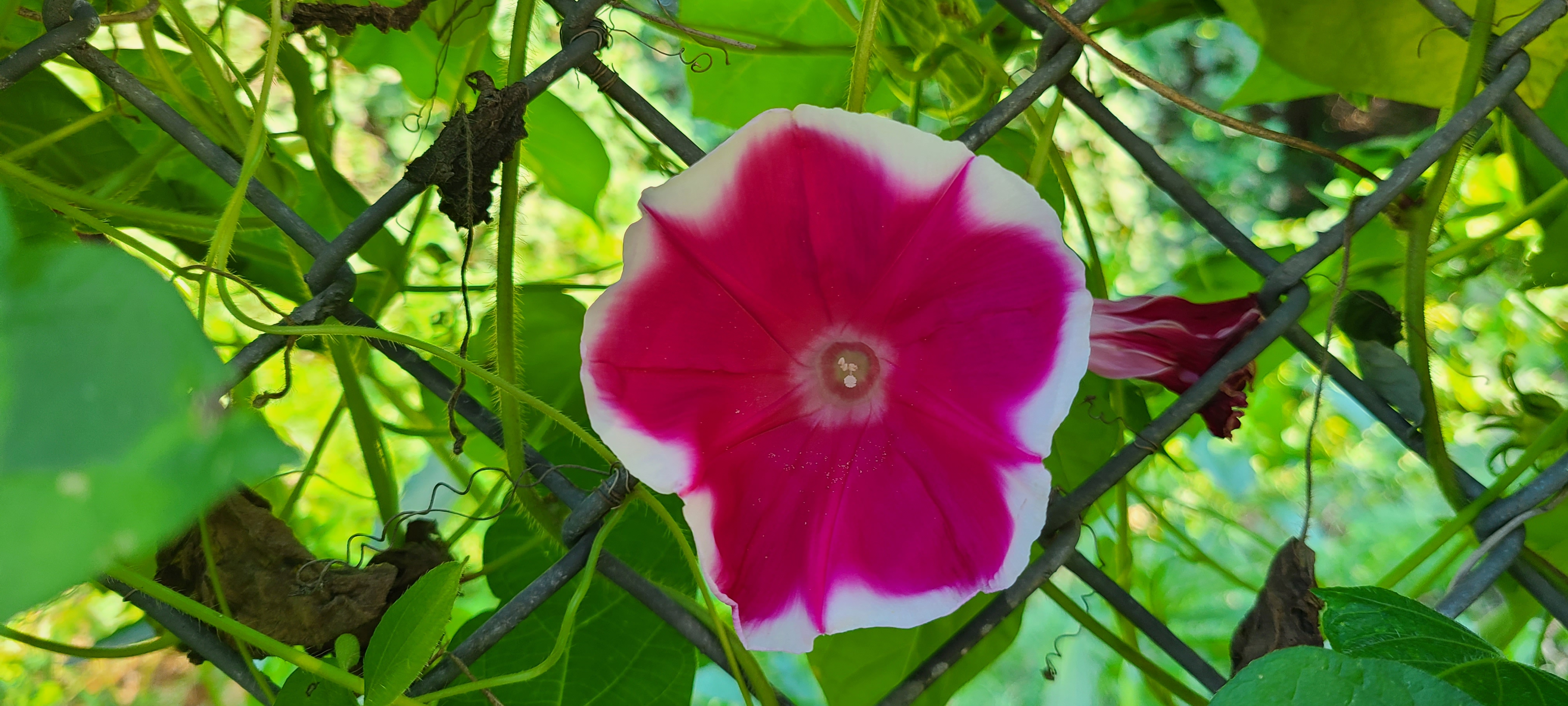 나팔꽃과 백일홍이 피어 보기에도 좋다.