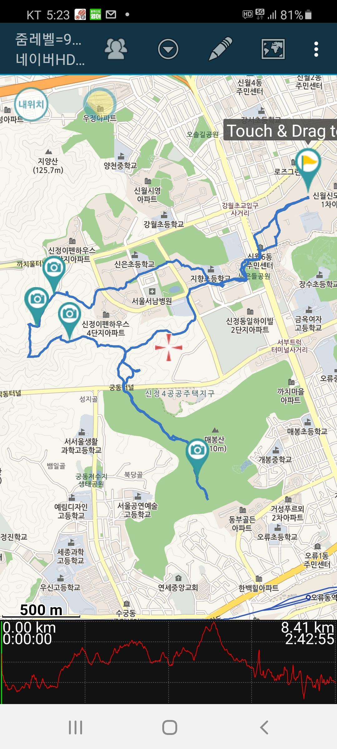 3.차고지-능선-구로올레길고척동-원점-장군봉-양천텃밭-이펜4단지-귀가, 8.41km