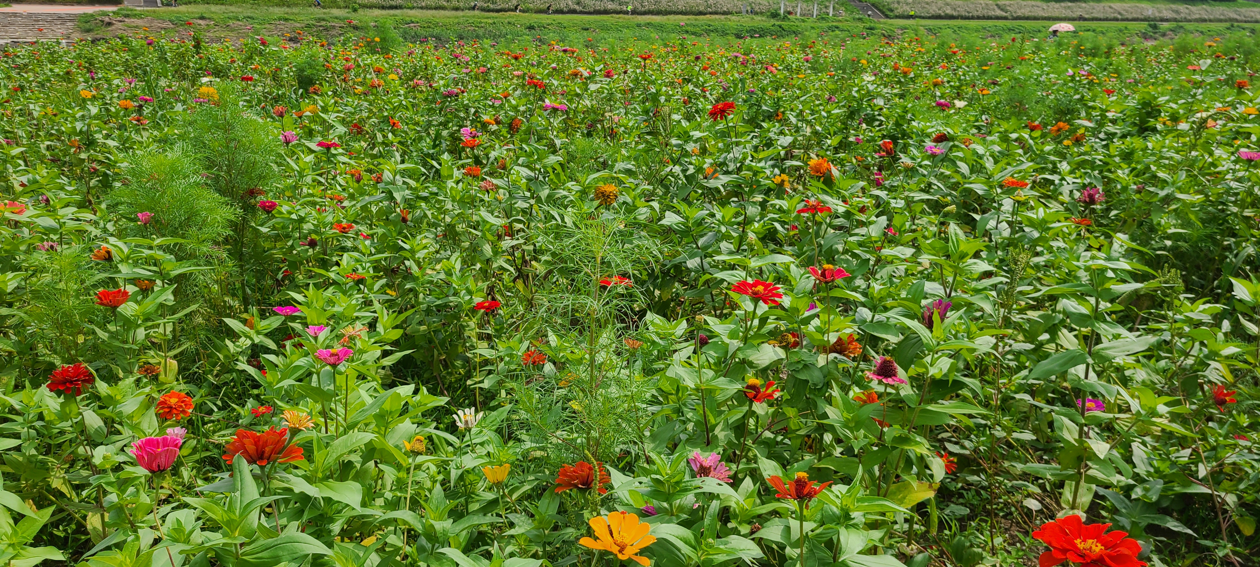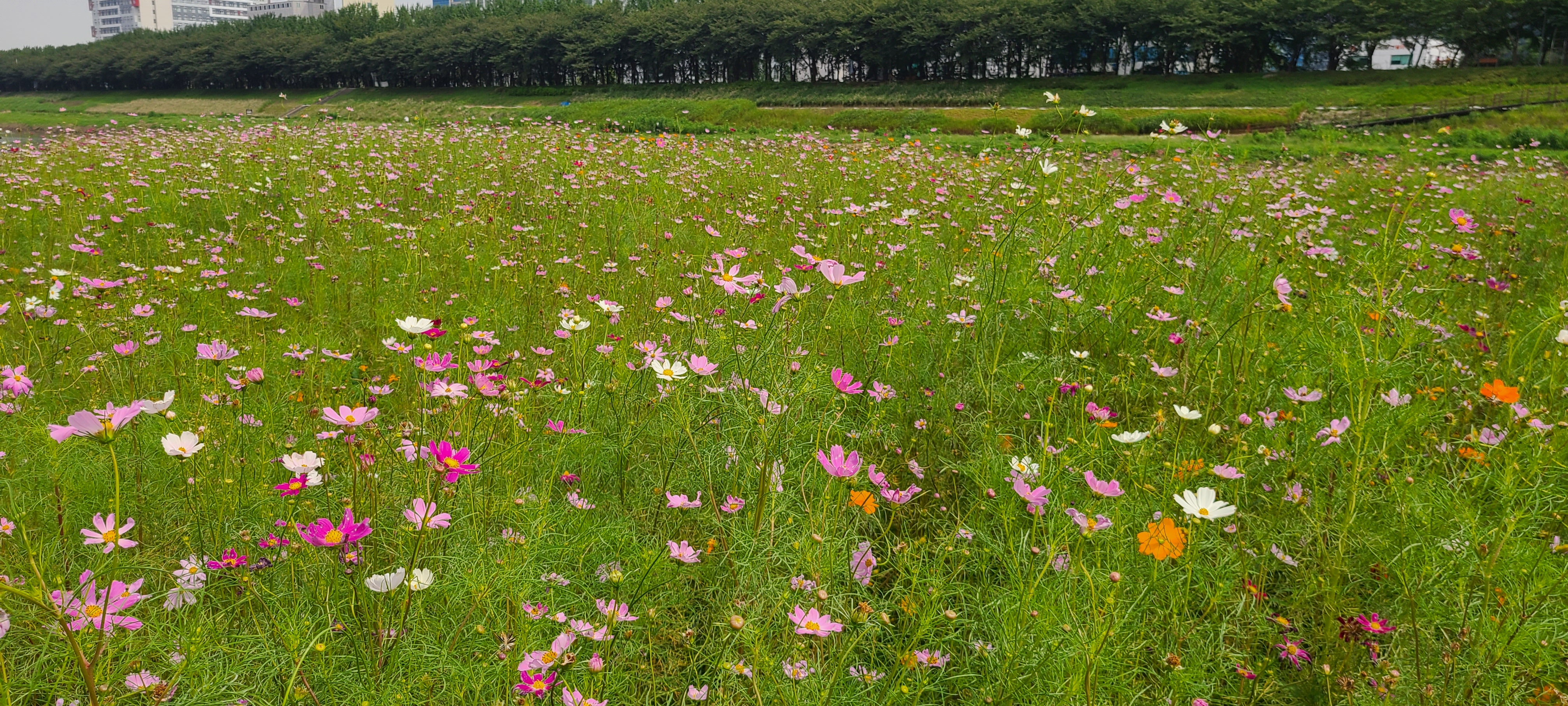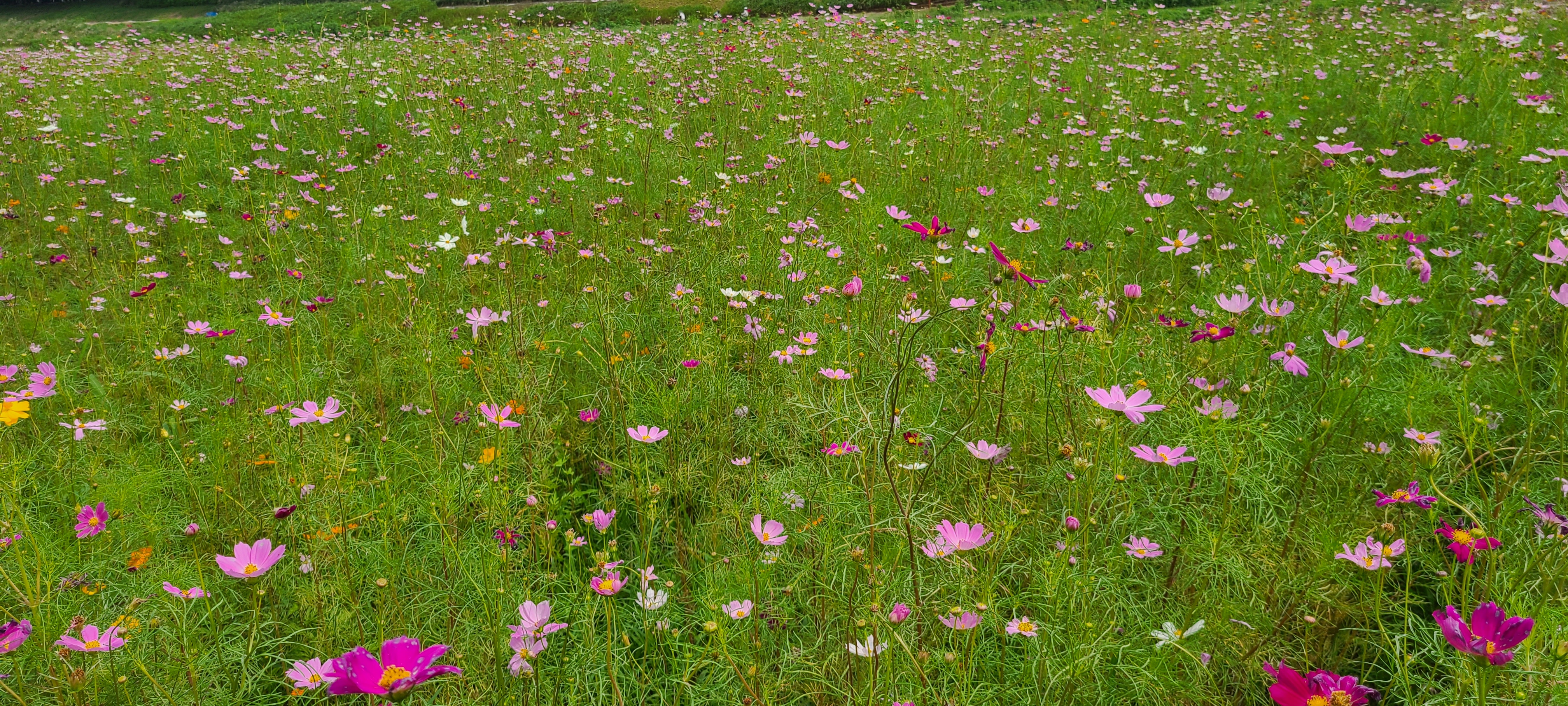 지자체에서 잘 가꾼 꽃밭에는 백일홍과 코스모스가 여름과 가을을 보여주고 있다.