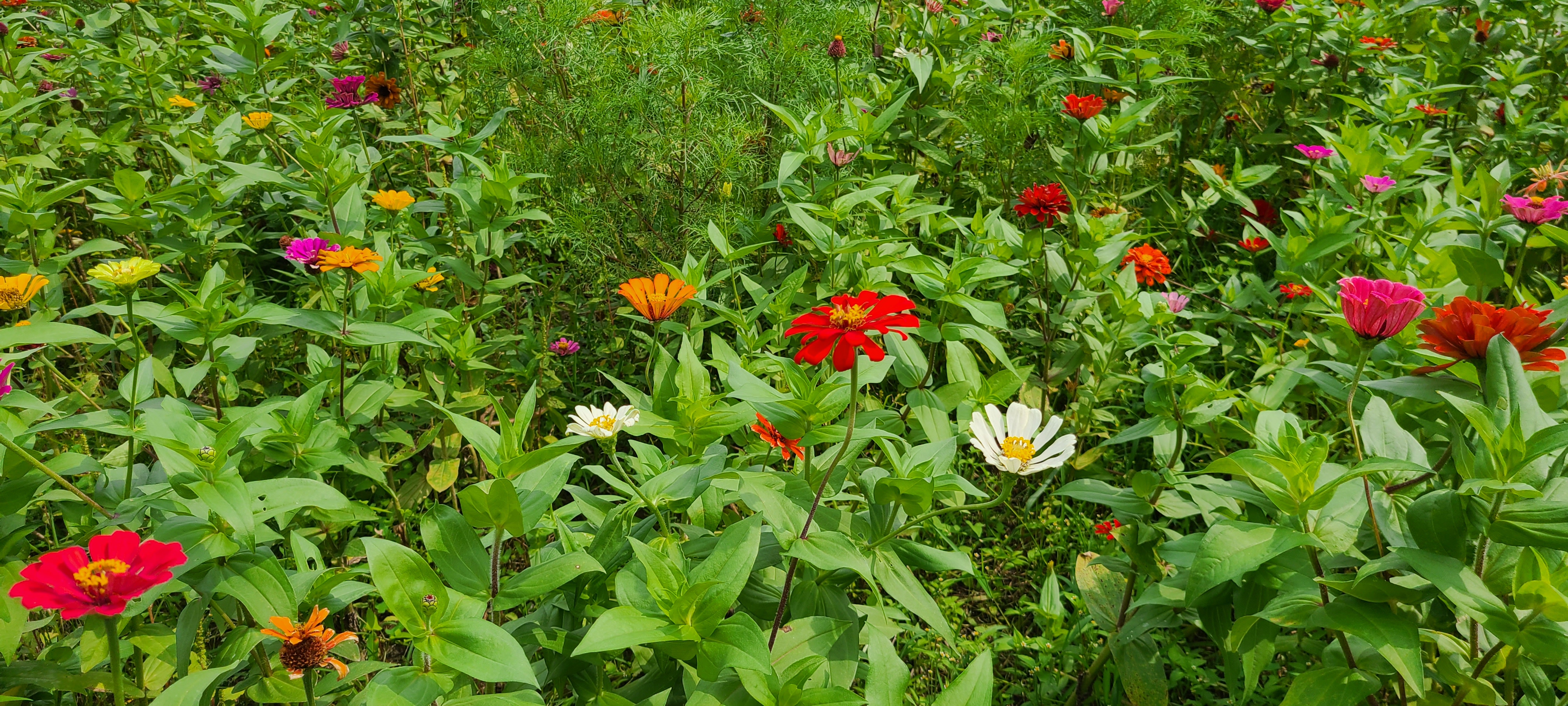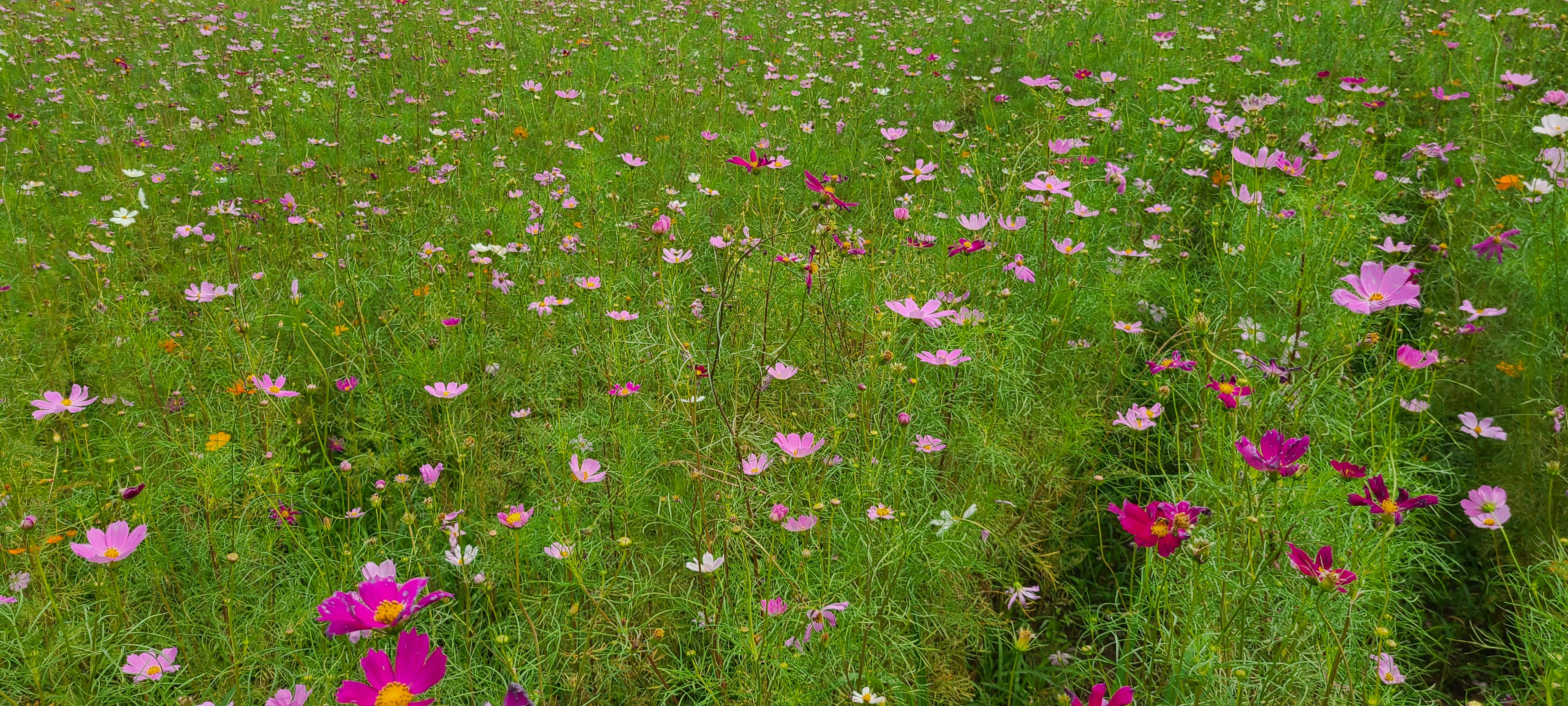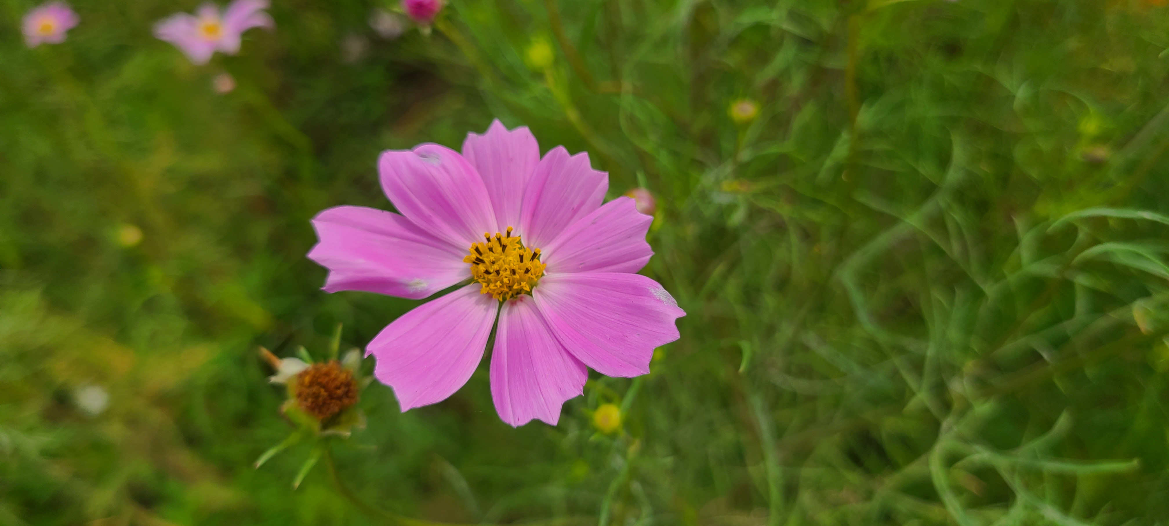 지자체에서 잘 가꾼 꽃밭에는 백일홍과 코스모스가 여름과 가을을 보여주고 있다.