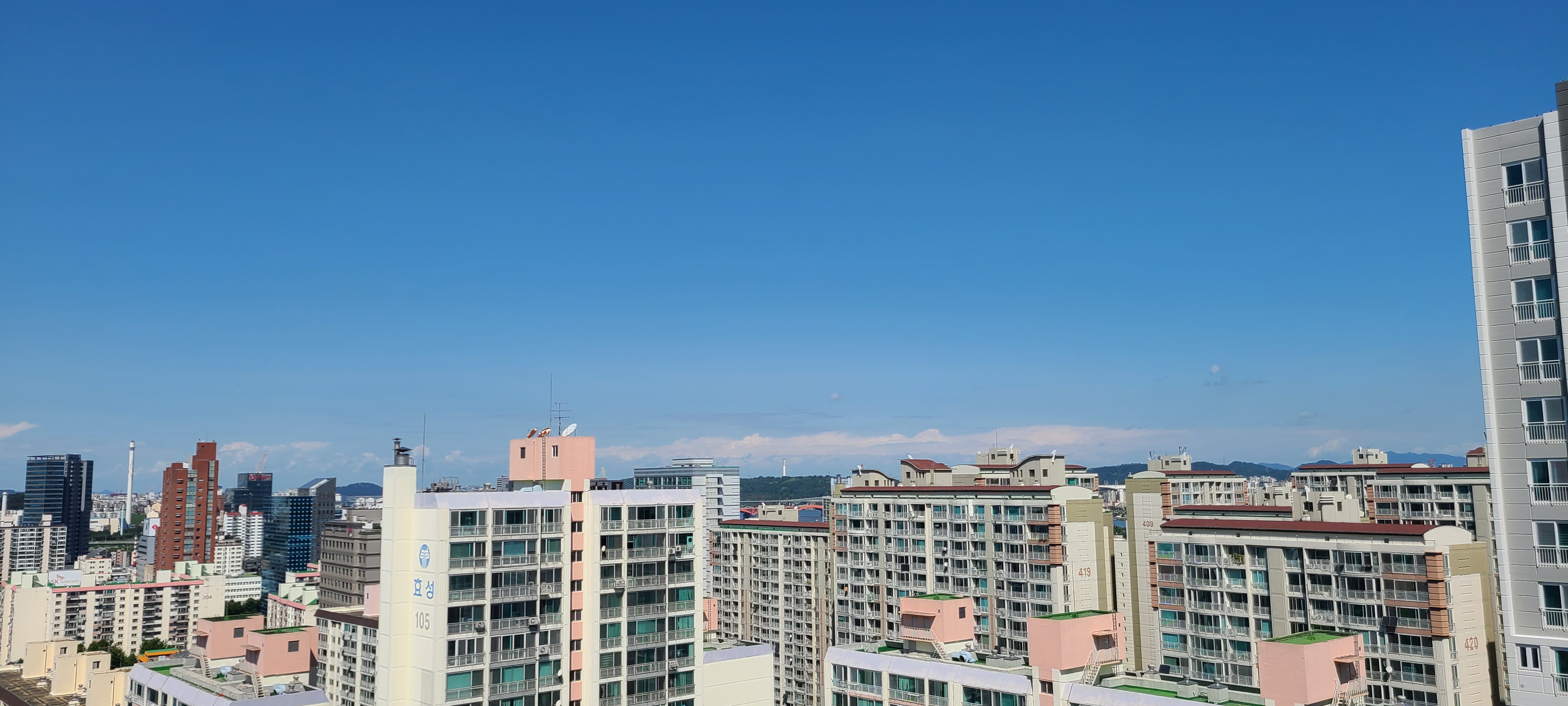 맑고 푸른하늘과 뭉게구름,멀리 북한산이 잡힐듯 가까이 선명하게 바라보이는 가을의 하늘이다.