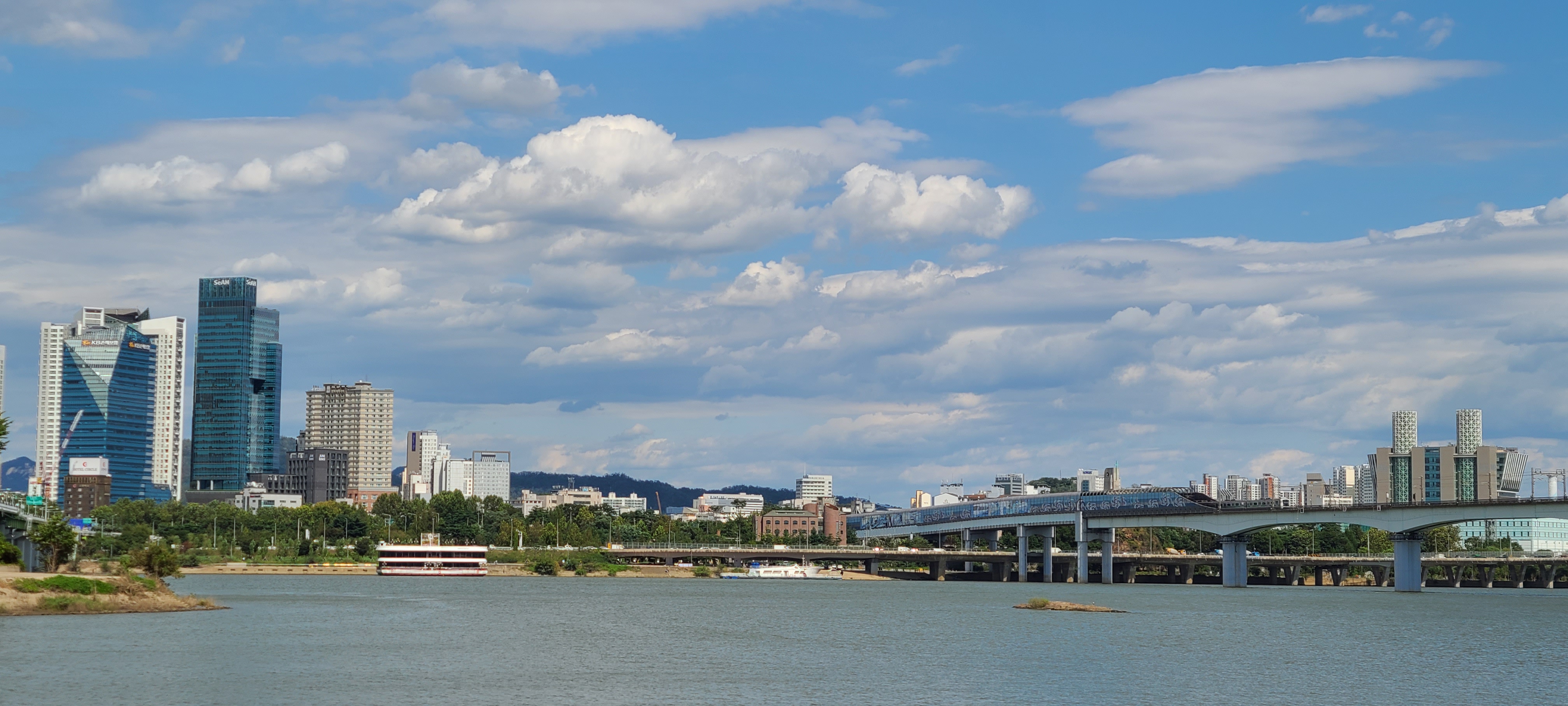 하교시키면서 날씨가 좋고 한강에 가까우니 걸어서 산책을 나간다.