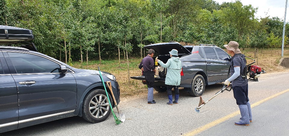 주변의 잡목을 톱질과 낫으로 제거하고,제초기작업,주변정리등 쉬운작업이 아니다.