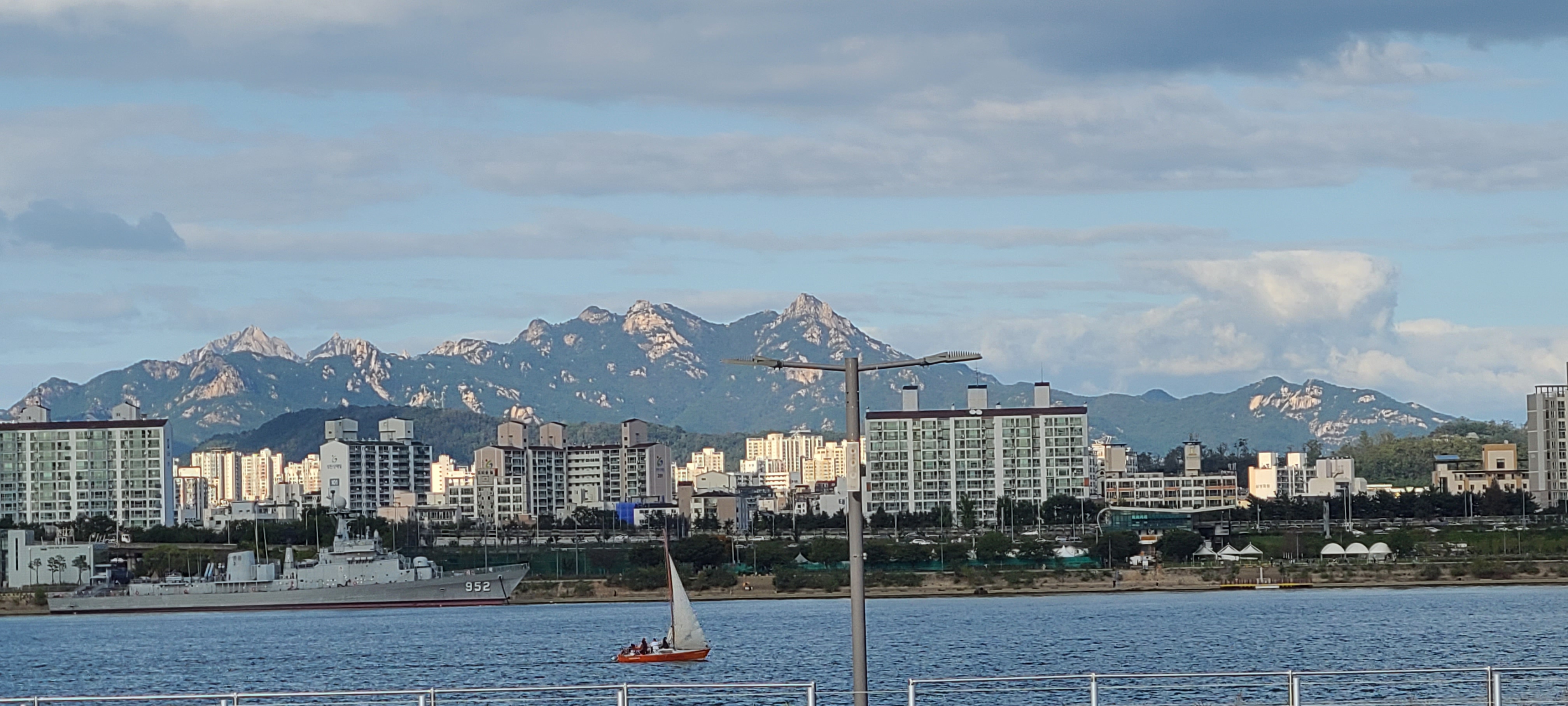 쾌청한 하늘은 멀리 북한산의 자락이 선명하게 다가온다.