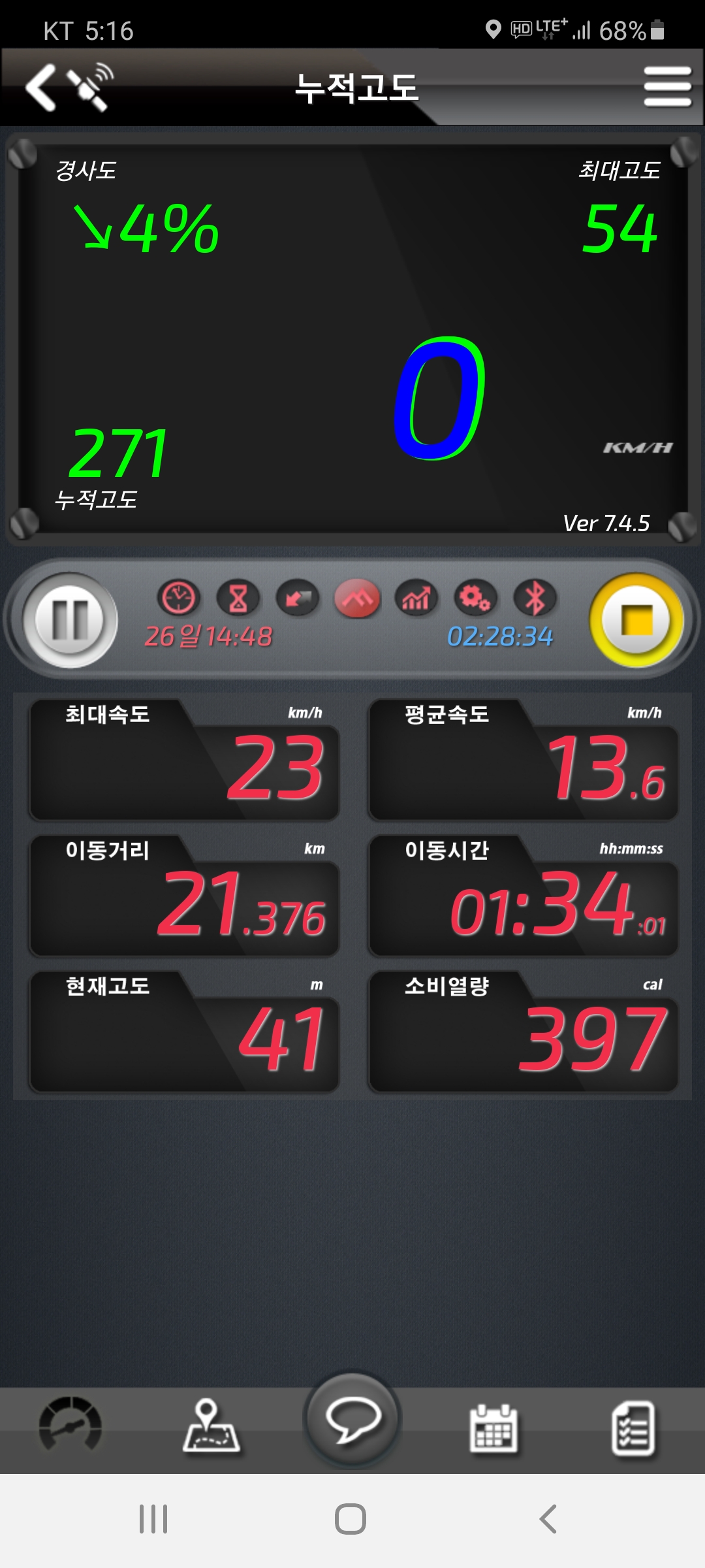 조금씩 거리를 길게 라이딩을 하여야하는데 꼭 간곳까지만 운행하는 습성이있다.