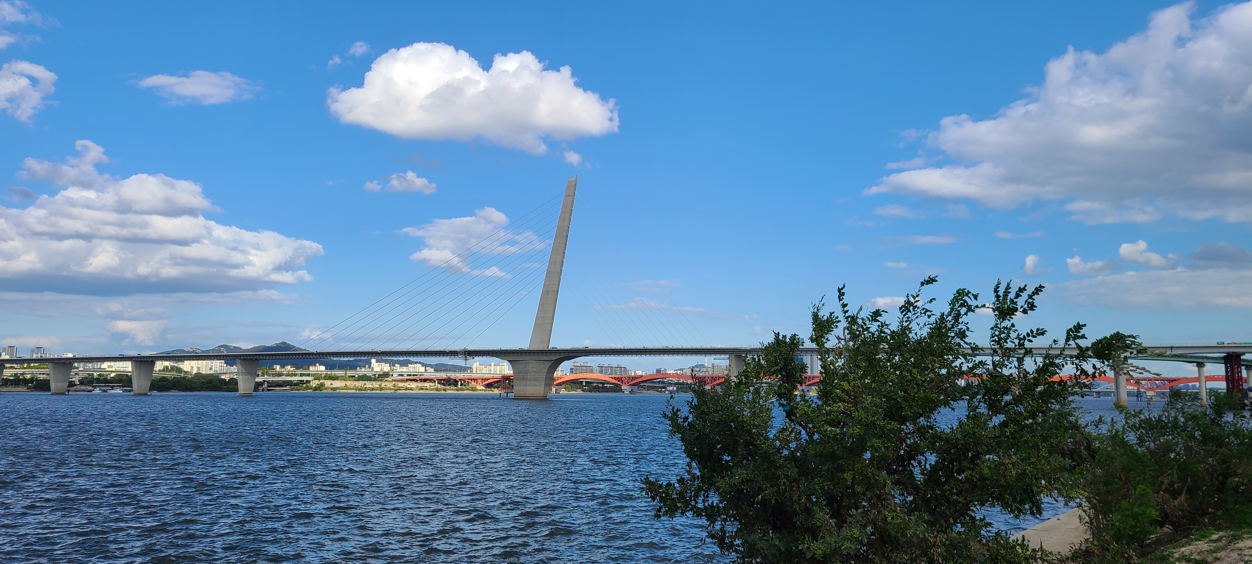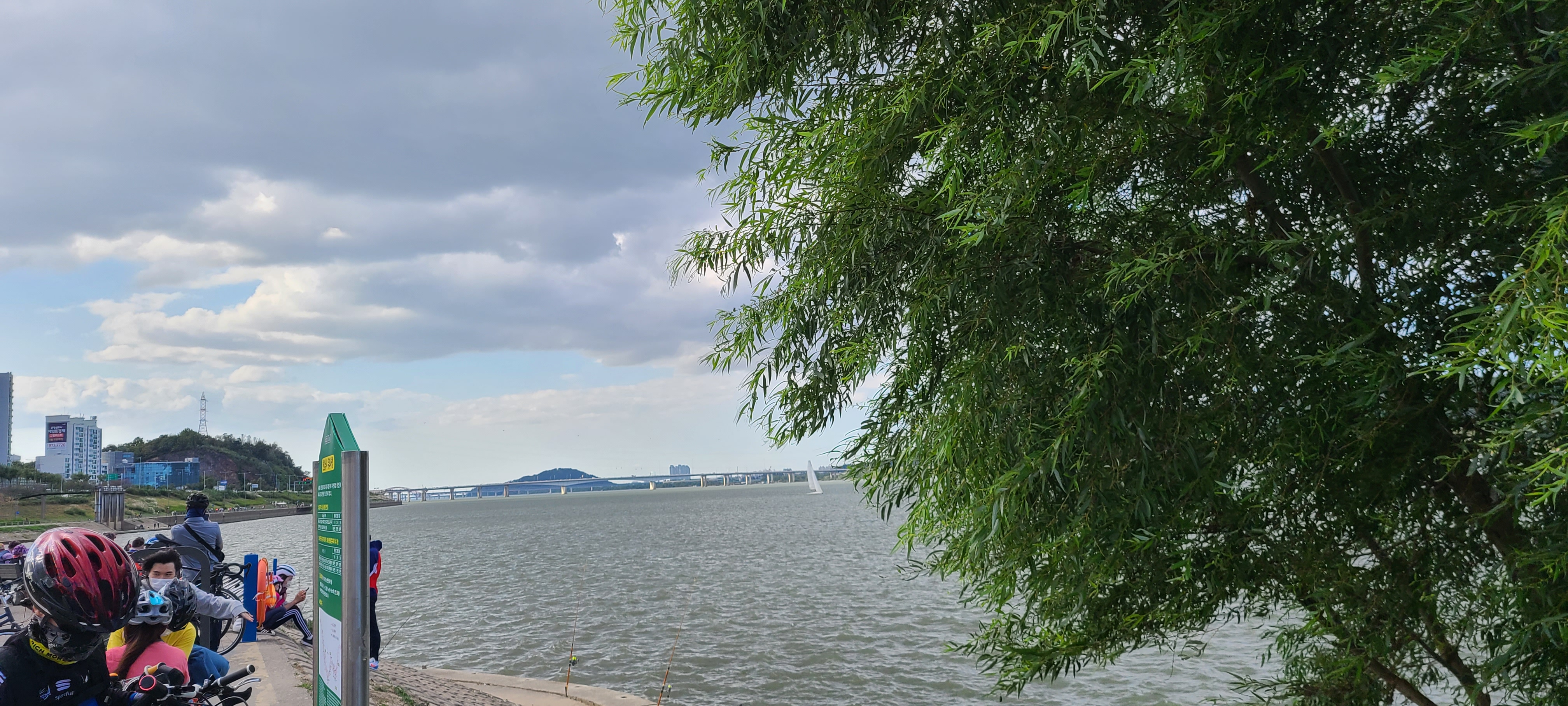 한시간여에 걸쳐 한강합수부에 다다른다. 한강은 또 다른 모습을 연출해준다.