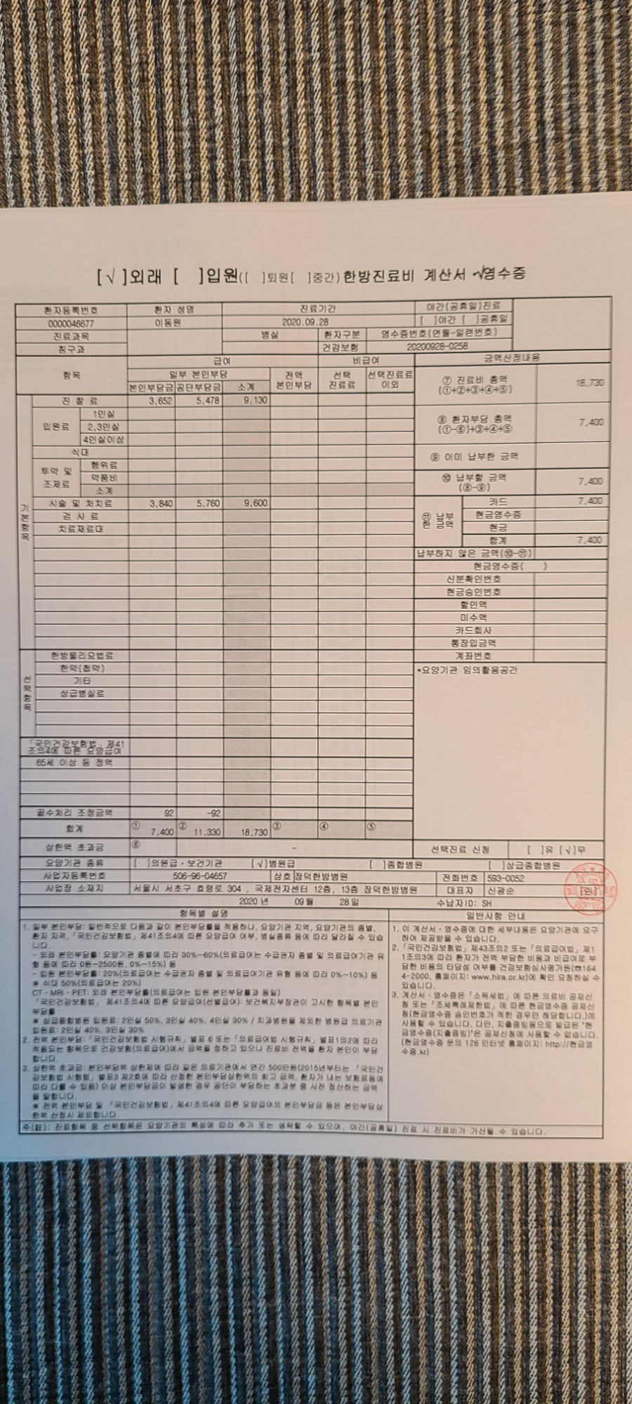 한방은 보험대상이 아니지만 양방은 대상이 되니 두달치를 모아서 청구를 하려한다.