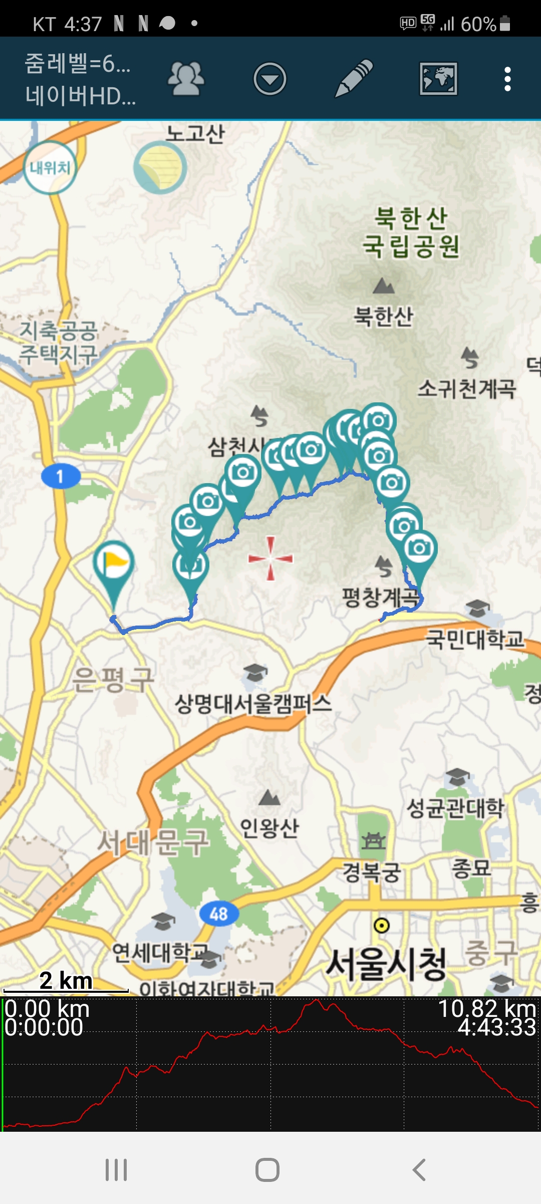 마지막코스를 내리고는 둘레길코스를 타고 평창동코스로 내리면서 산행을 종료한다.