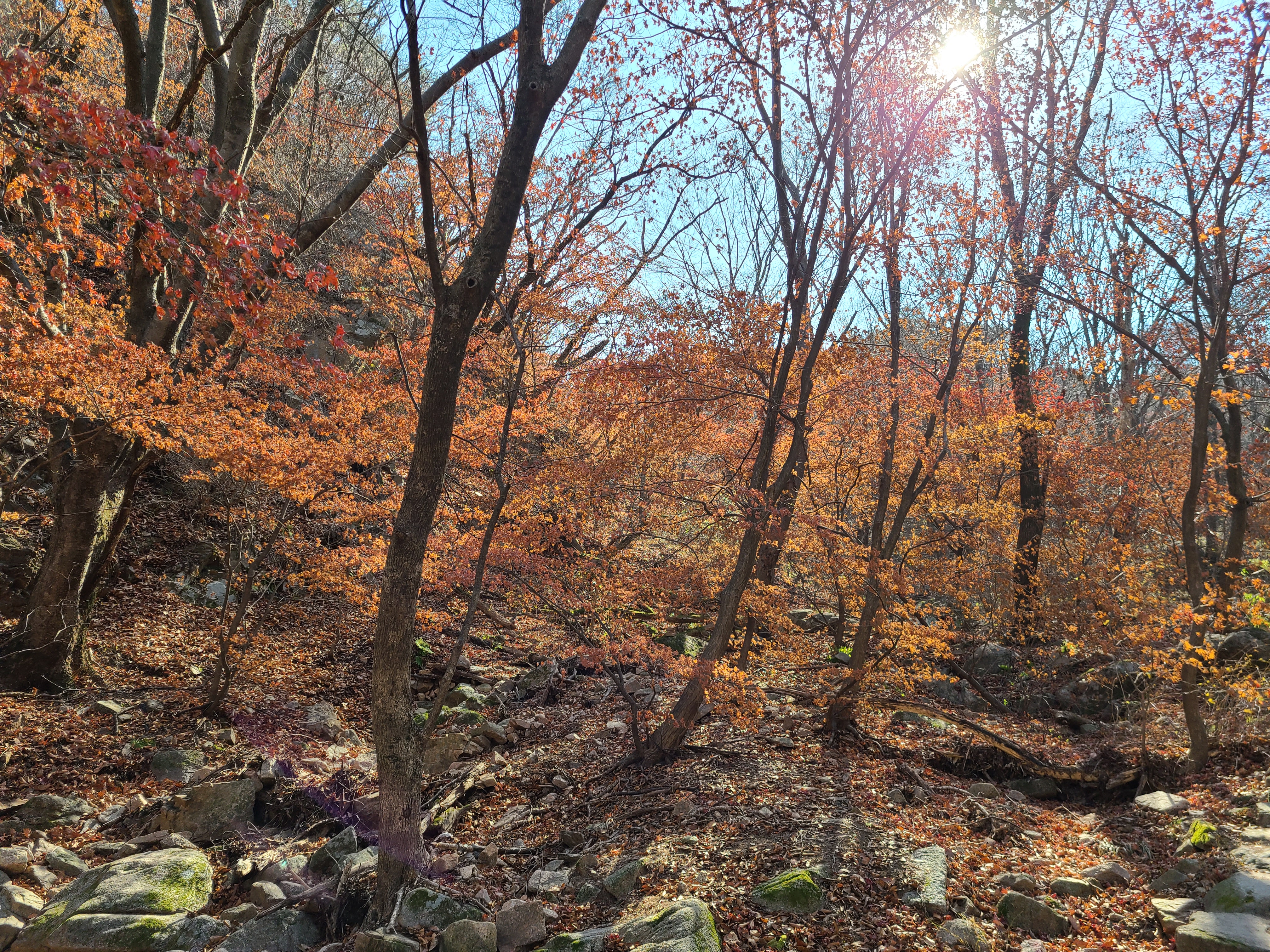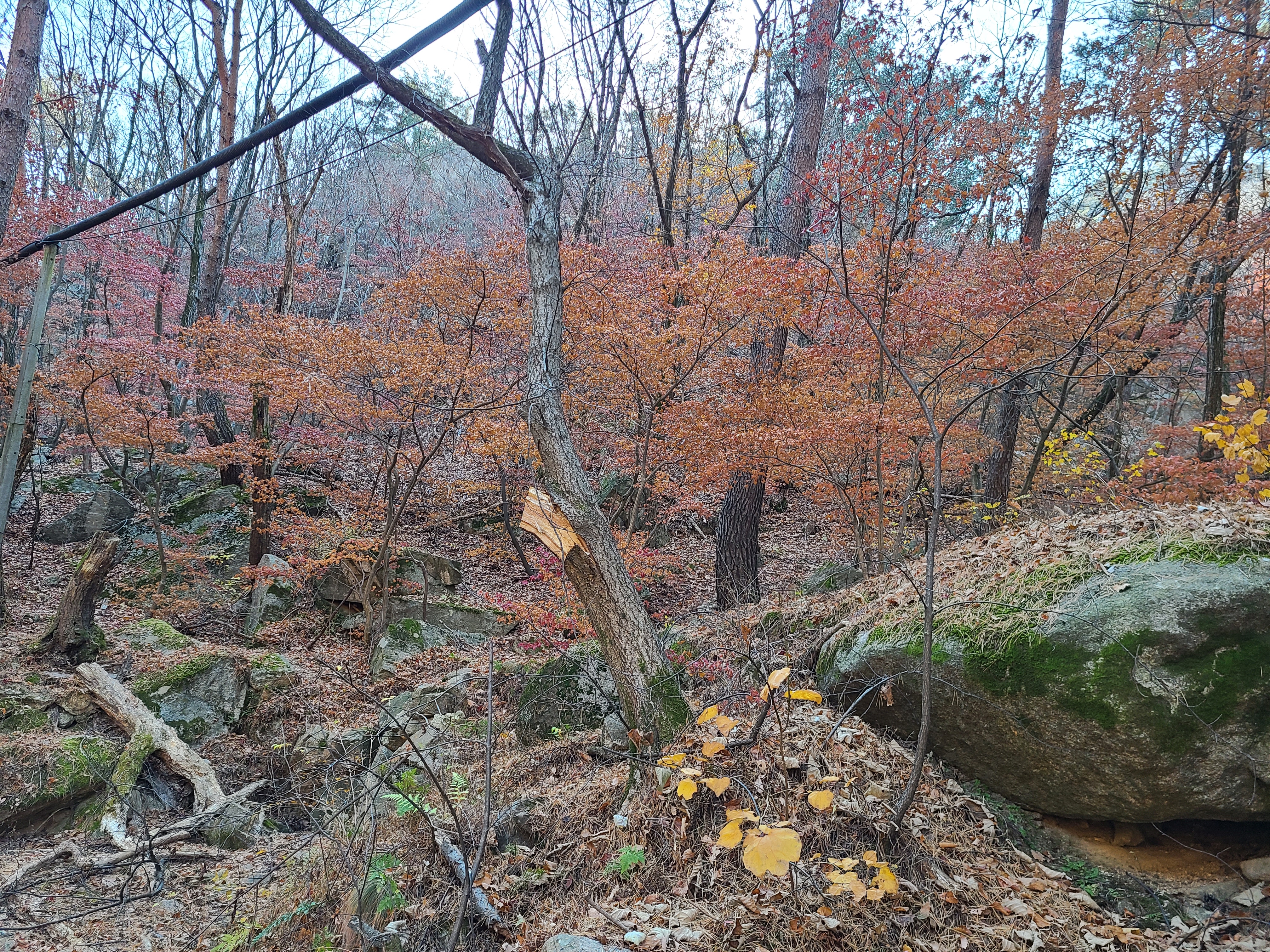 이곳에는 바싹 말르기는 하여도 단풍이 나무에 붙어있어 얼핏보기에는 아름다운 모습을 연출하고있다.