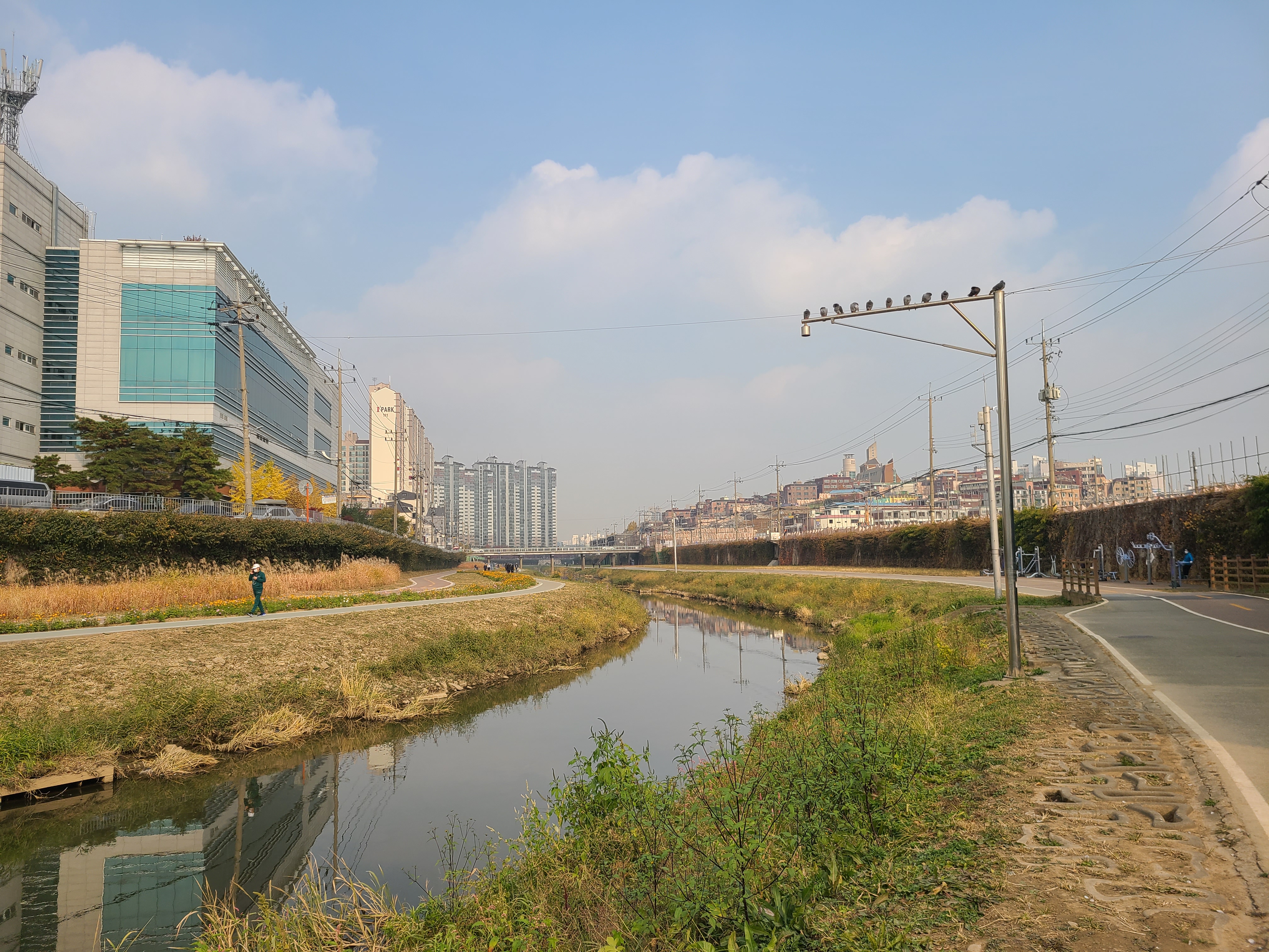 전형적인 가을날씨속에 겨울옷을 입고 안양천을 달려 고척동에서 목감천으로 들어선다.