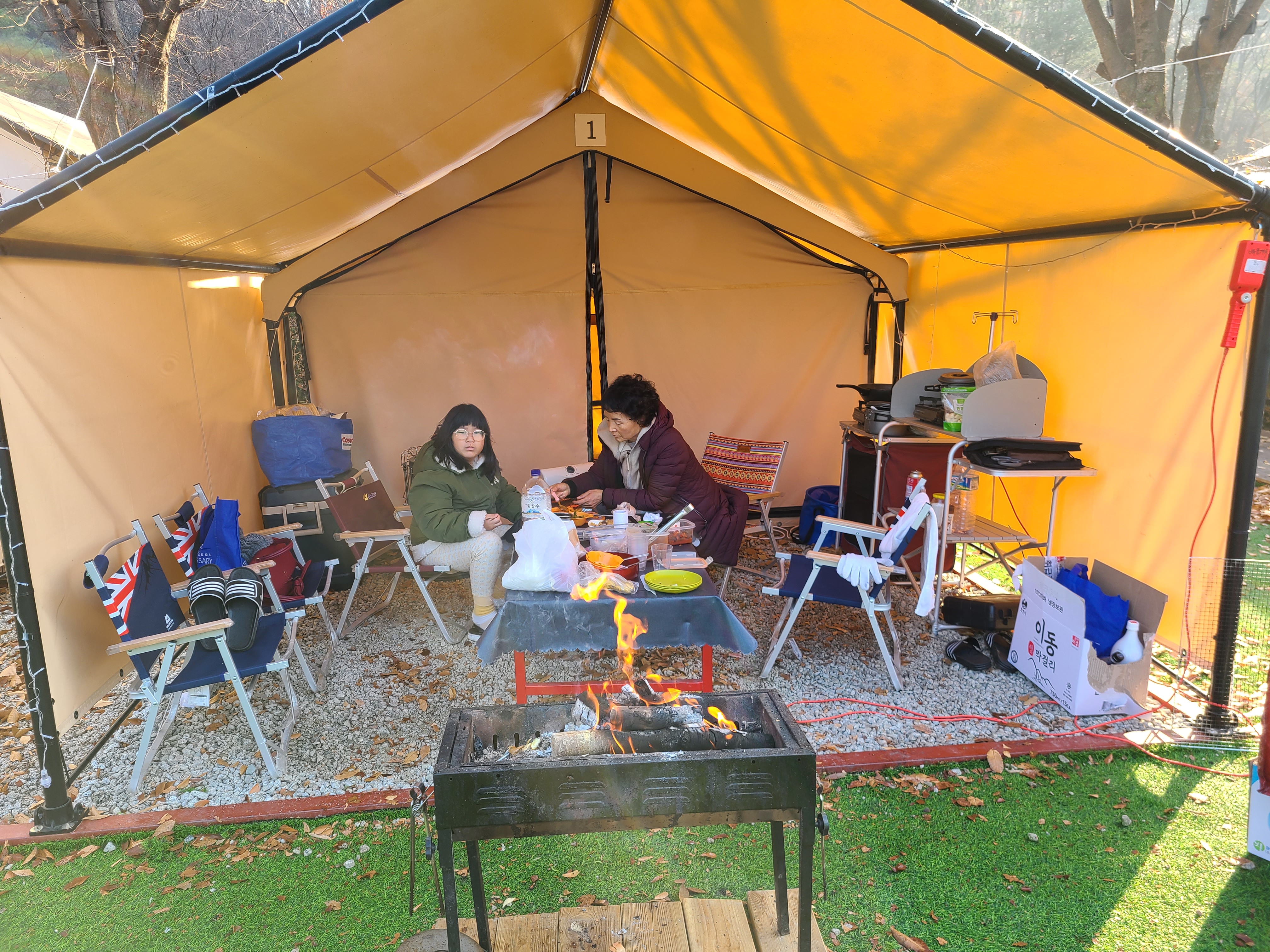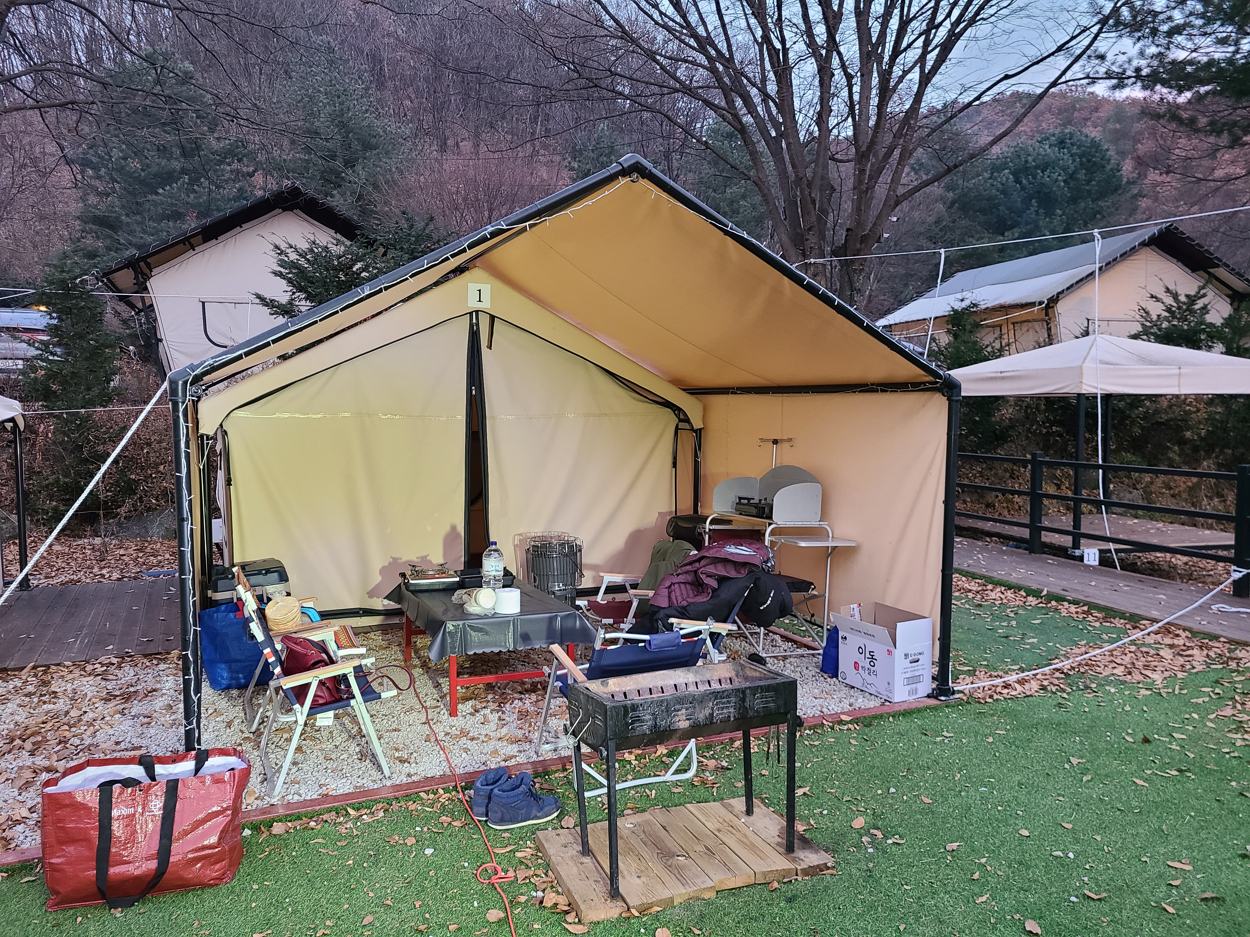 손녀가 캠핑을 가기를 원하니 날씨가 춥고 밤에 잠을 자기가 곤란할 것 같아 글램핑으로