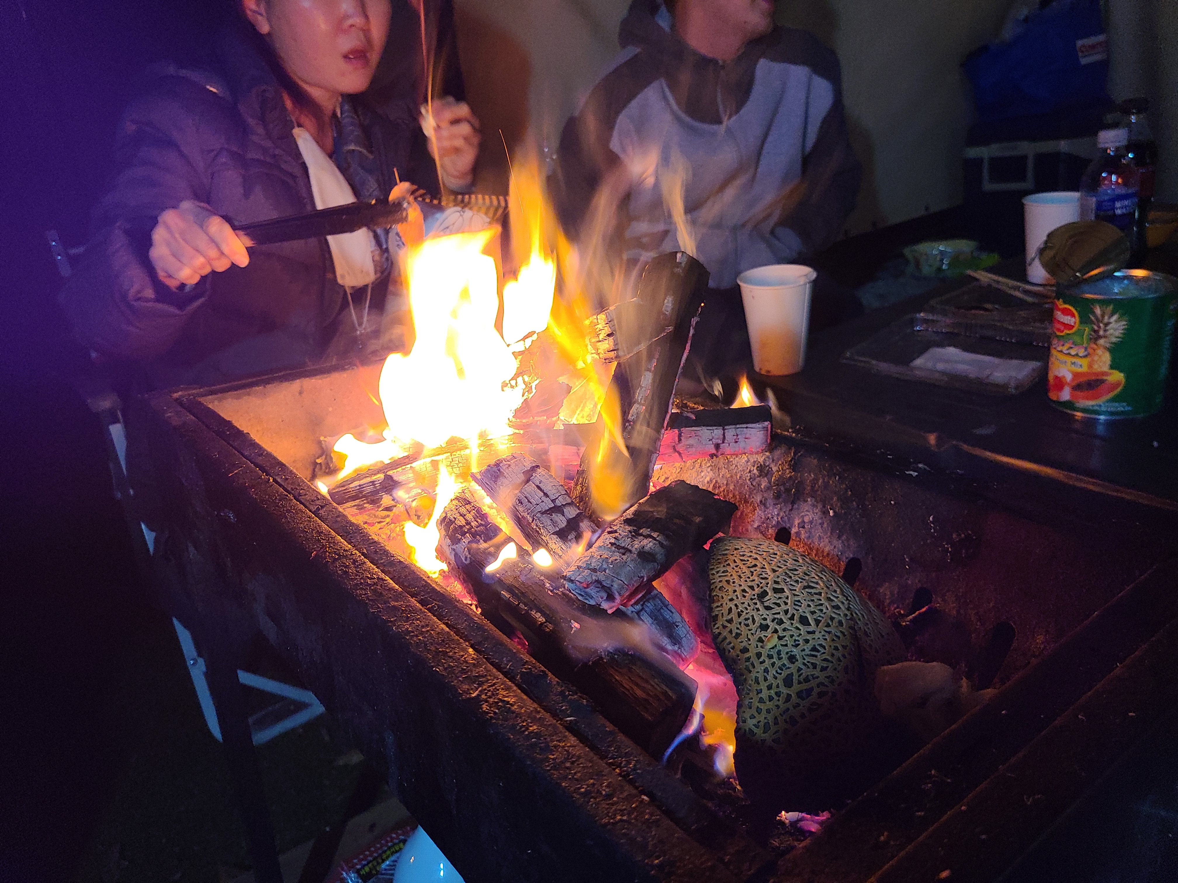 텐트등을 설치하는 수고와 시간이 절약되니 장작불을 피우고 막걸리를 한잔마신다.