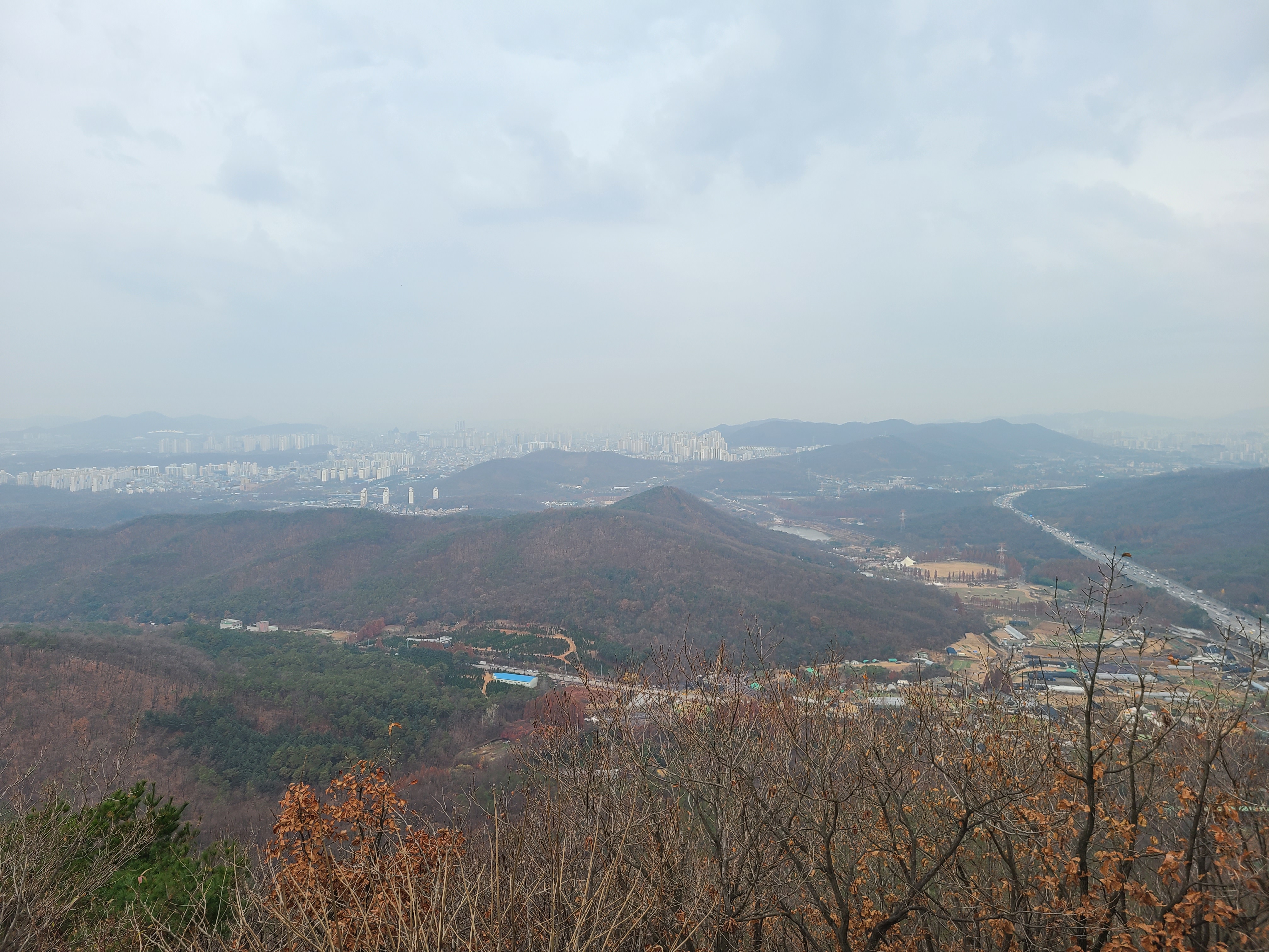 기온이 올라 땀을 흘리고 오른 정상에는 미세먼지로 시계가 흐리다.