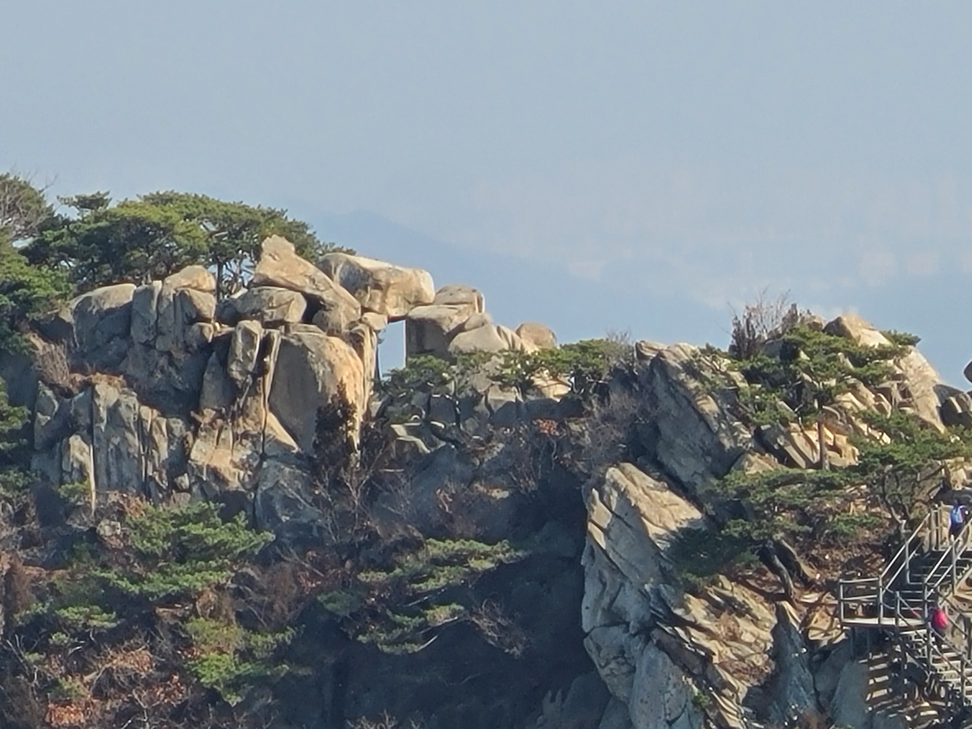 하는수 없이 밀감3~4개와 햄으로 속을 채우고는 사과반쪽을 베어먹고는 다시 연주대로 향한다.