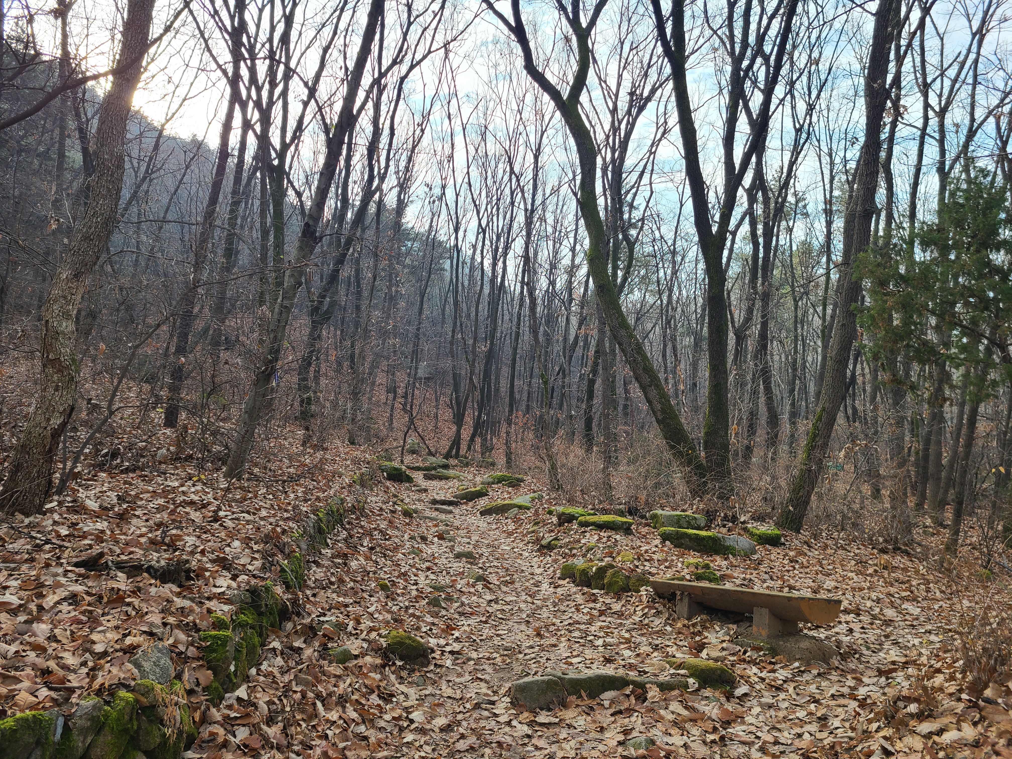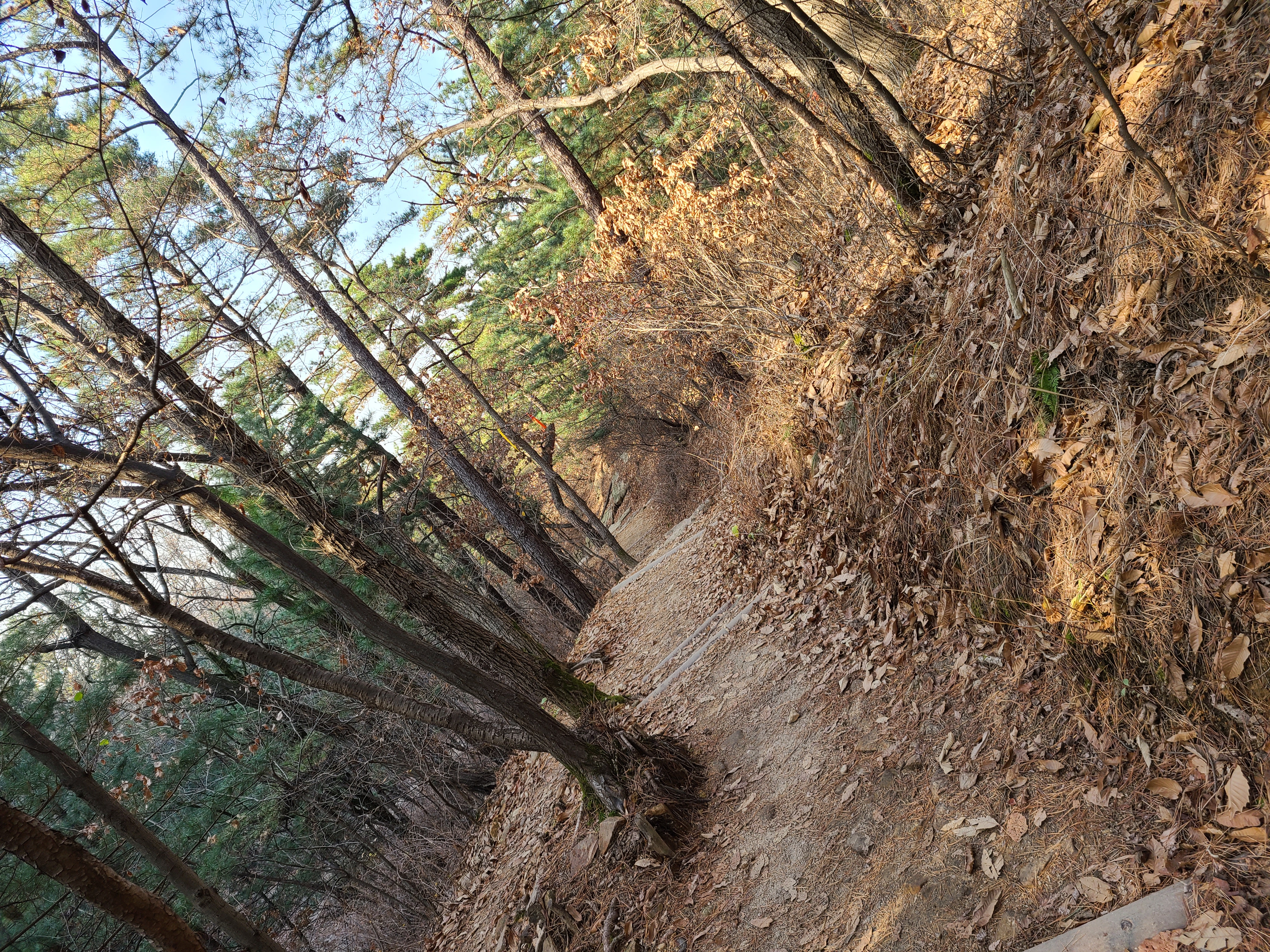 낙엽쌓인 계곡이 위험하다. 평지인것 같아 발을 밟으면 돌위에 낙엽이 있어 푹들어가거나 비틀거린다.
