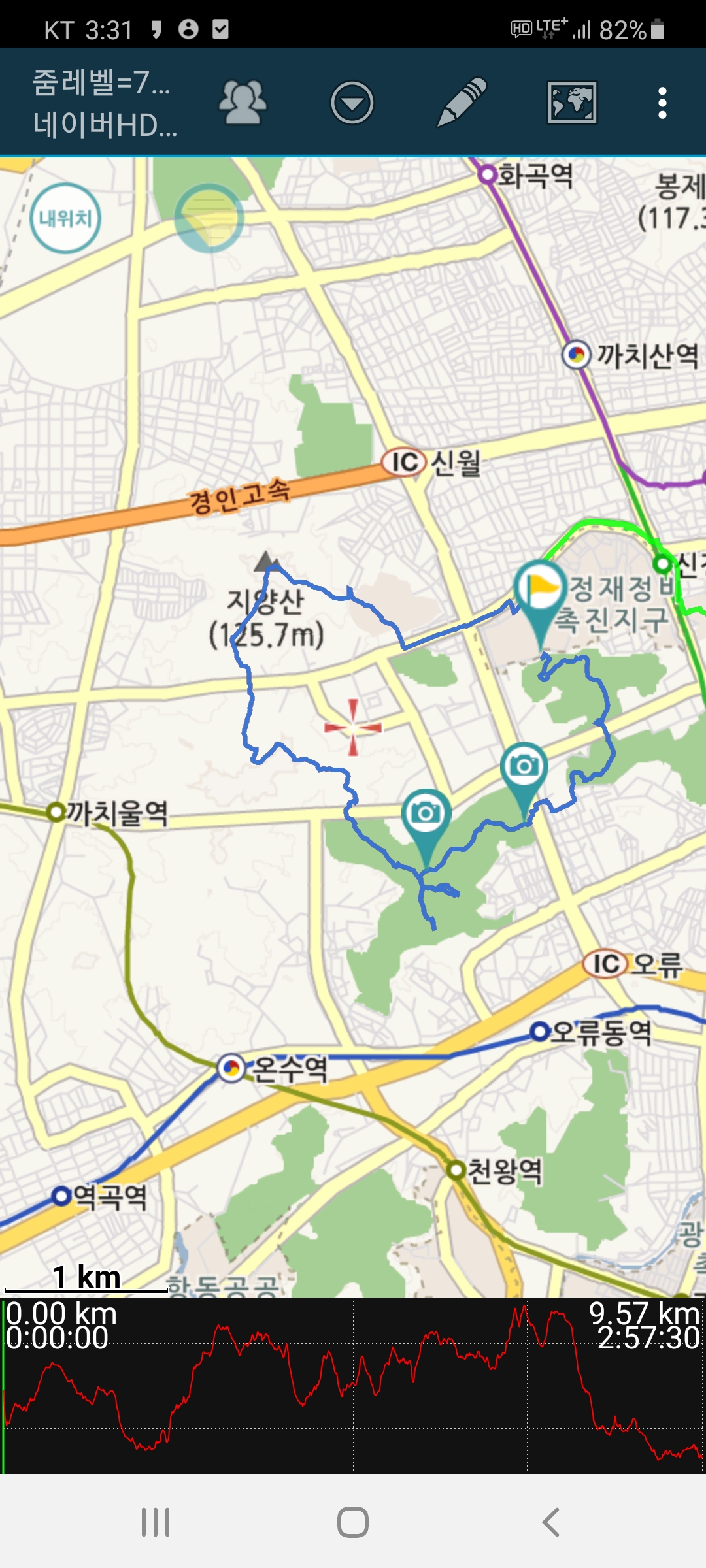 집에서 이렇게 쉽게 산을 접근할 수 있음에 감사하며 세시간의 걷기를 마치고