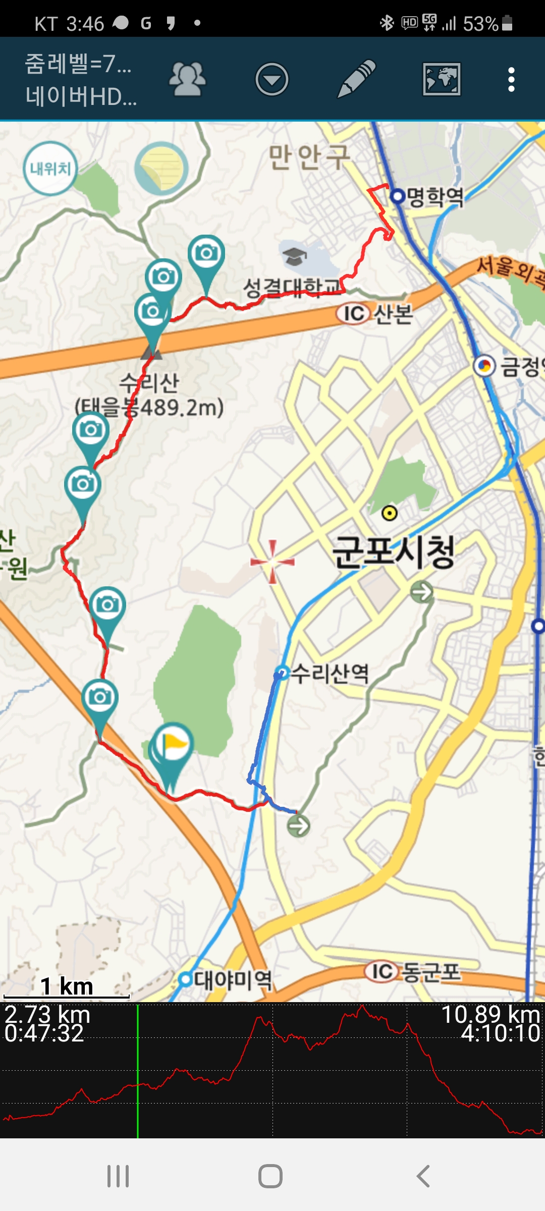 3.수리산역-도창초-가야3차@-감투봉-무성봉-능내터널-수리산-태을봉-관모봉-상록약수-명학역,10.89km