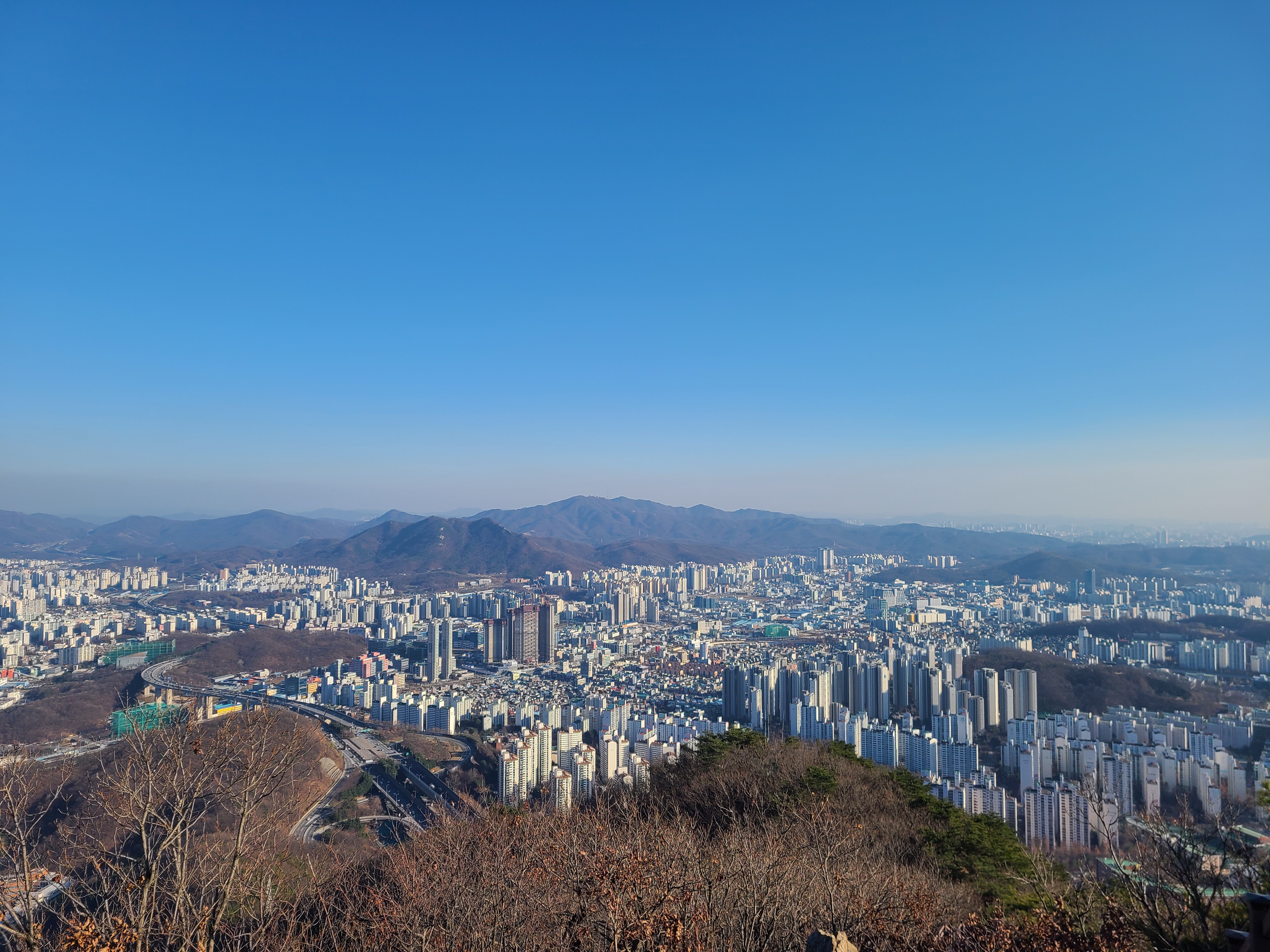 멀리 관악산과 광교산등을 조망하고는 군포역방향이라고 산객이 안내해준 코스로 내리다보니 명학역이다.