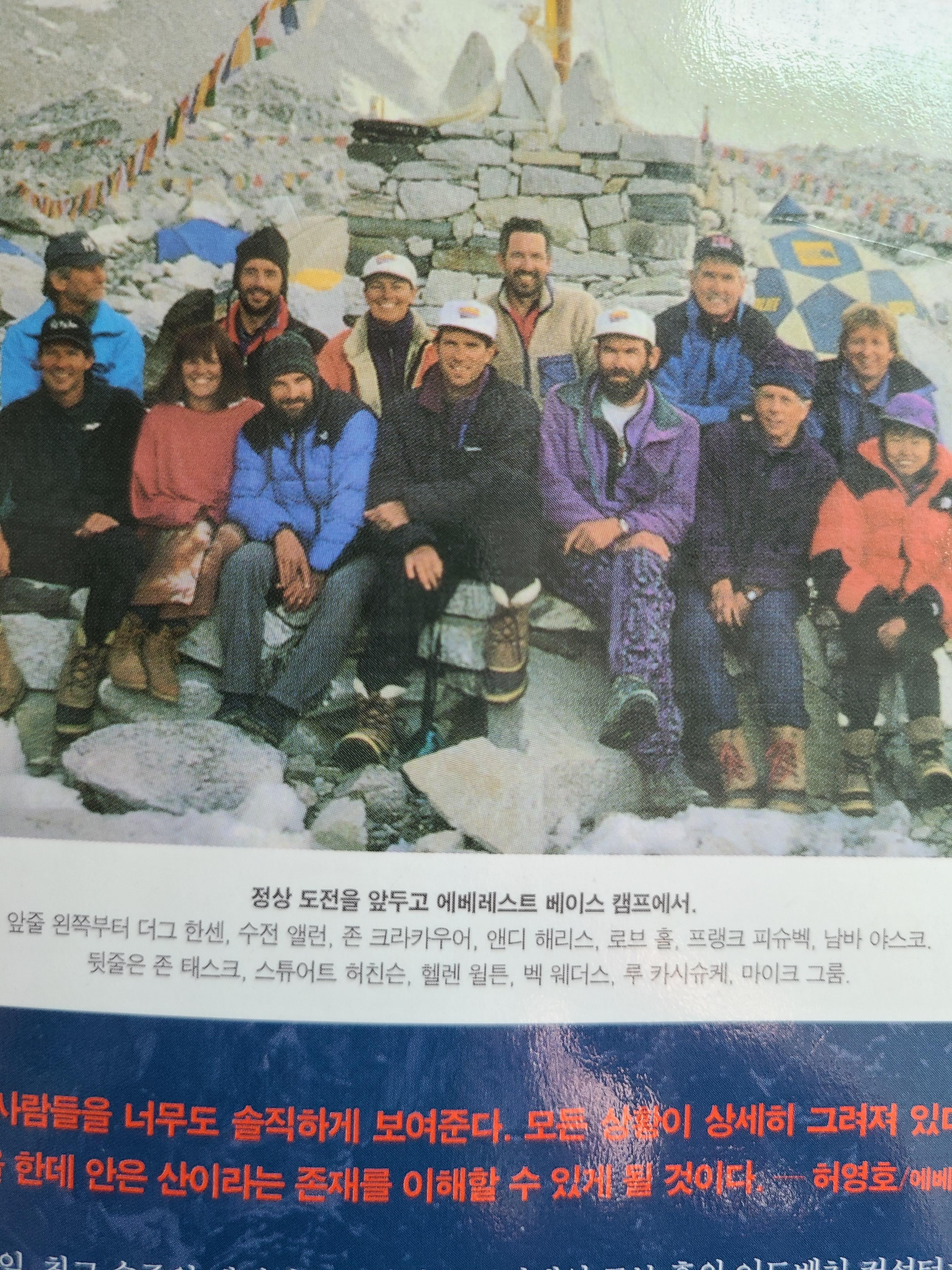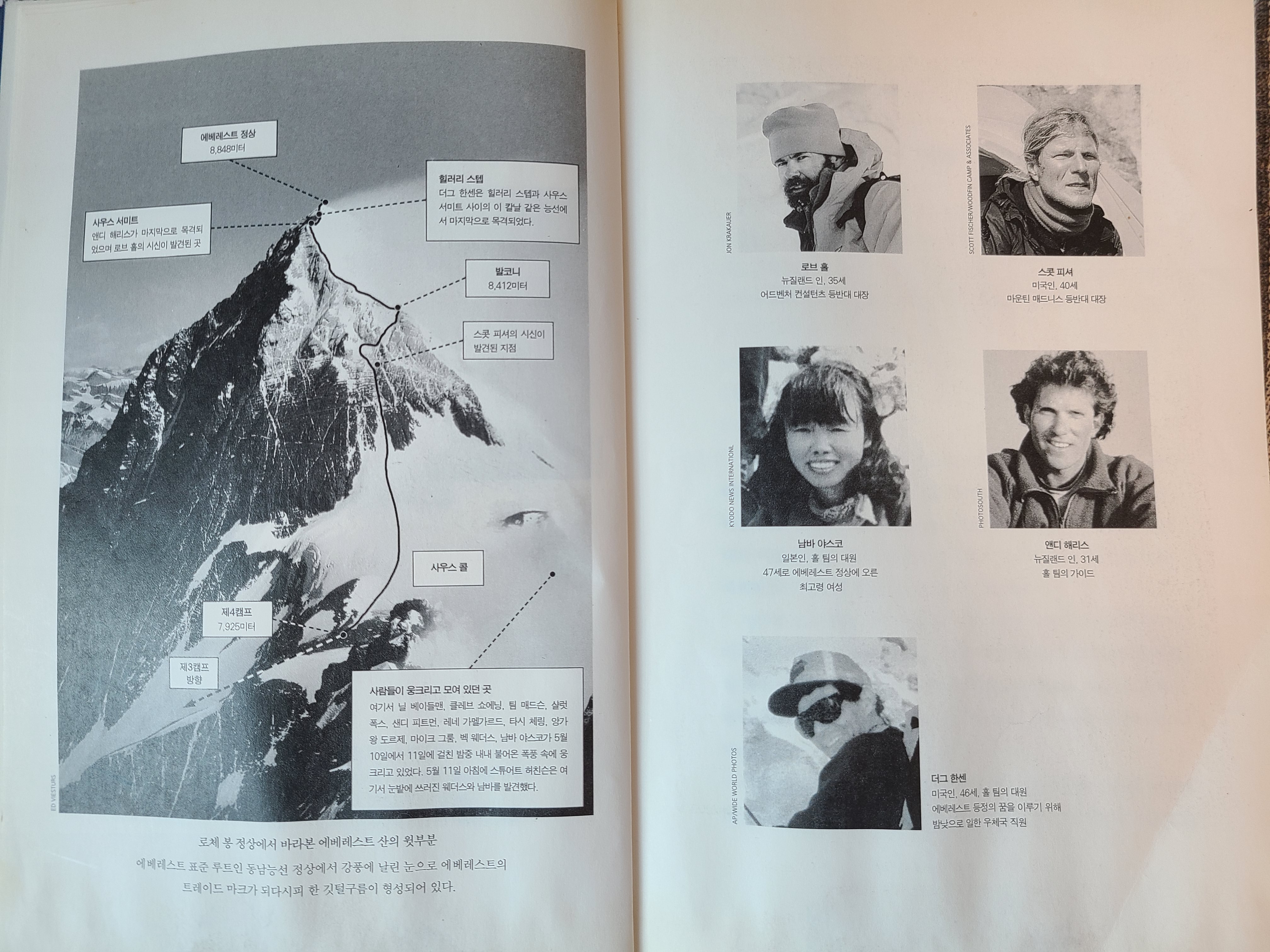 그날 그 산을 함께 올랐던 존 크라카우어가 춥고 희박한 공기 속에서 벌엉진 열정과 비탄의 생과 사를 넘나드는 현장을