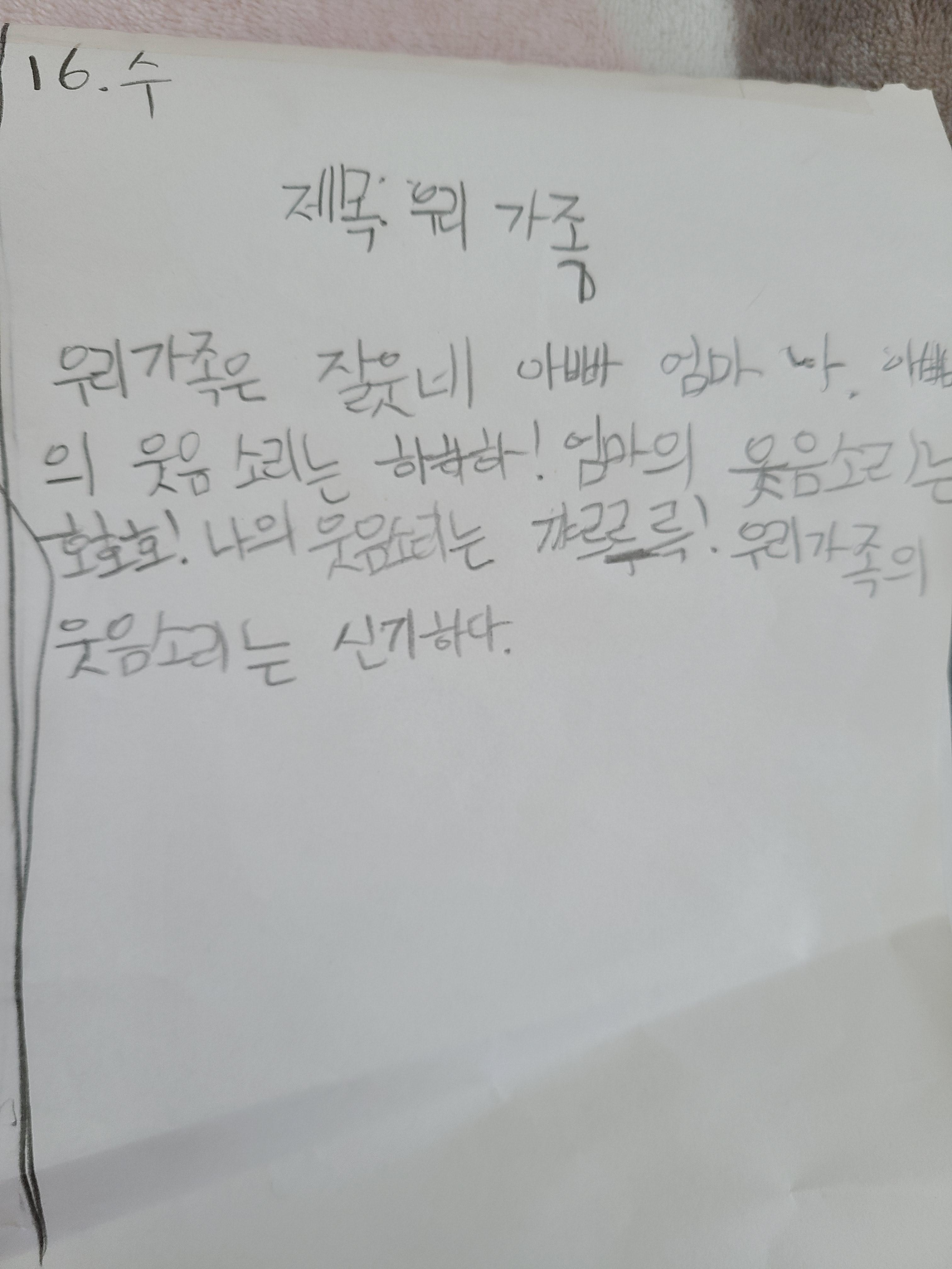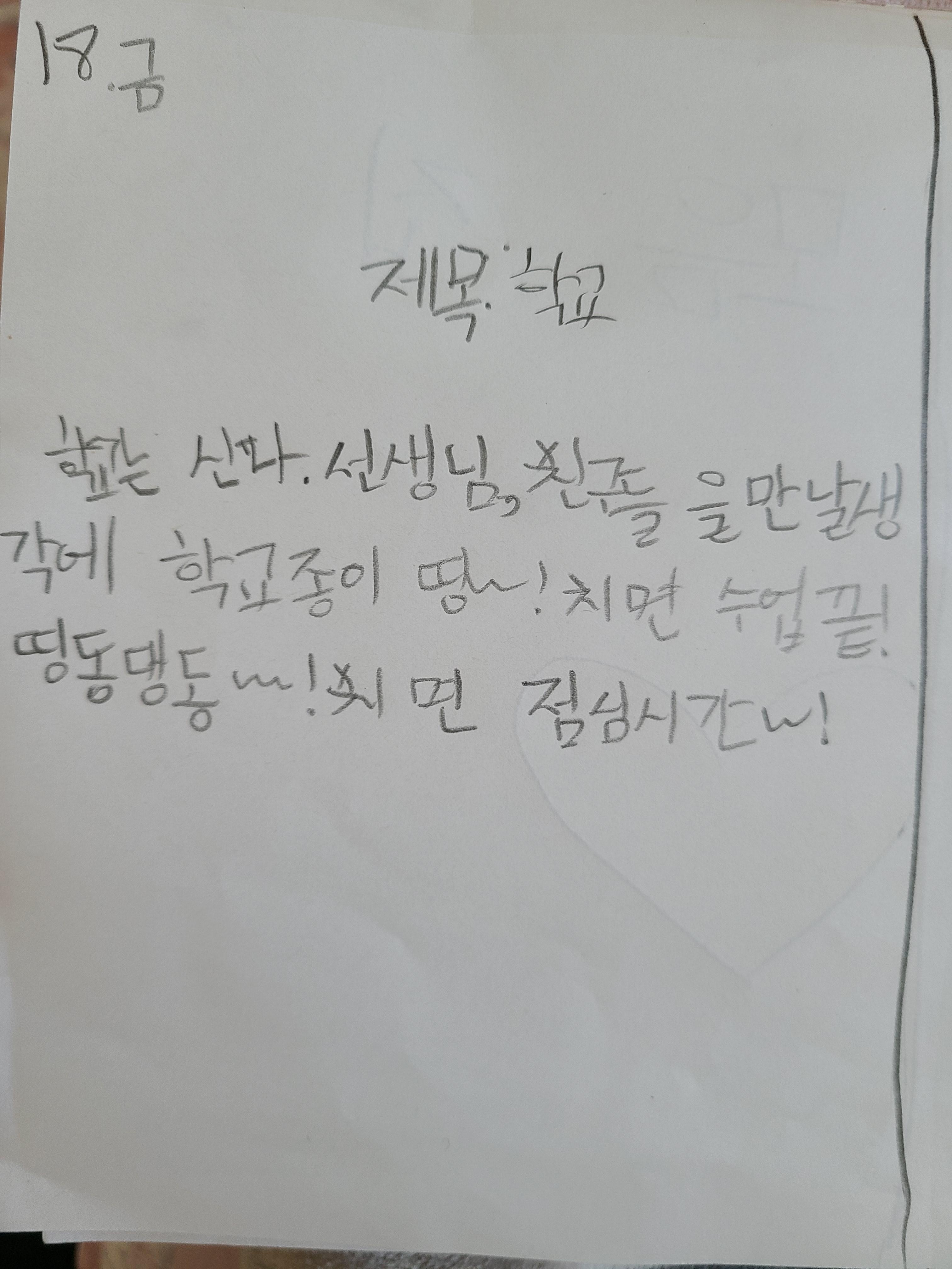 초등학교 1학년인 외손녀는 글도 잘 쓴다-어린나이임에도 선생님 흉내를 곧잘 내어 또래의 아이들을 가르치는 정도이다.