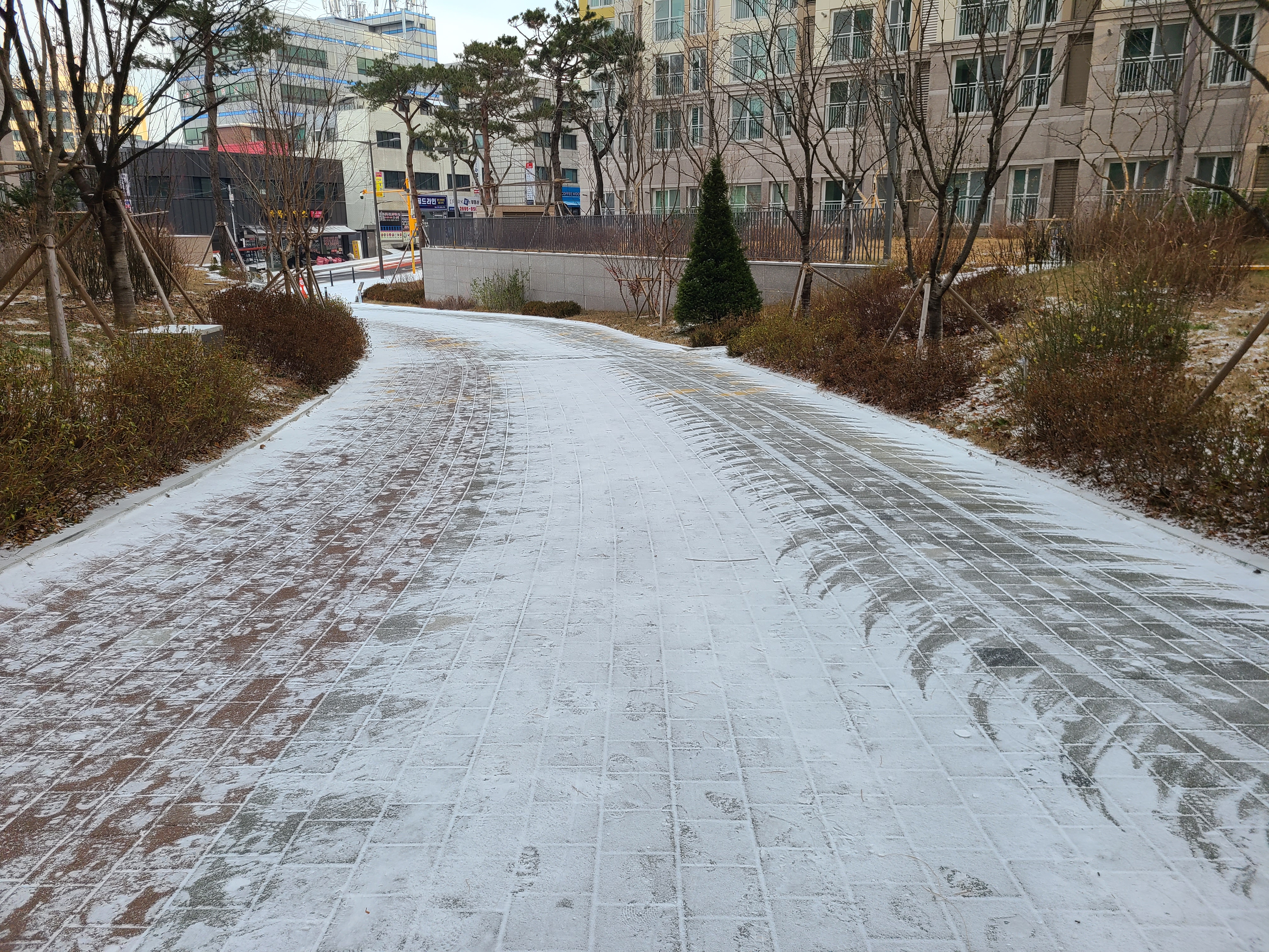 간밤인지 아침인지 눈이 살짝 내려앉은 아침이다.