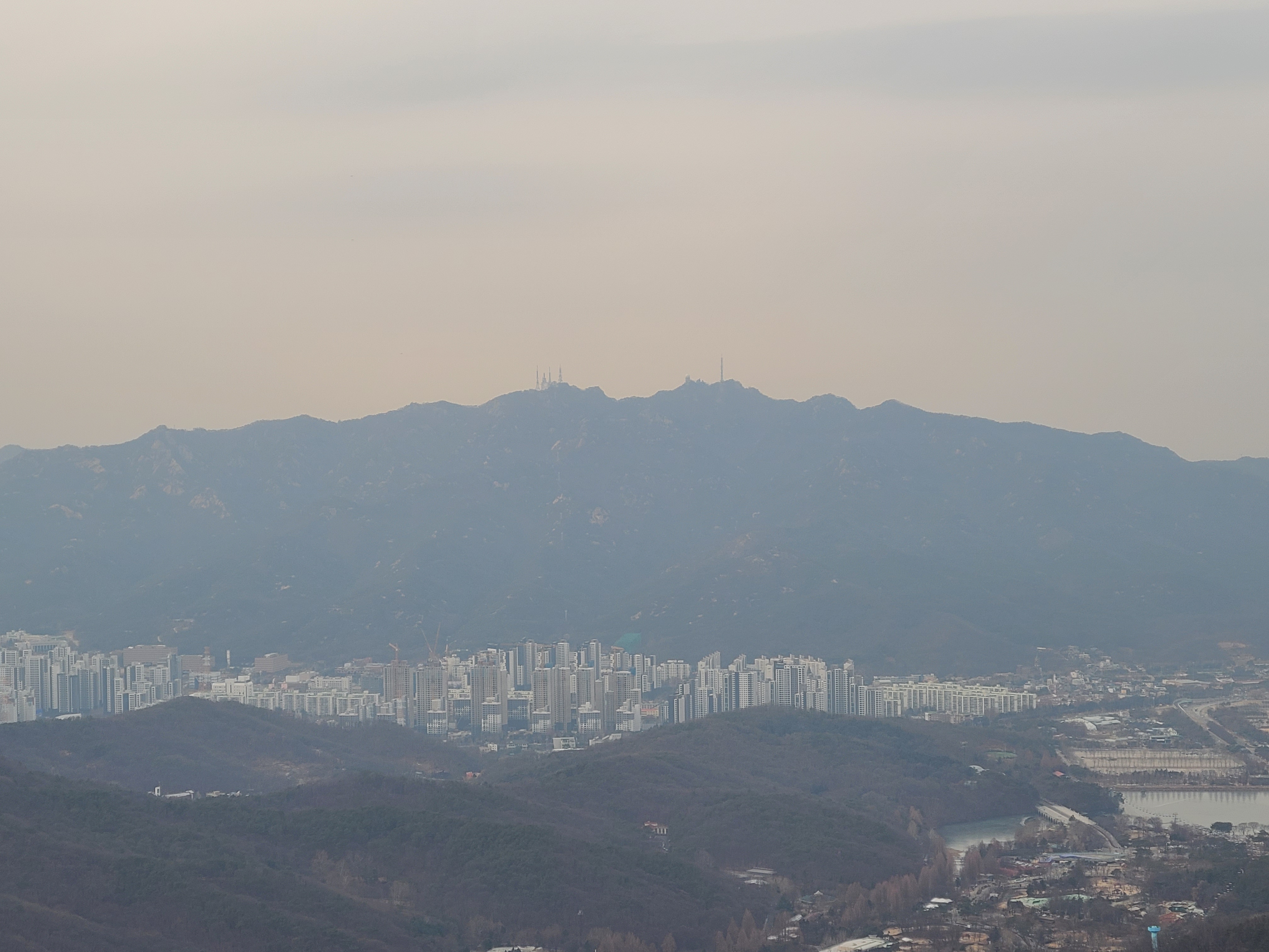 이방향에서는 관악산이 정면으로 바라보이고 과천일대와 대공원의 모습도 눈아래다.