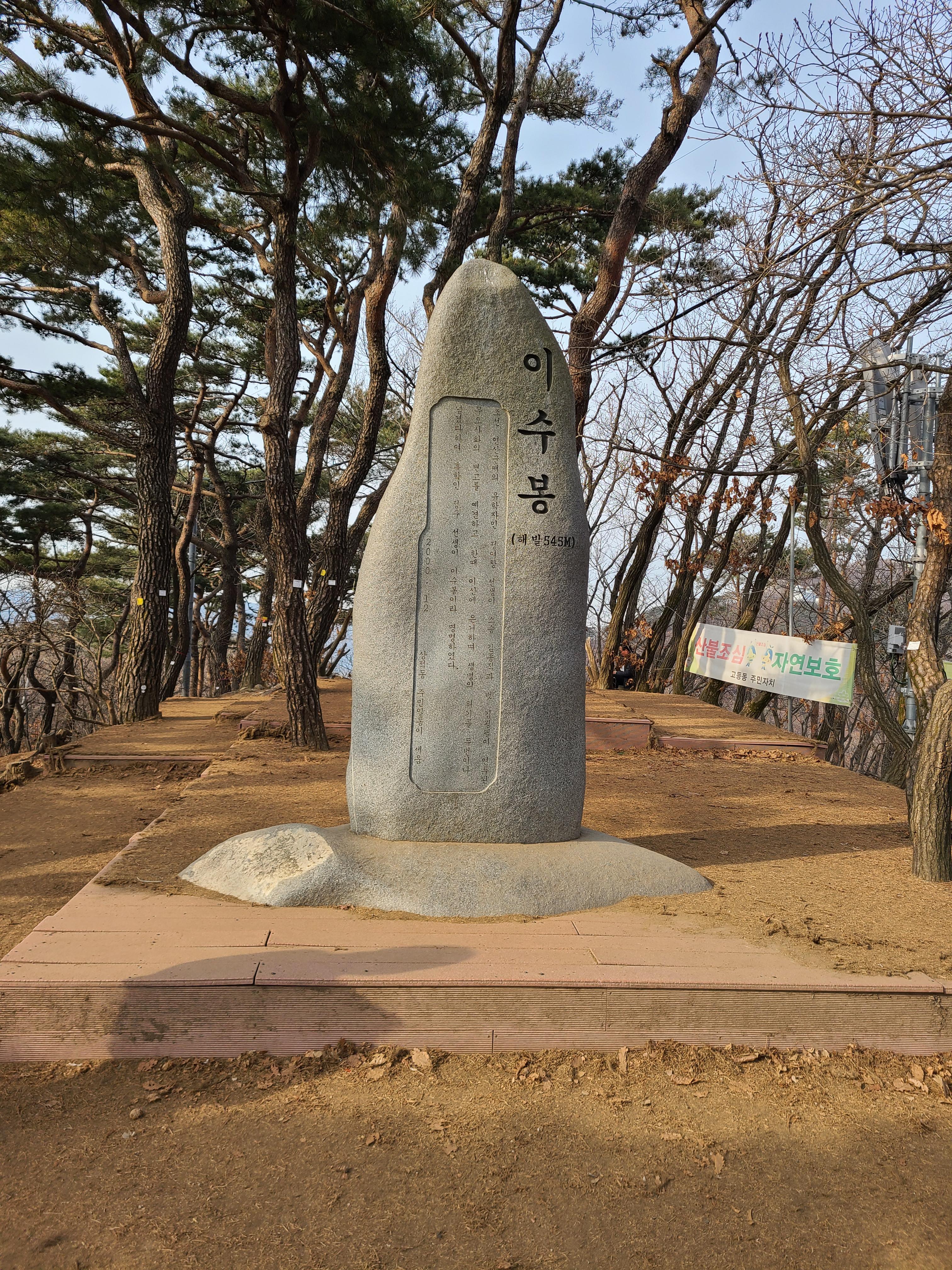 조금 더 진행하여 이수봉. 월요일이고 날씨가 흐려선지 산객이 거의 없다.