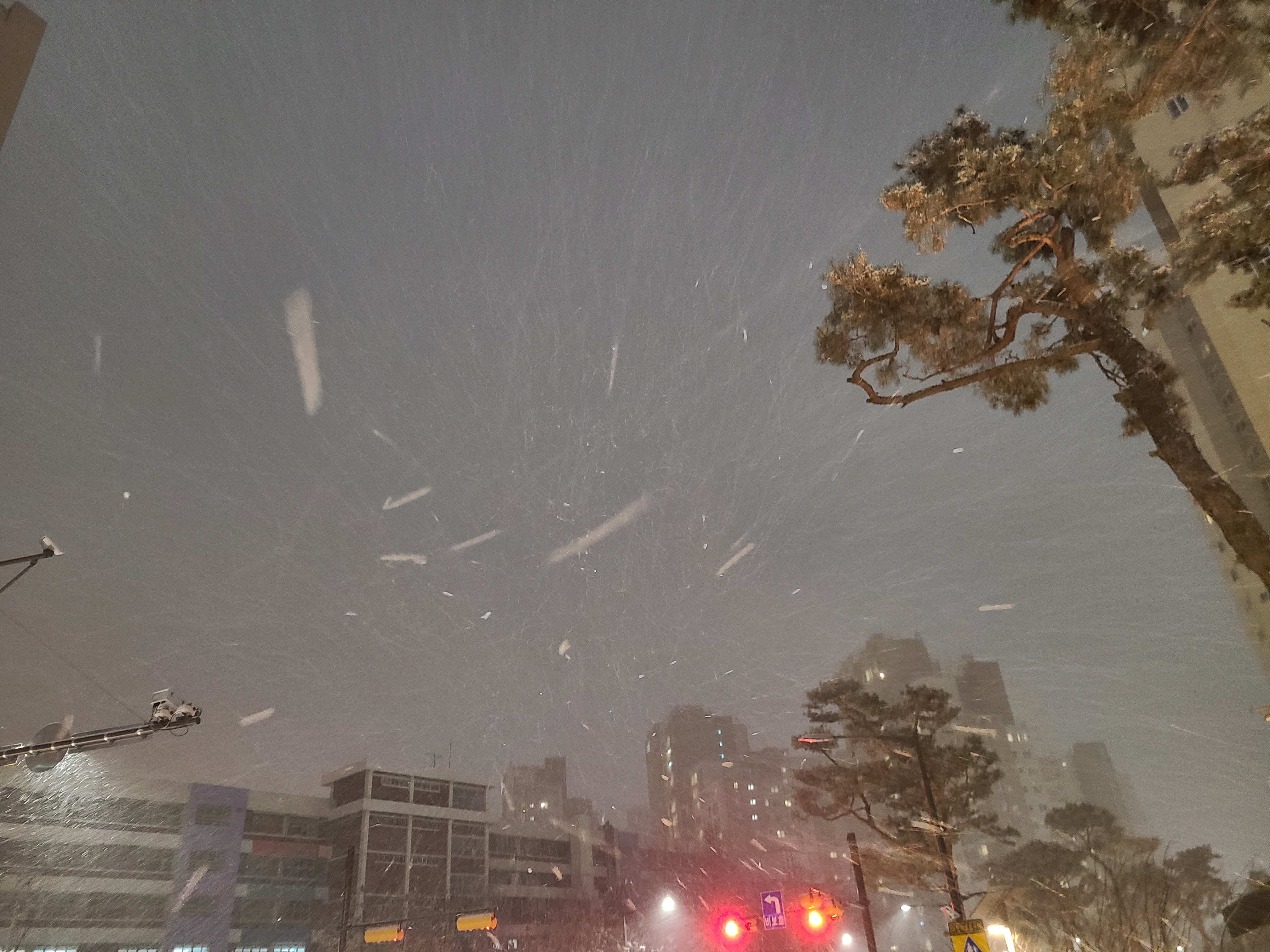 올겨울들어 가장 춥다는 한파가 다가온다는 소식과 더불어 저녁무렵부터 눈이 쏟아진다.