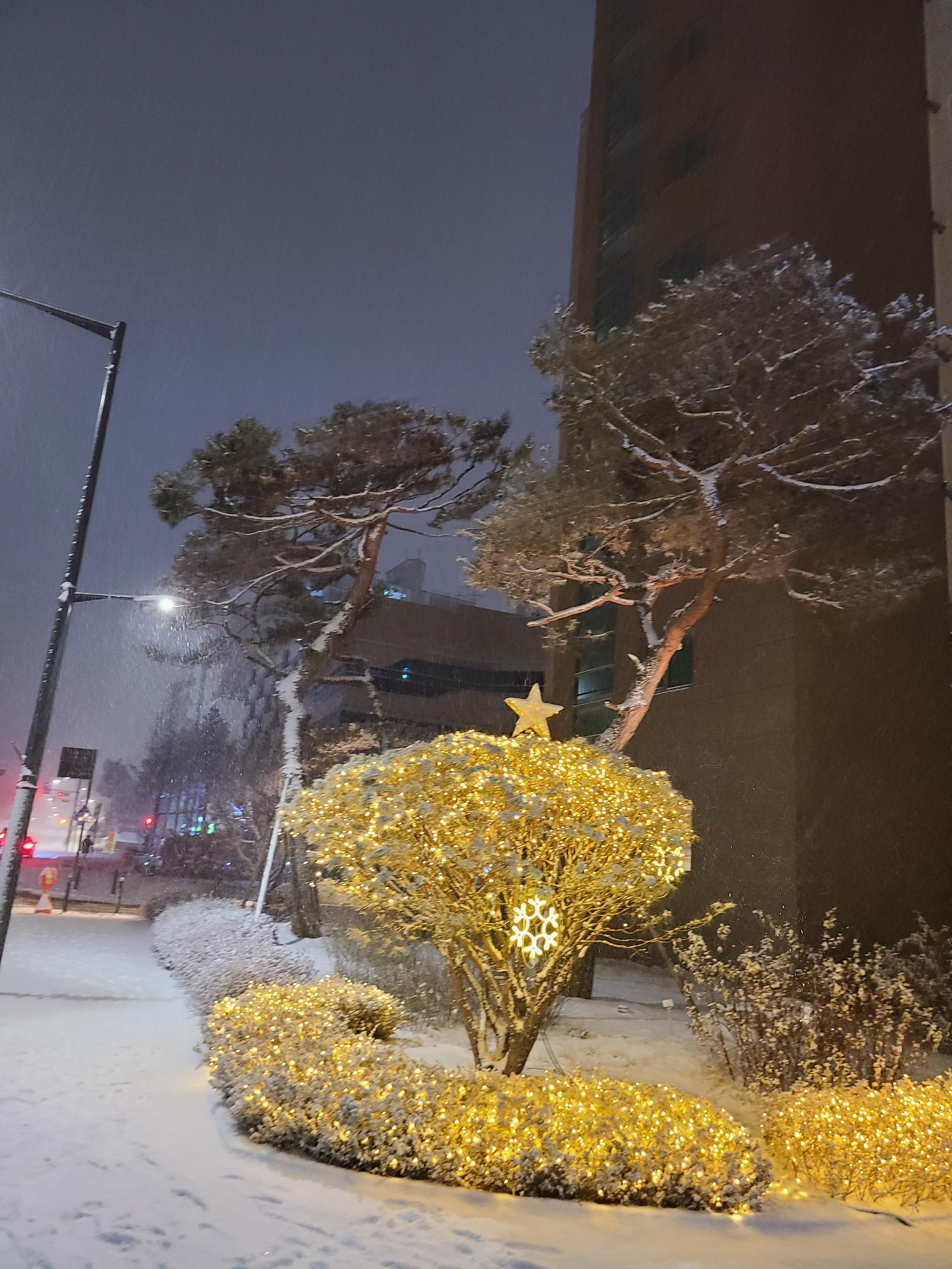 한잔술후에 정리를 하고는 눈내리는 거리를 걸어본다.