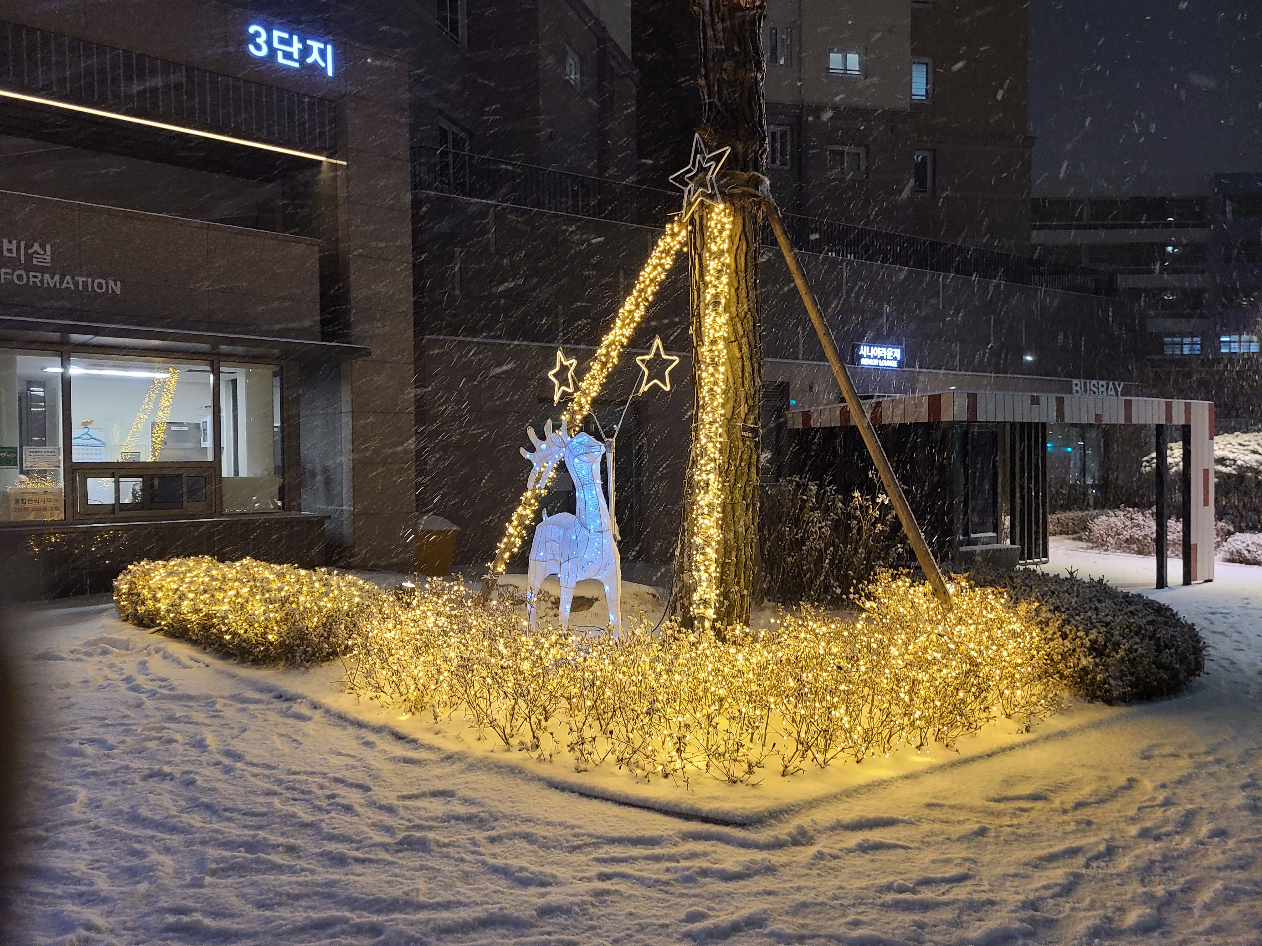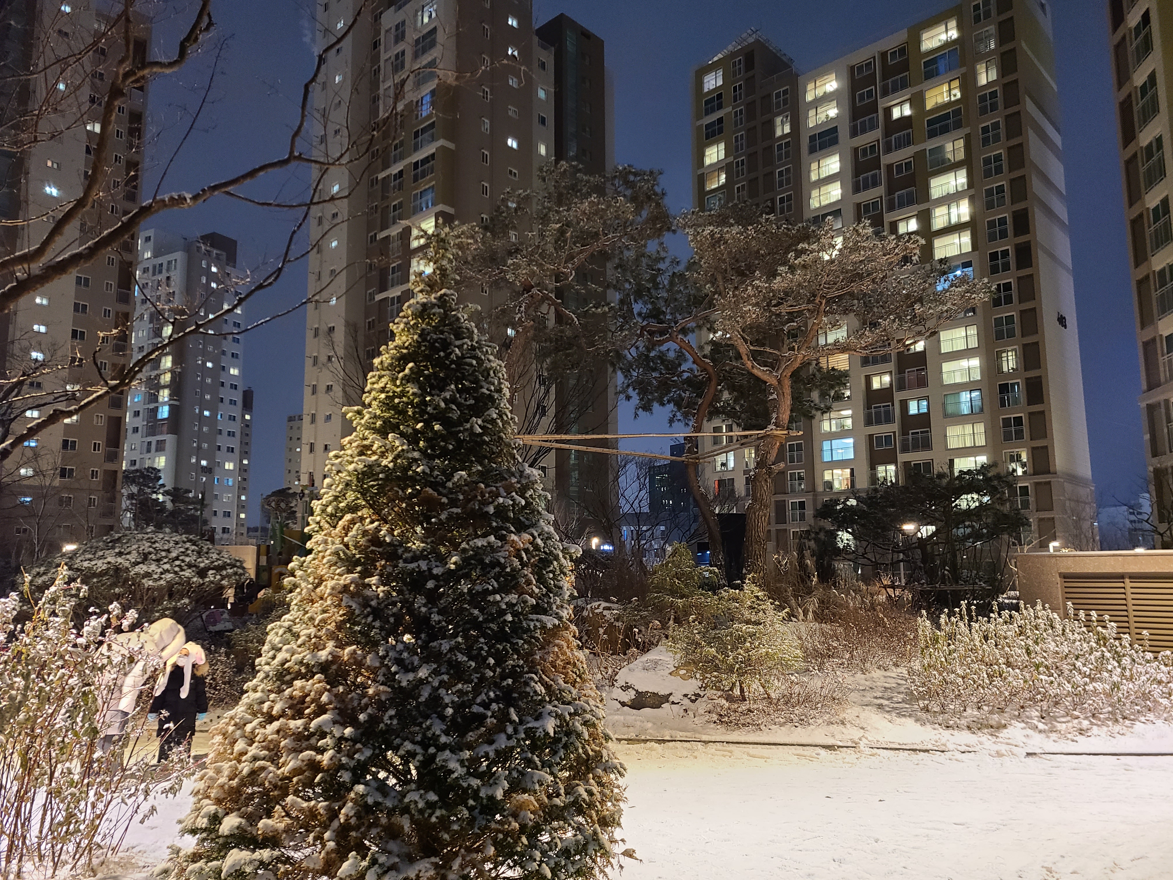 아늑한 어릴적 눈내릴때 기억을 되살리며 집을 나서니 아파트주변은 온통 아이들의 놀이터로 변신하였다.