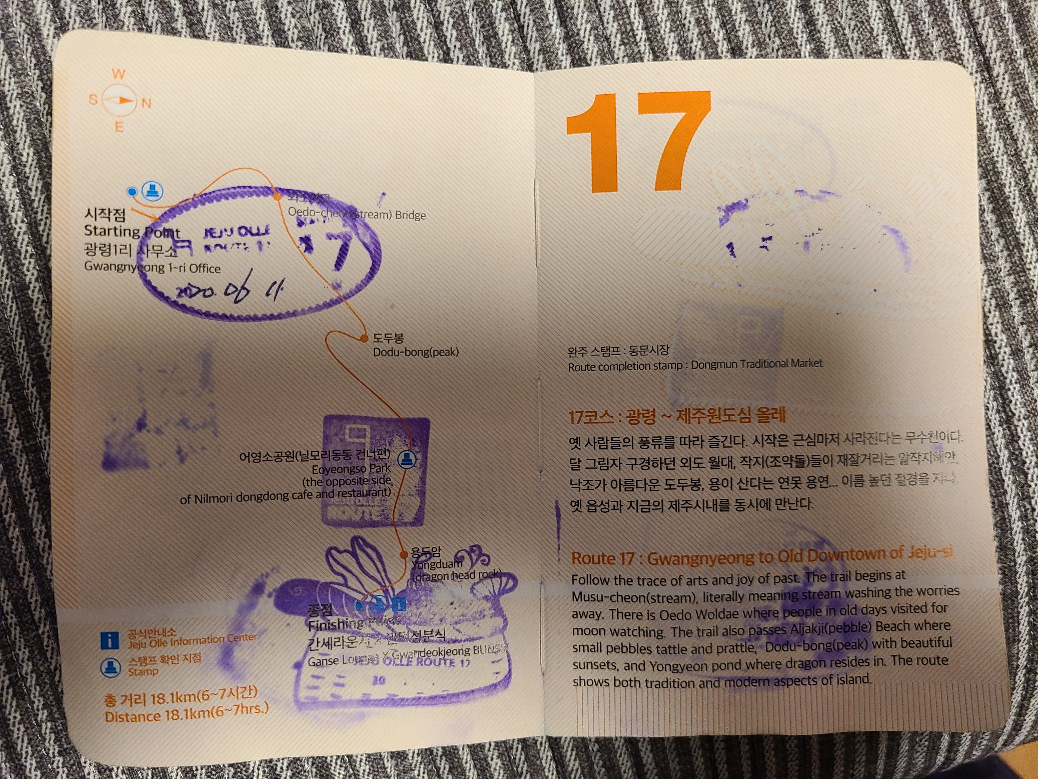 2009년 한코스를 걸은후 공백이 있다가 2019년 한달살기도중 4코스를 걷고,2020년 보름동안 머물면서 14코스를 걸었다.
