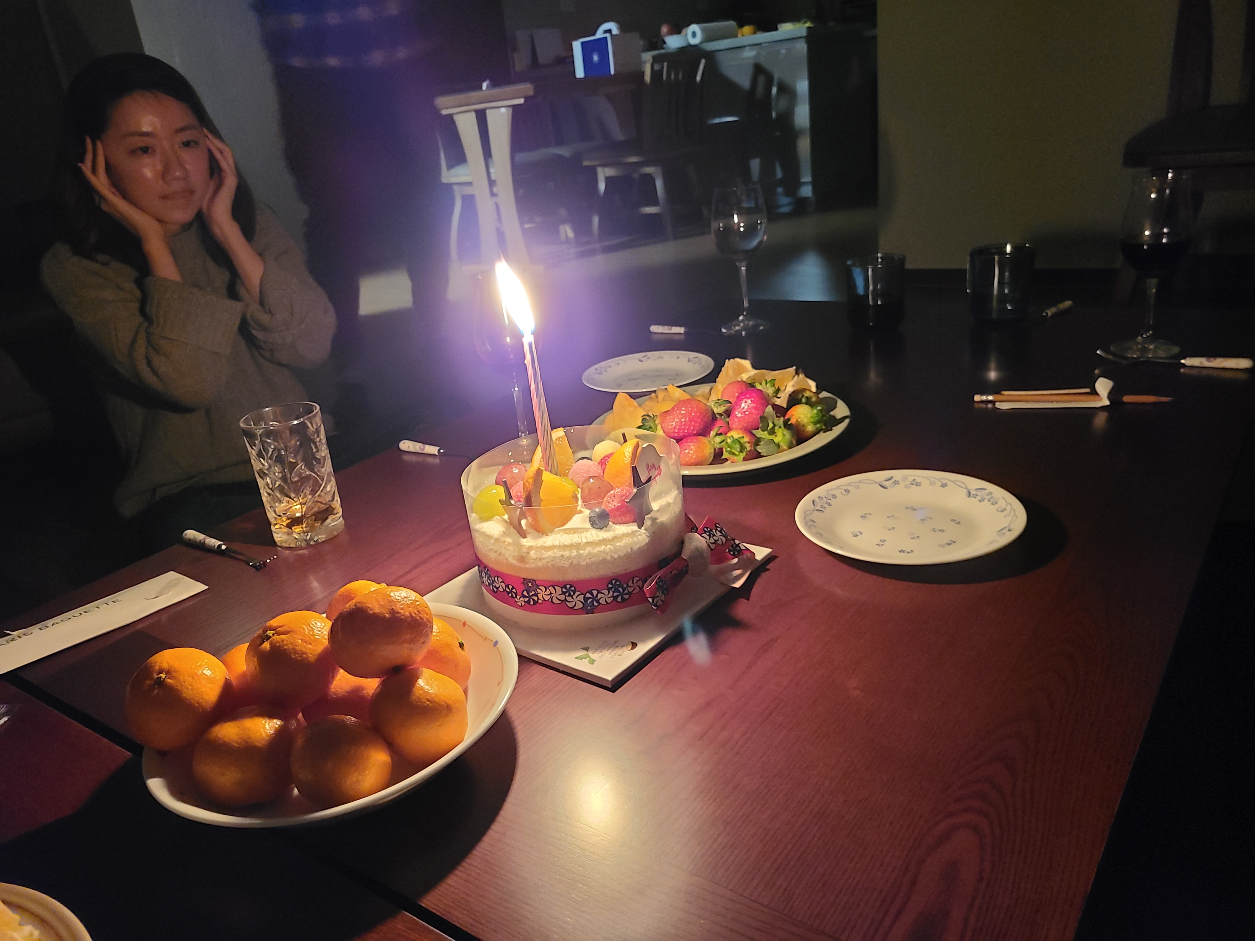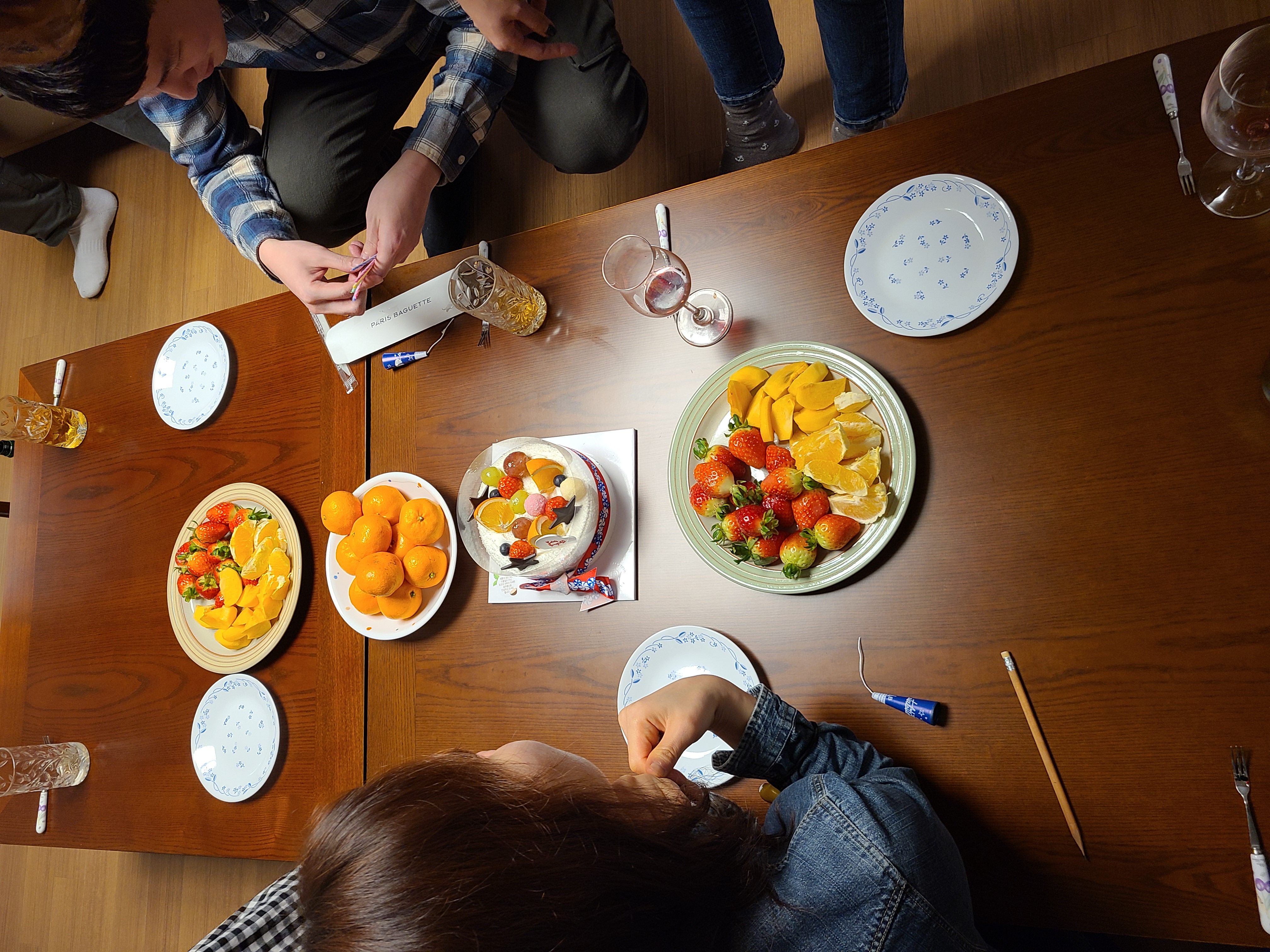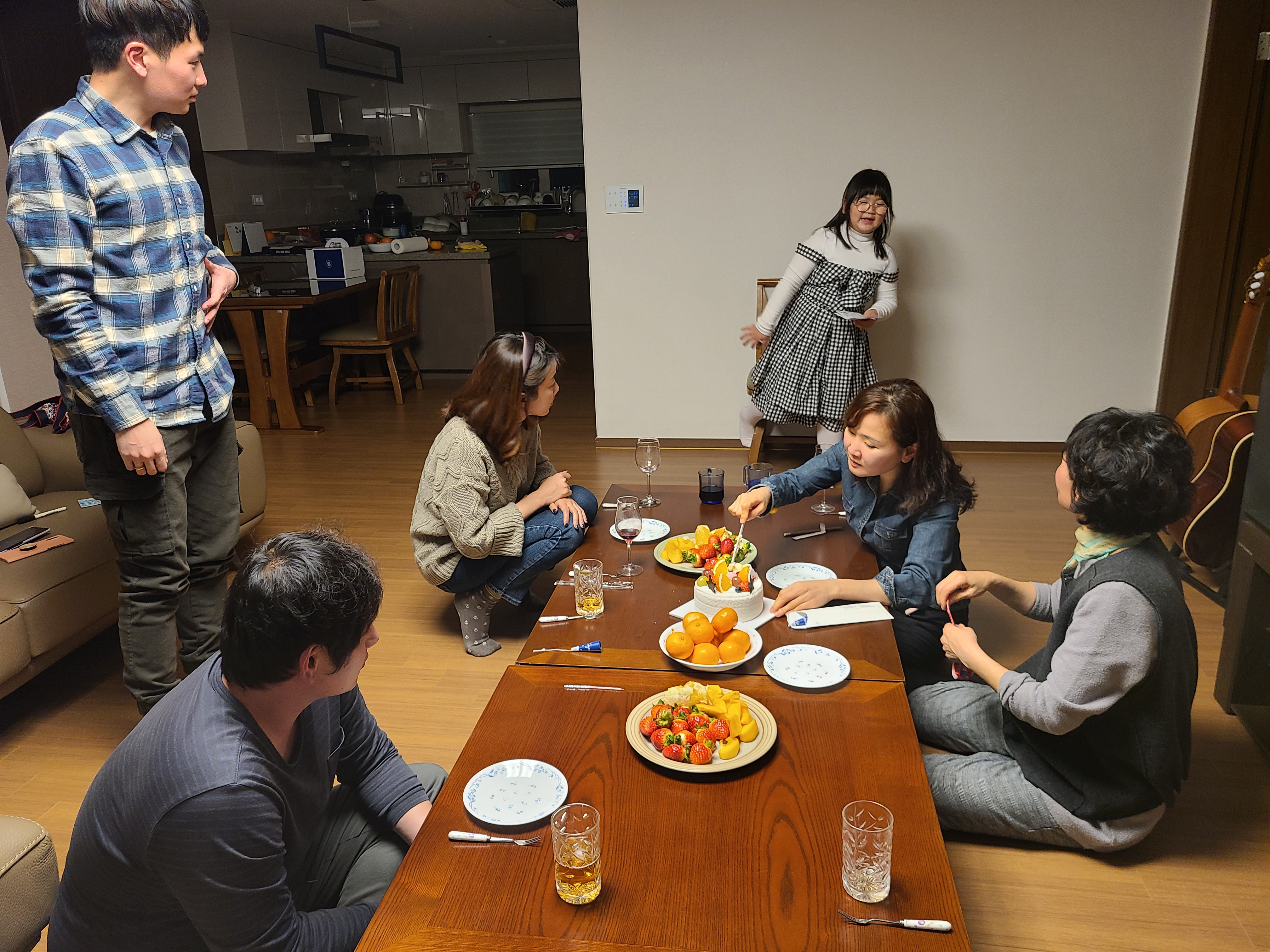 어느정도 먹고 마시고는 상을 정리하고 후식과 더불어 케익을 커팅하고 다과를 즐긴다.