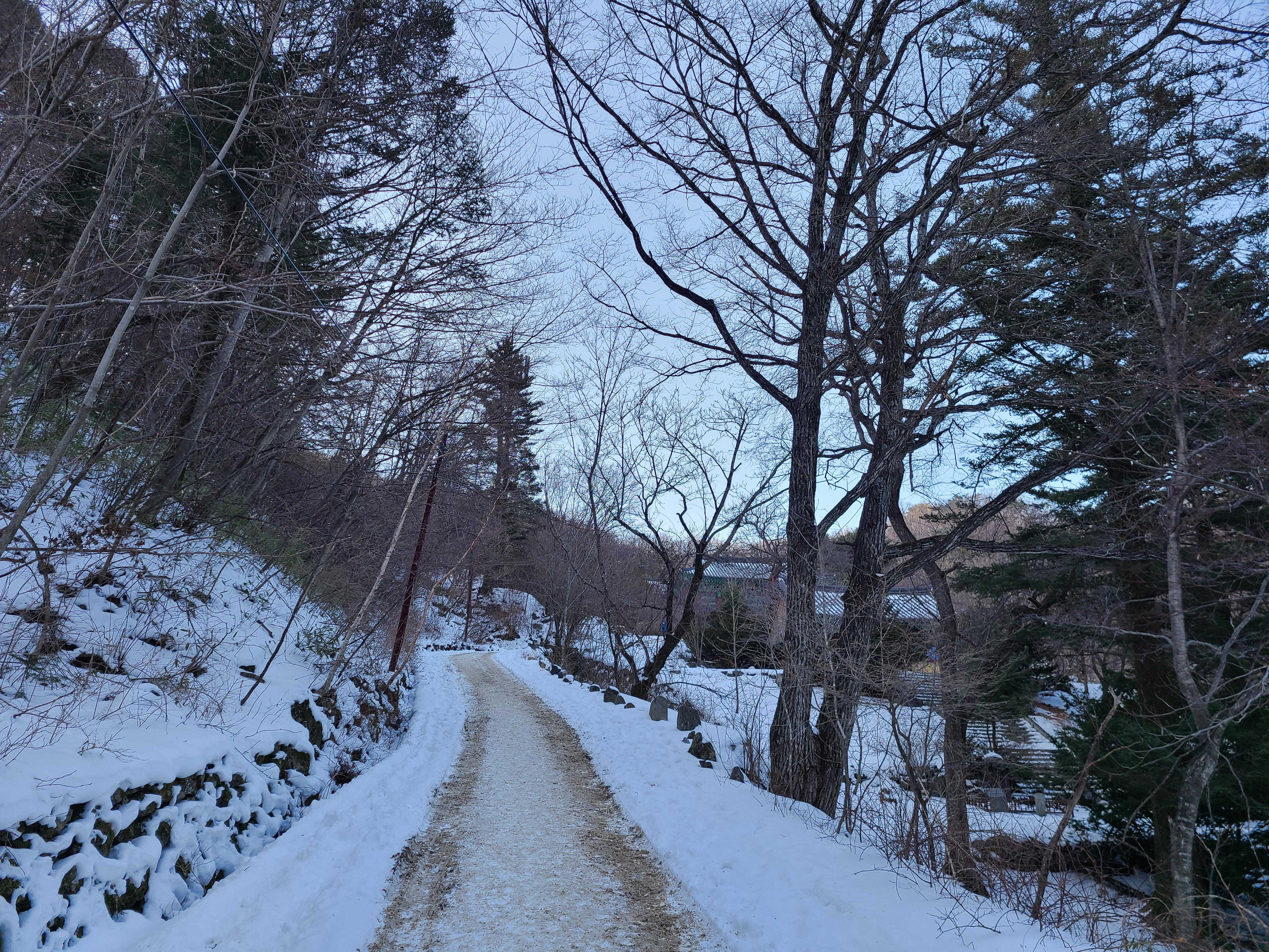 더군다나 눈길이니 설사 통행이 된다해도 승용차로 오르기는 무리이니 눈길을 걷기로한다.