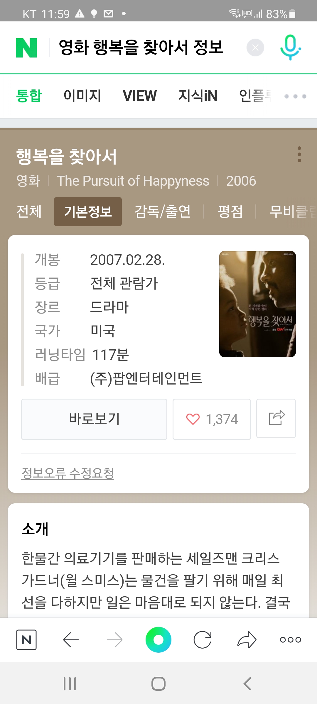 행복을 찾아서라는 부제로  실화를 바탕으로 그린 영화.