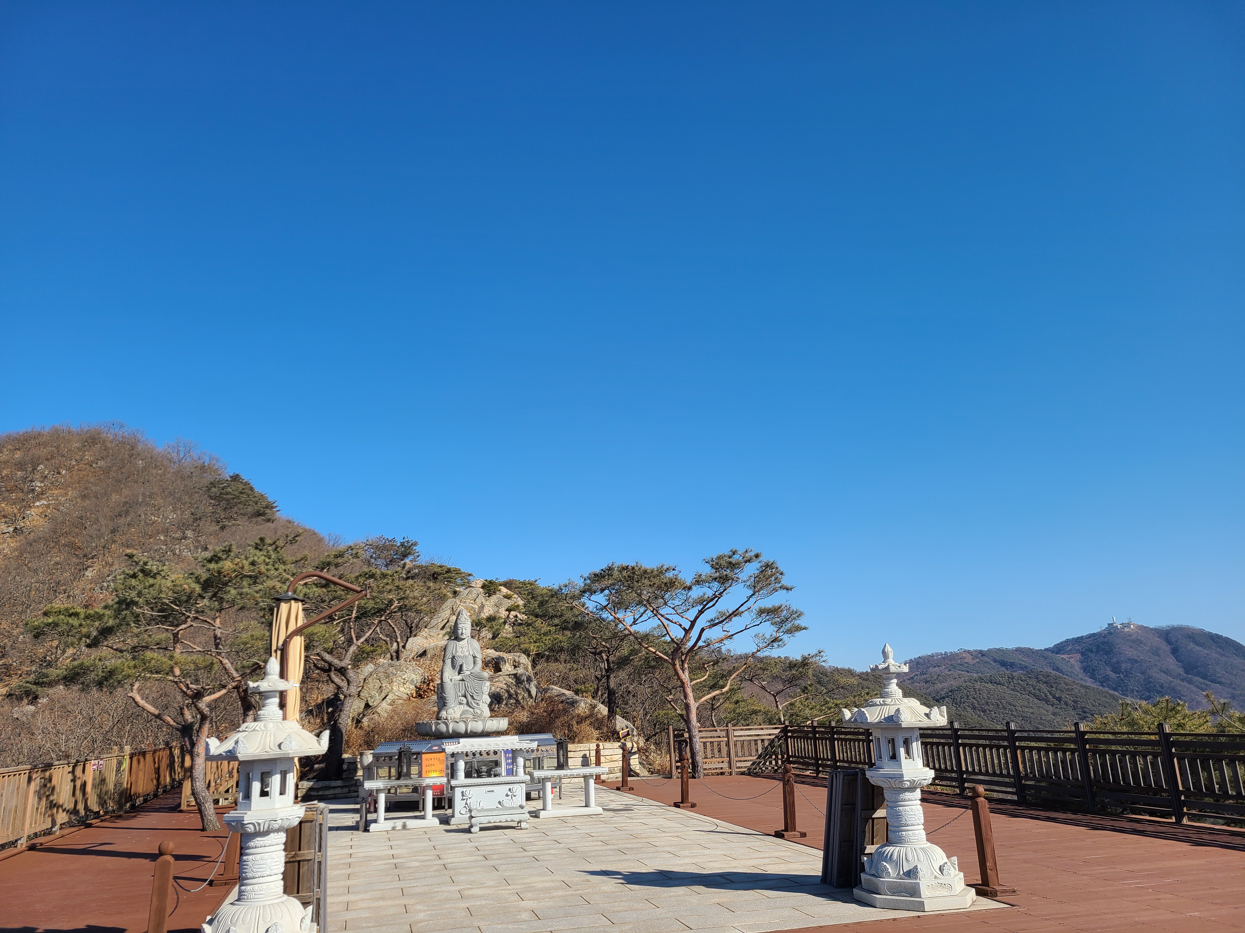 고개를 돌리면 바다가 보이고 청명하고 푸른하늘과 더불어 가슴속이 시원하다.