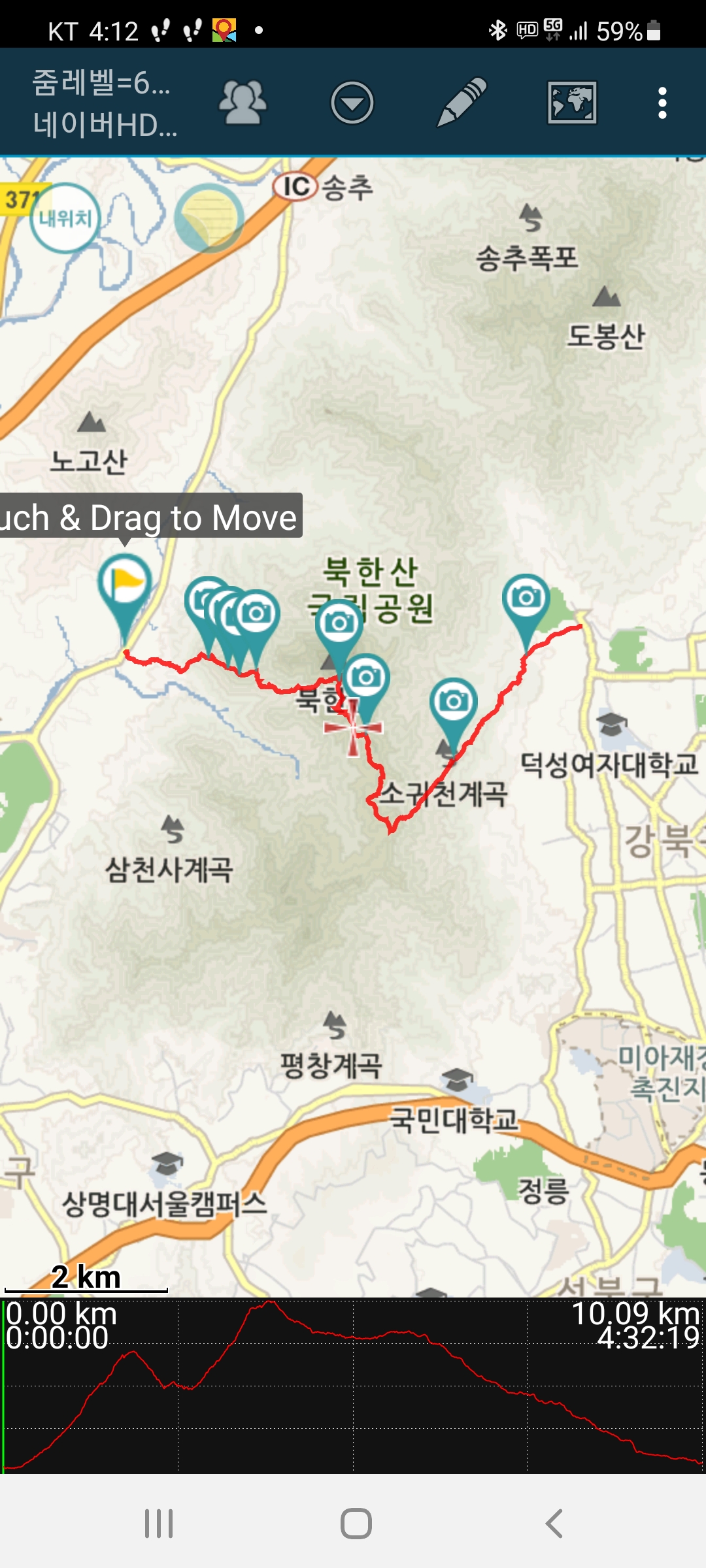 계속 진행하여 대남문을 경유하여 이북오도청으로 내리면 시간이 좀 늦을까 싶어 우이동으로 접어든다.
