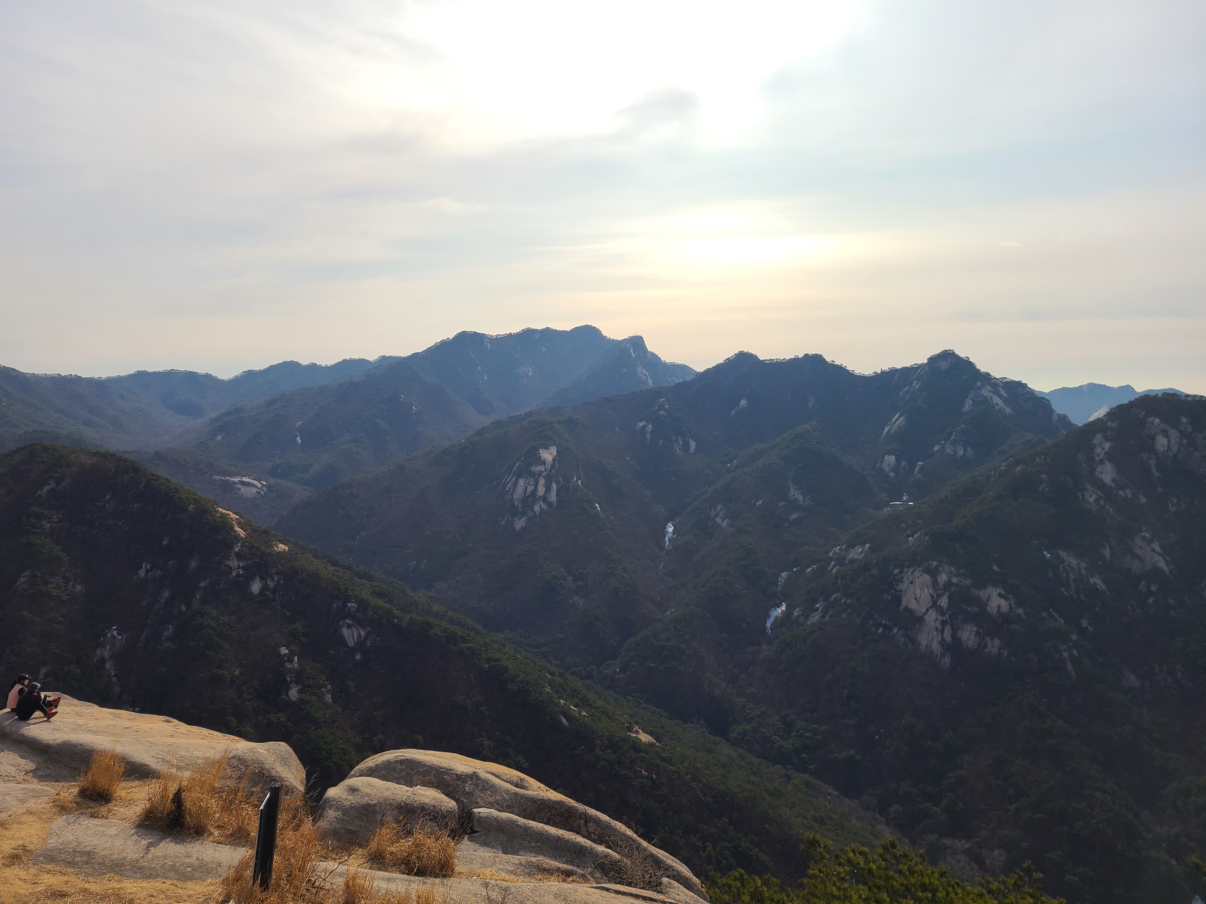 조금더 운행하여 원효봉. 발아래 산성입구방향과 눈앞의 의상능선과 산성능선,그리고 고개를 돌리면