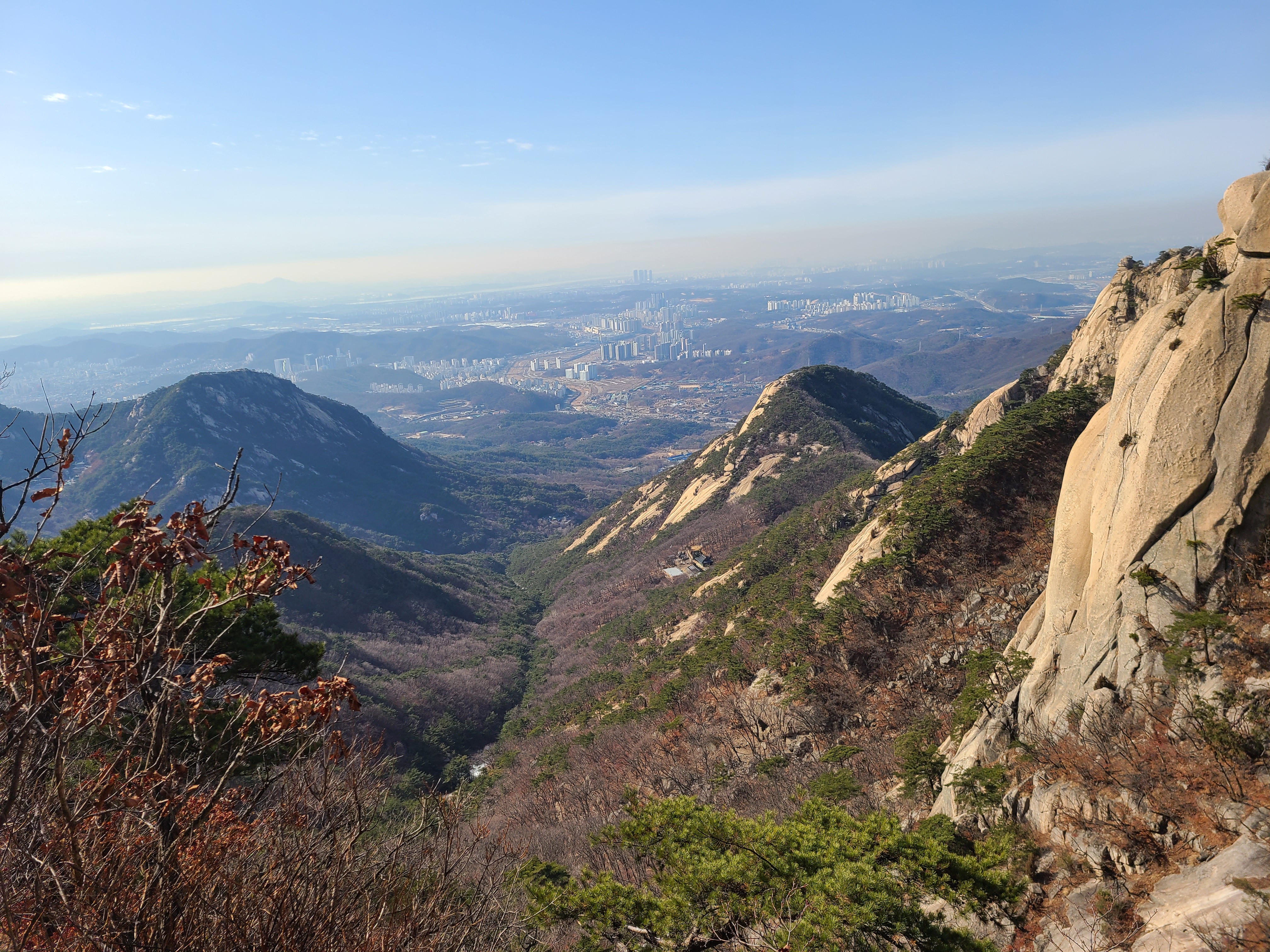 원효암을 지나 암봉에 오르니 쾌청한 날씨에 불광동일대와 일산지역이 눈아래로 조망된다.