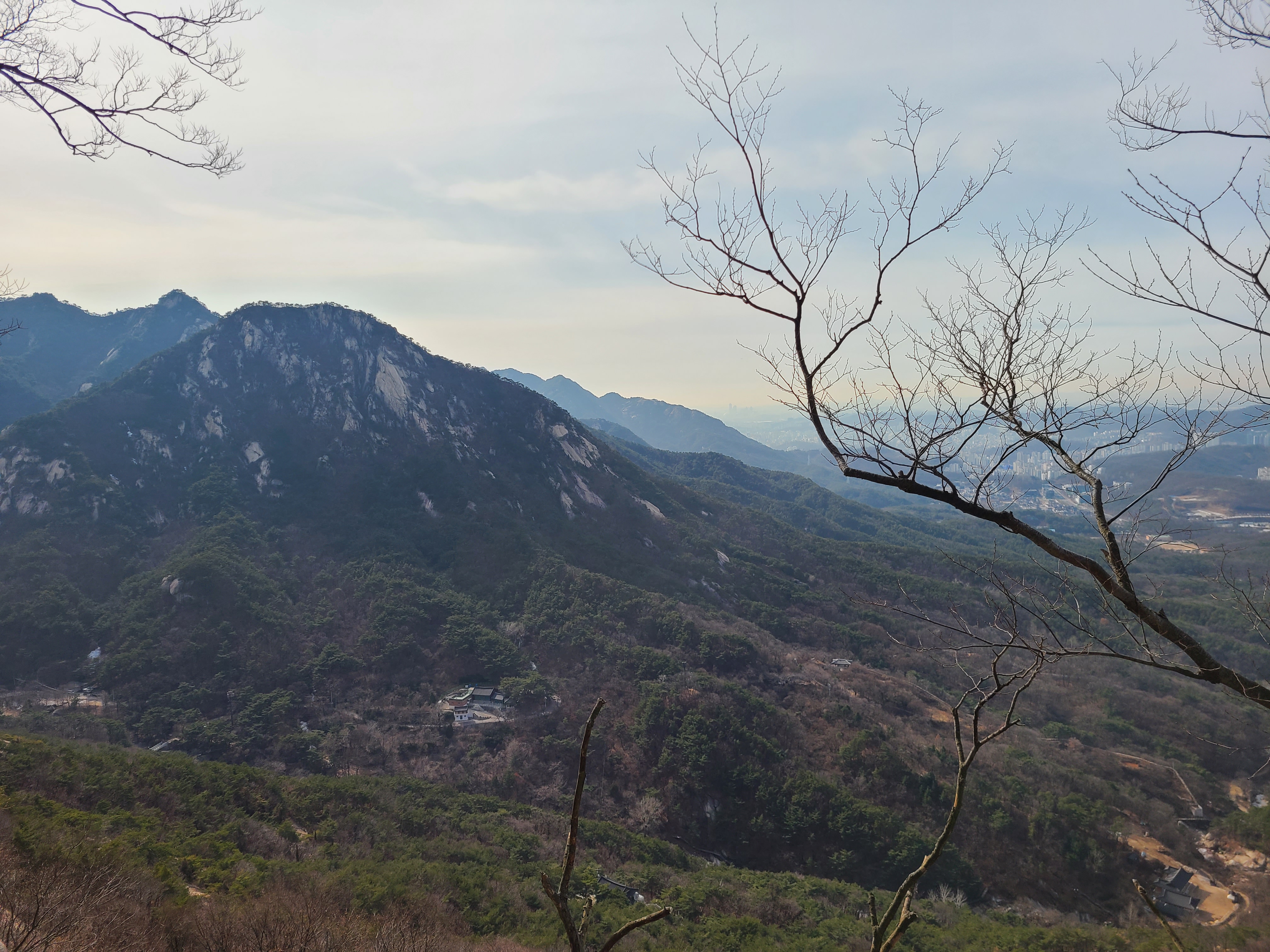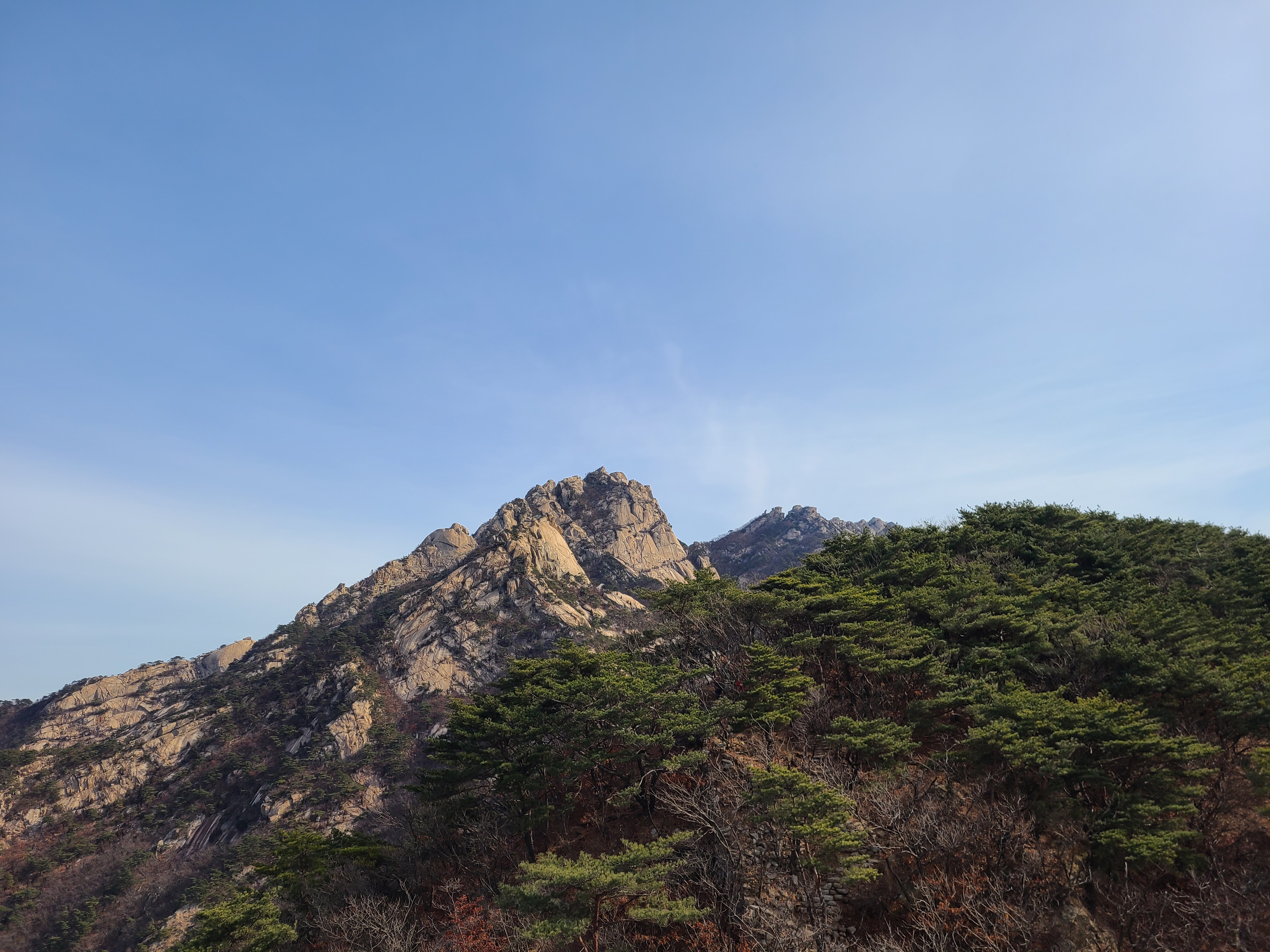 봄이면 진달래로 붉게 물들 능선이 마른가지만으로 겨울을 보내고있다.