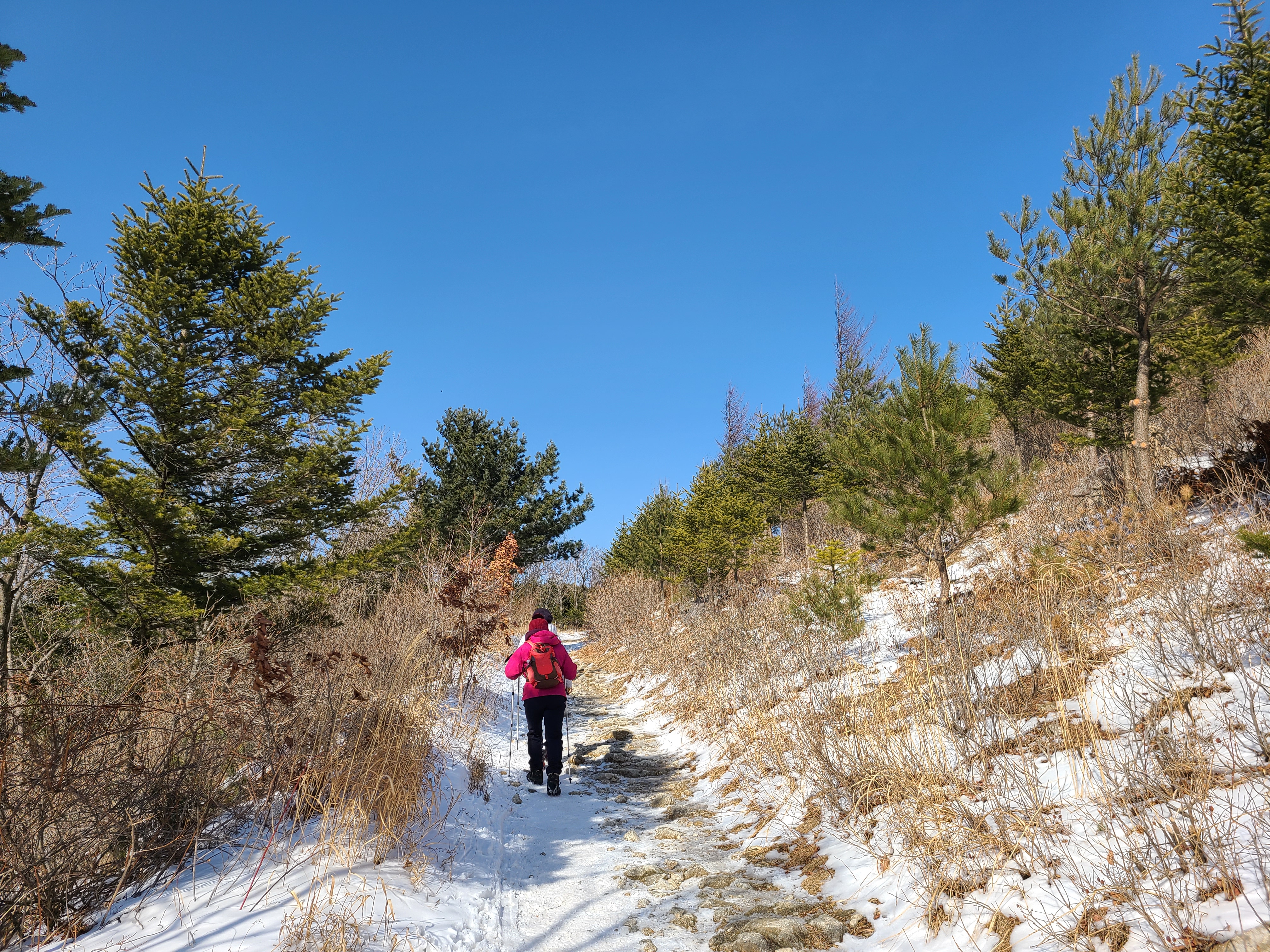 그러나 기대했던 눈산행은 거의 포기수준이다. 내린눈이 군데군데 있기는 하지만 기대에 미치지 못하고 그나마도