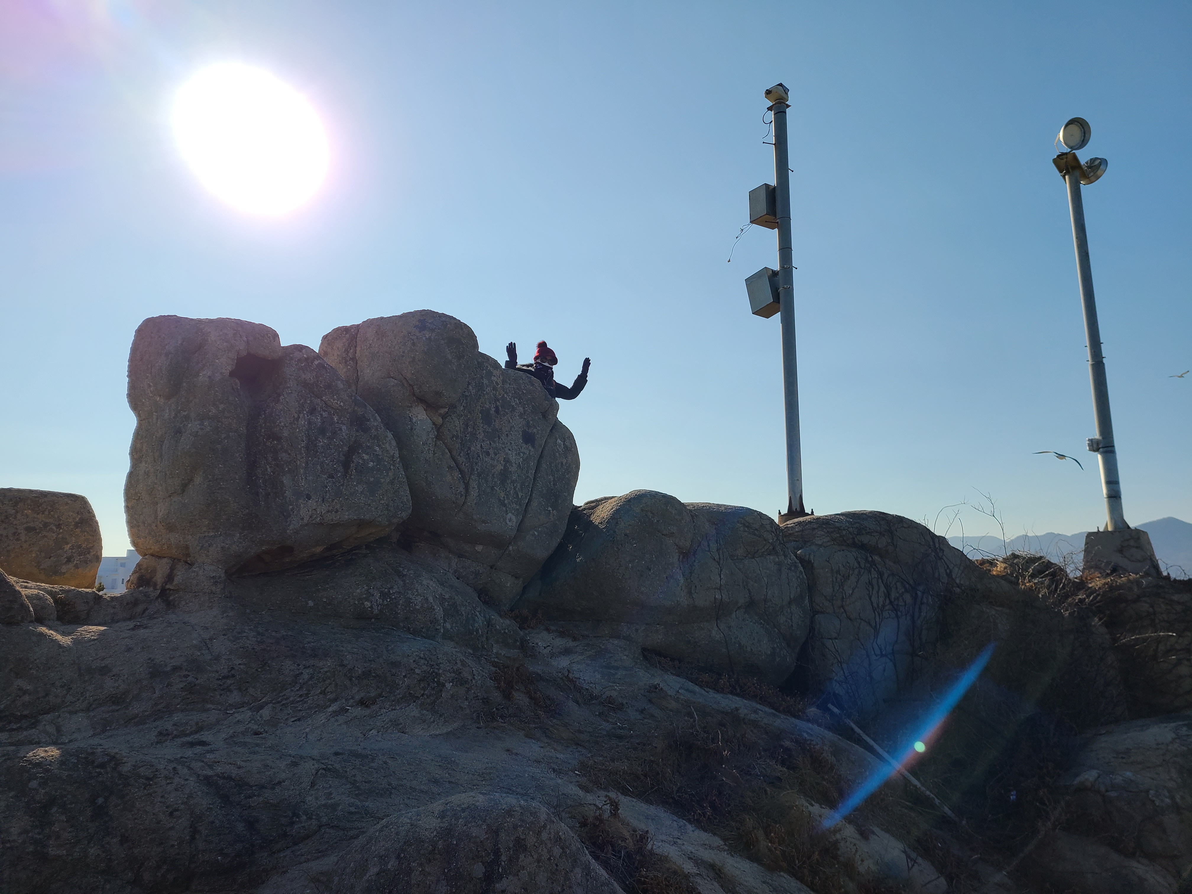 맑고 그리 춥지않은 날씨이나 바람이 거세다.