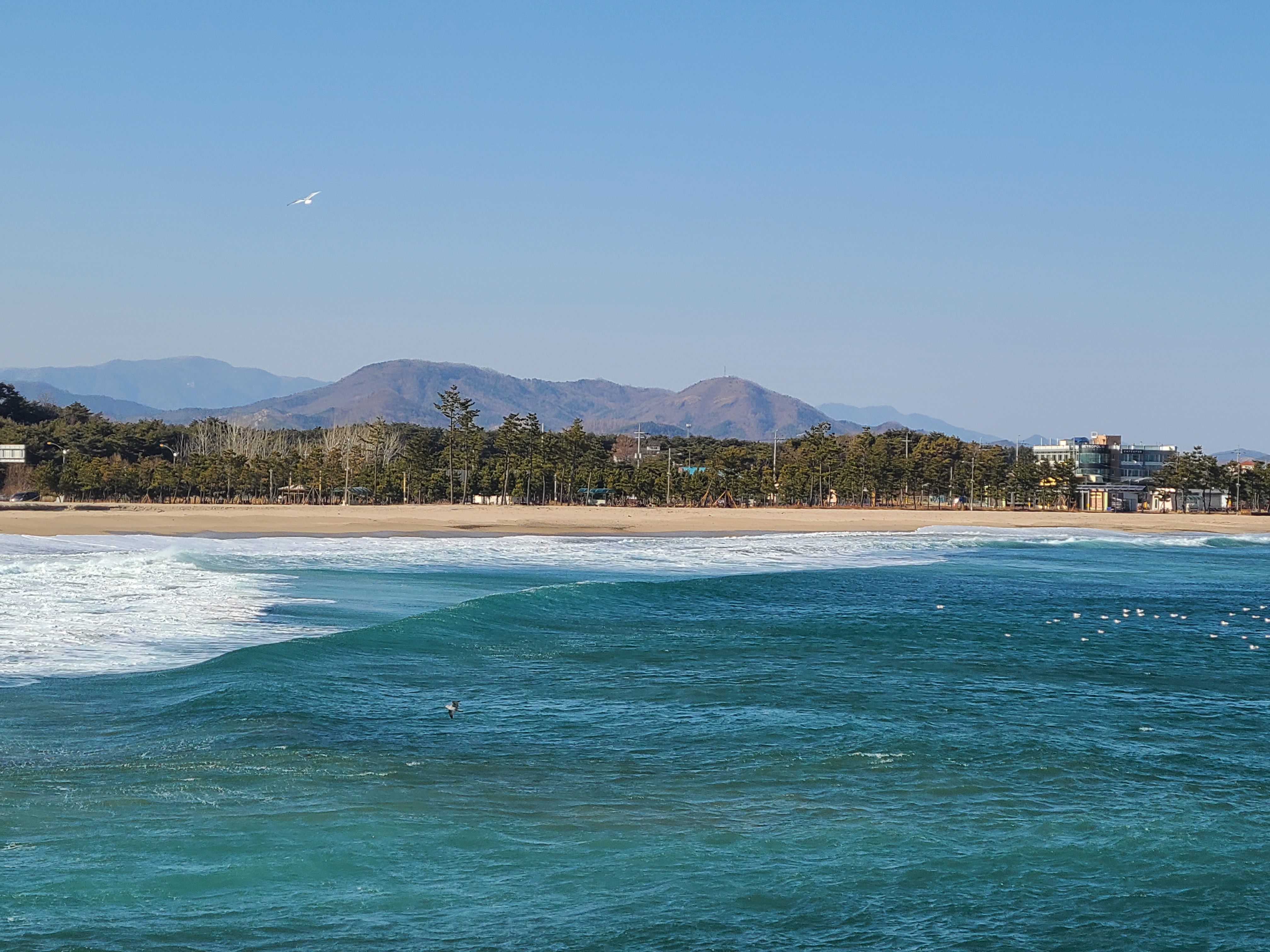 바람이 조금 신경이 쓰이지만 그것이 아니면 그래도 따뜻한 겨울철에 푸른바다를 바라보며 하염없이 걷는것이