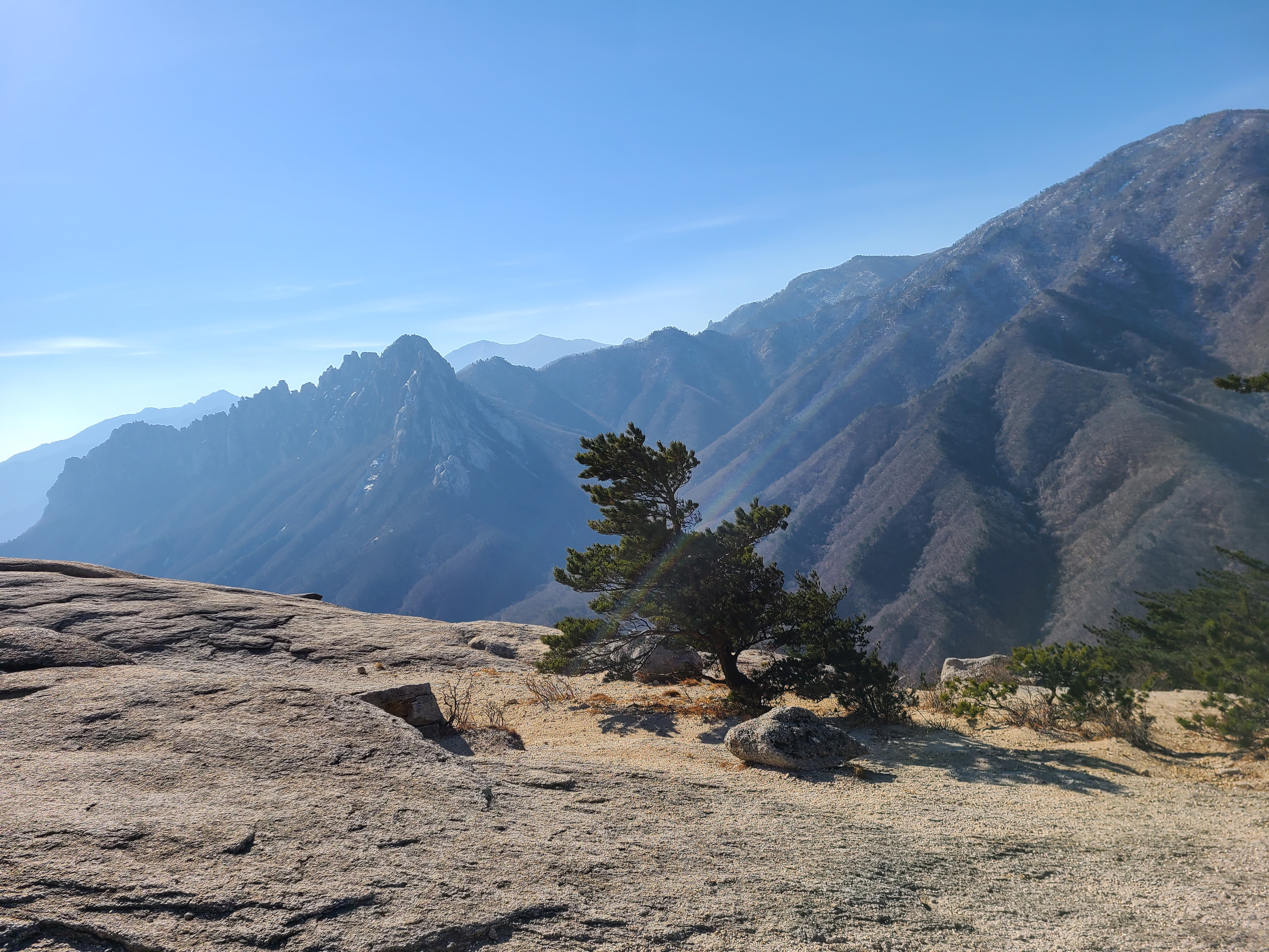 고성,속초일대와 동해바다가 내려다보이고 울산바위와 설악의 웅장한 모습이 장관인 모습이 연출된다.
