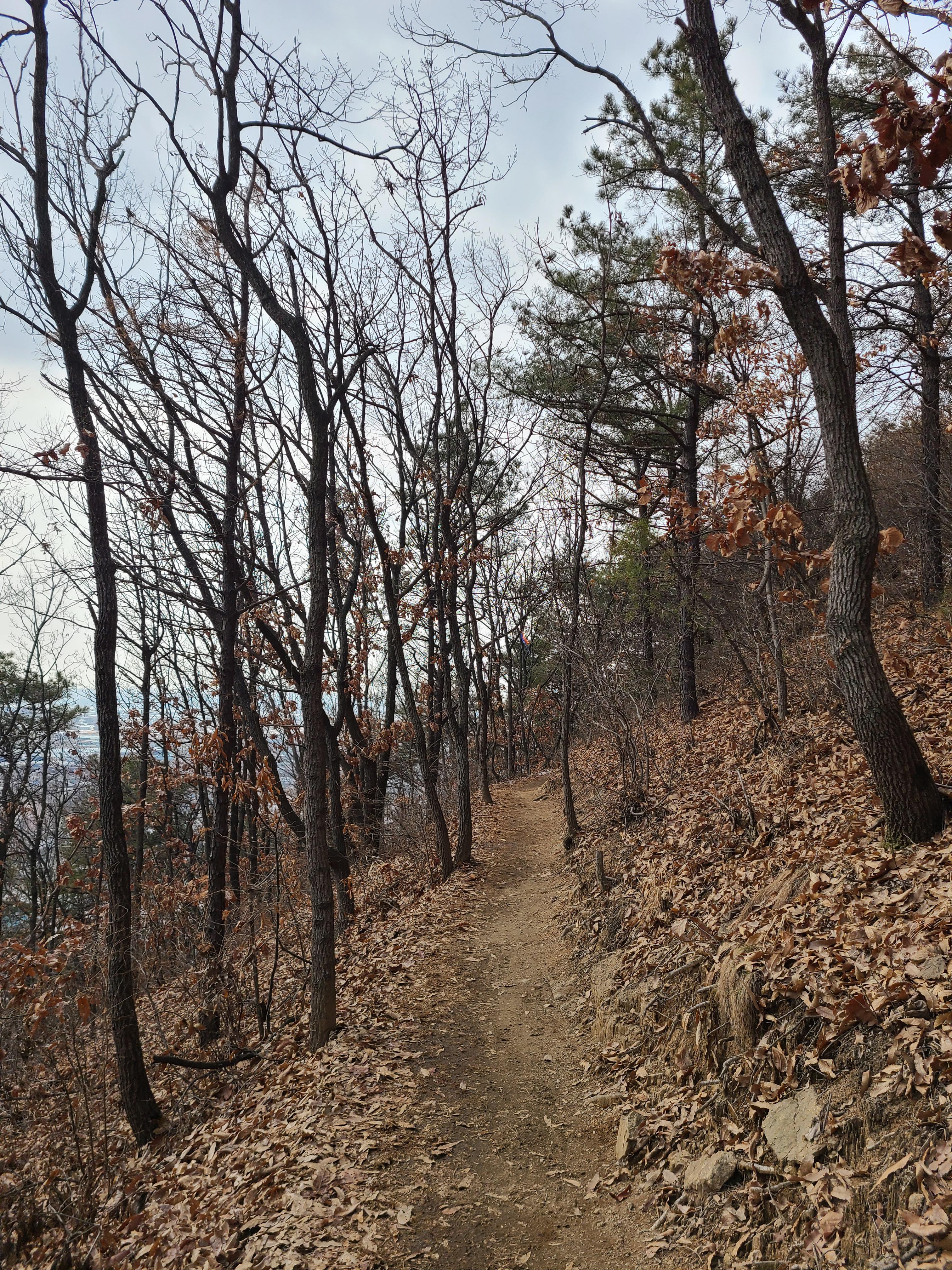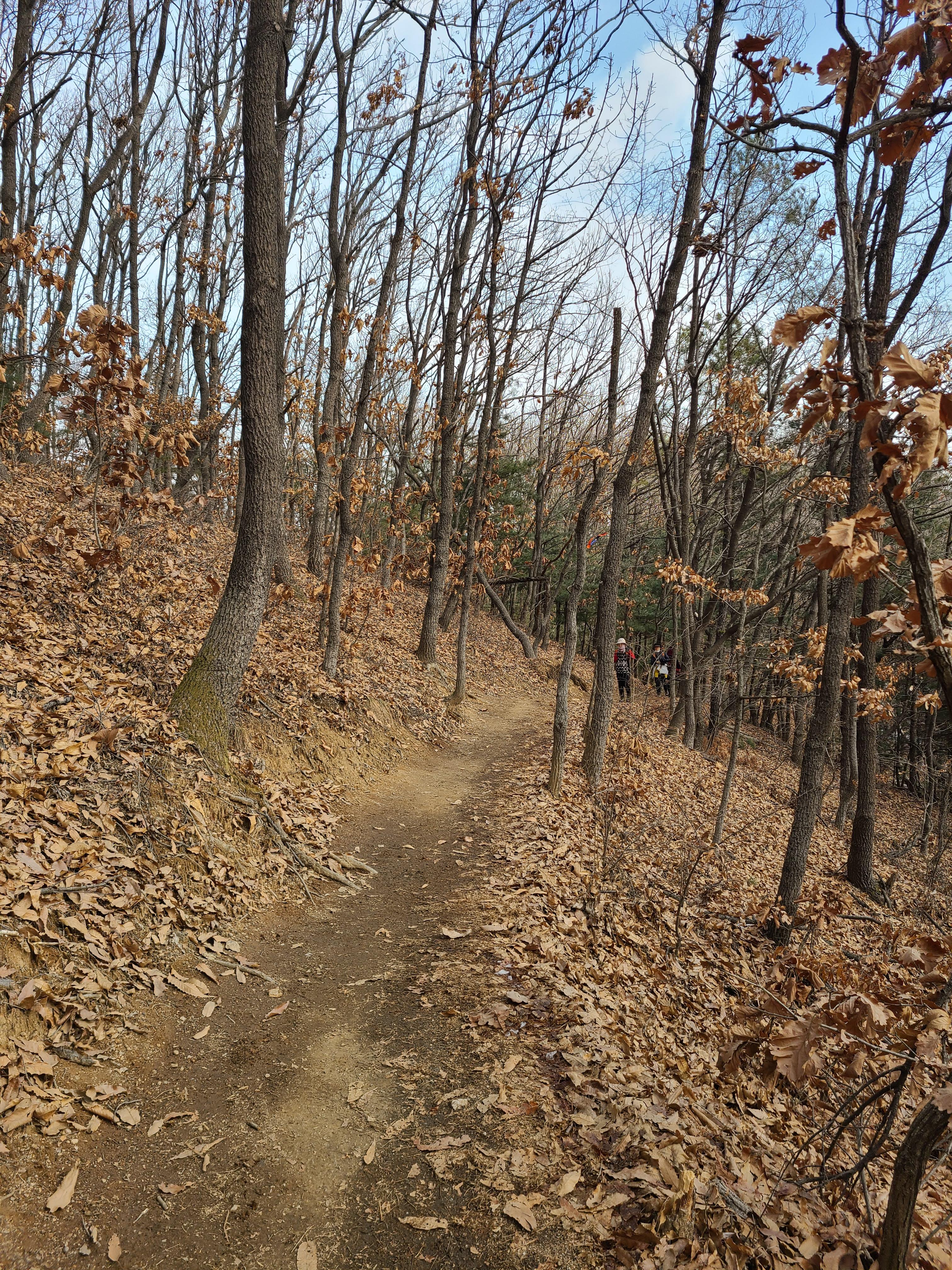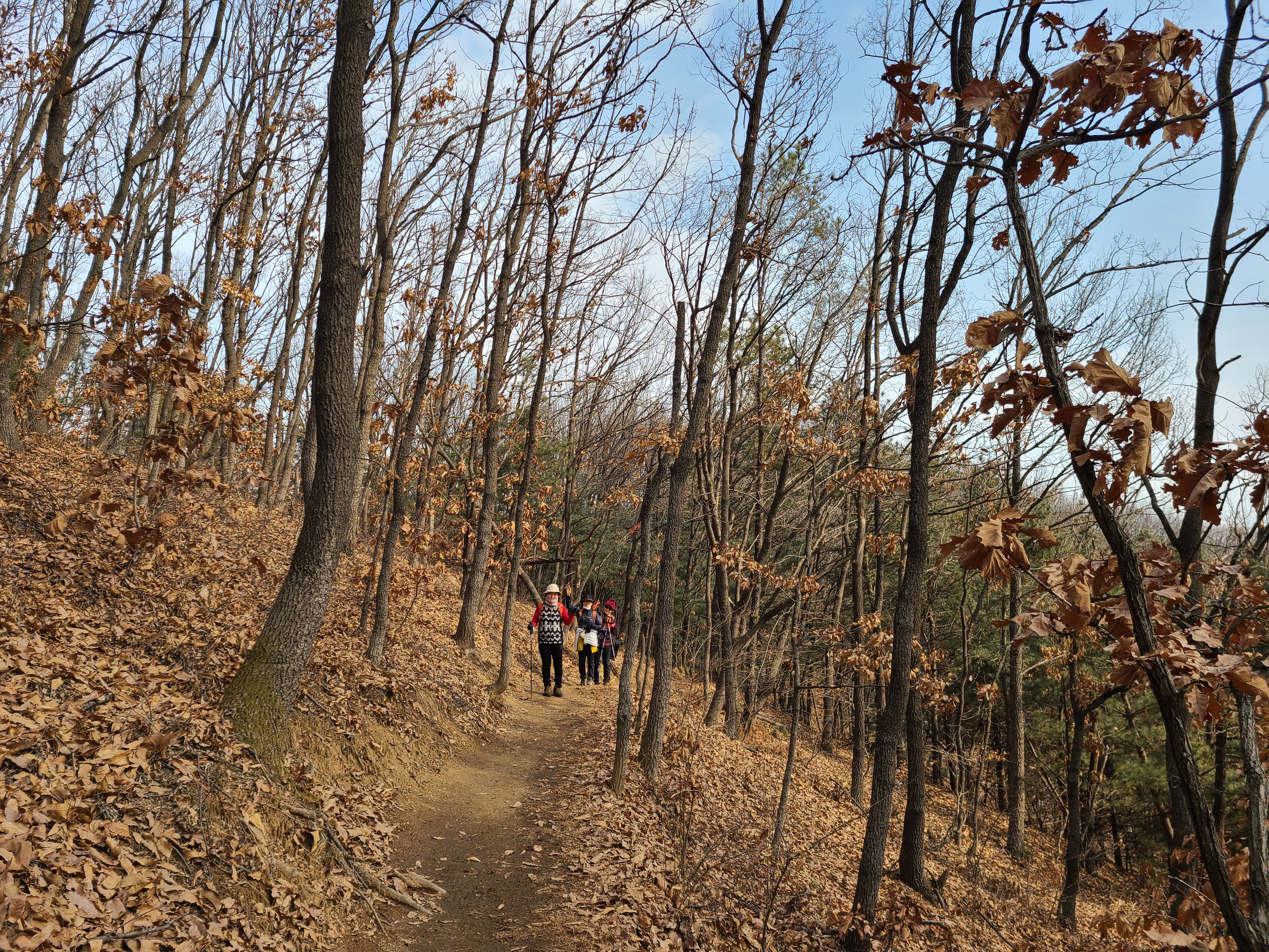 며칠전 내린눈이 쌓여 걸어온 음지녘의 길은 거의 눈으로 덮여있으나 그렇게 미끄럽지가 않아