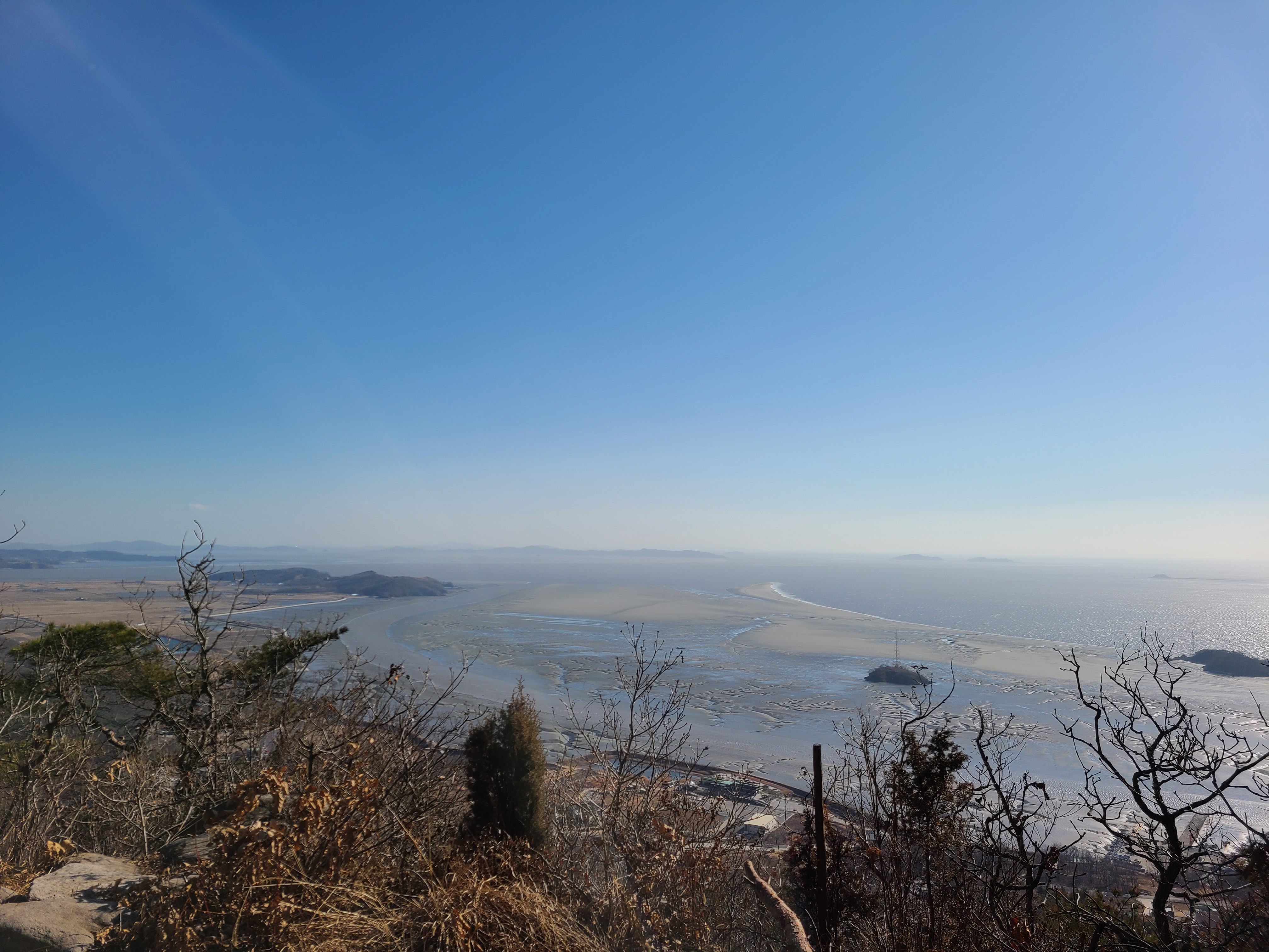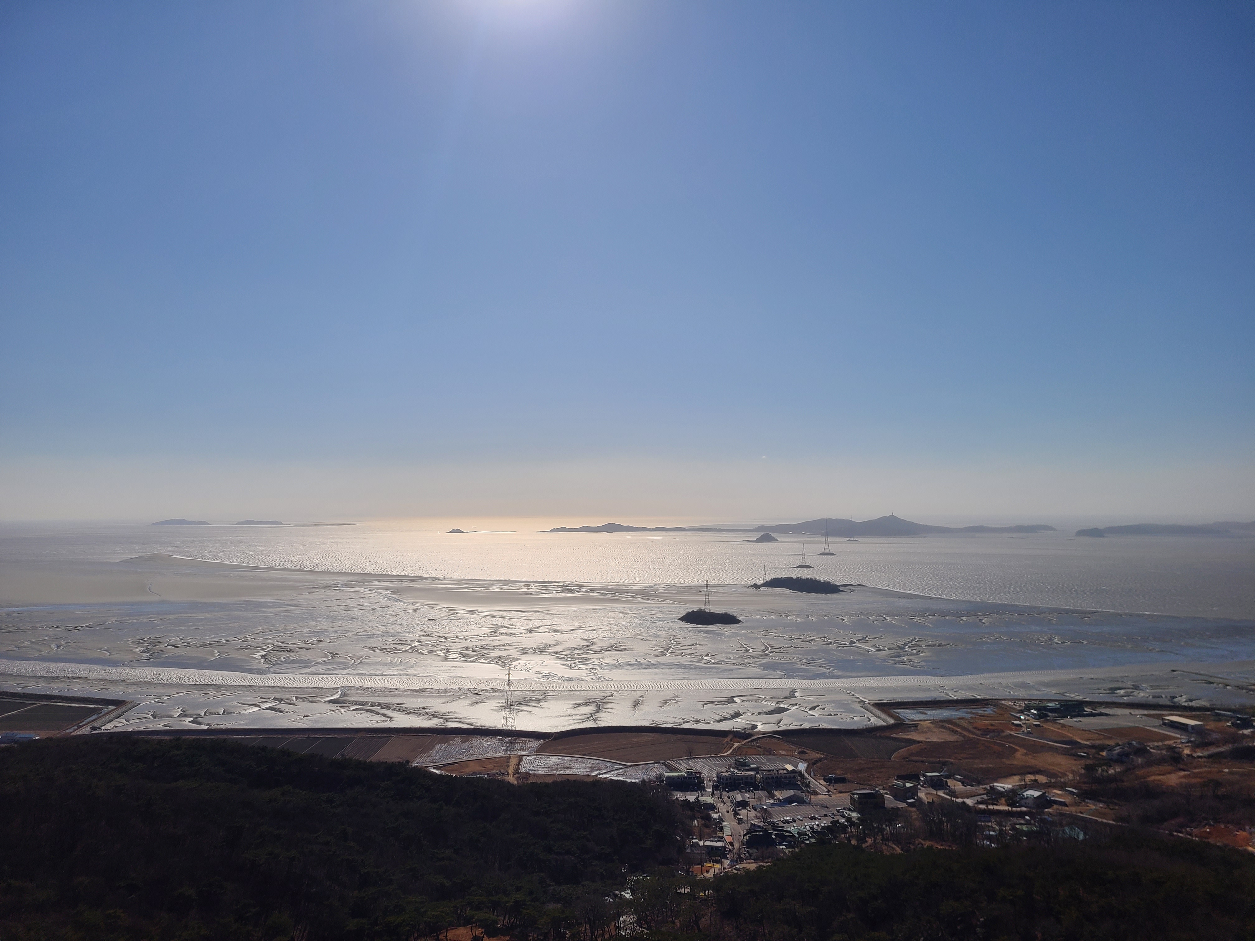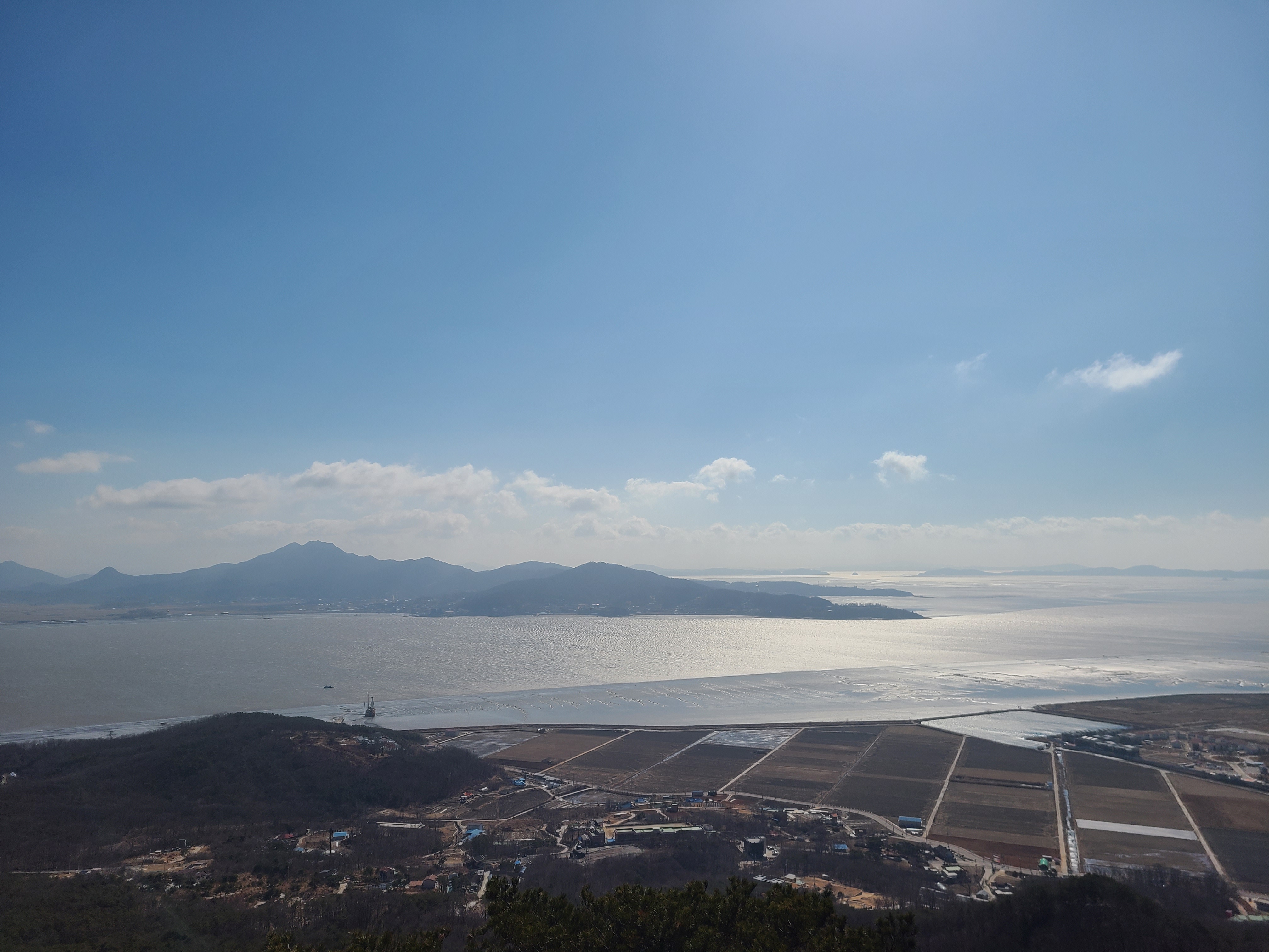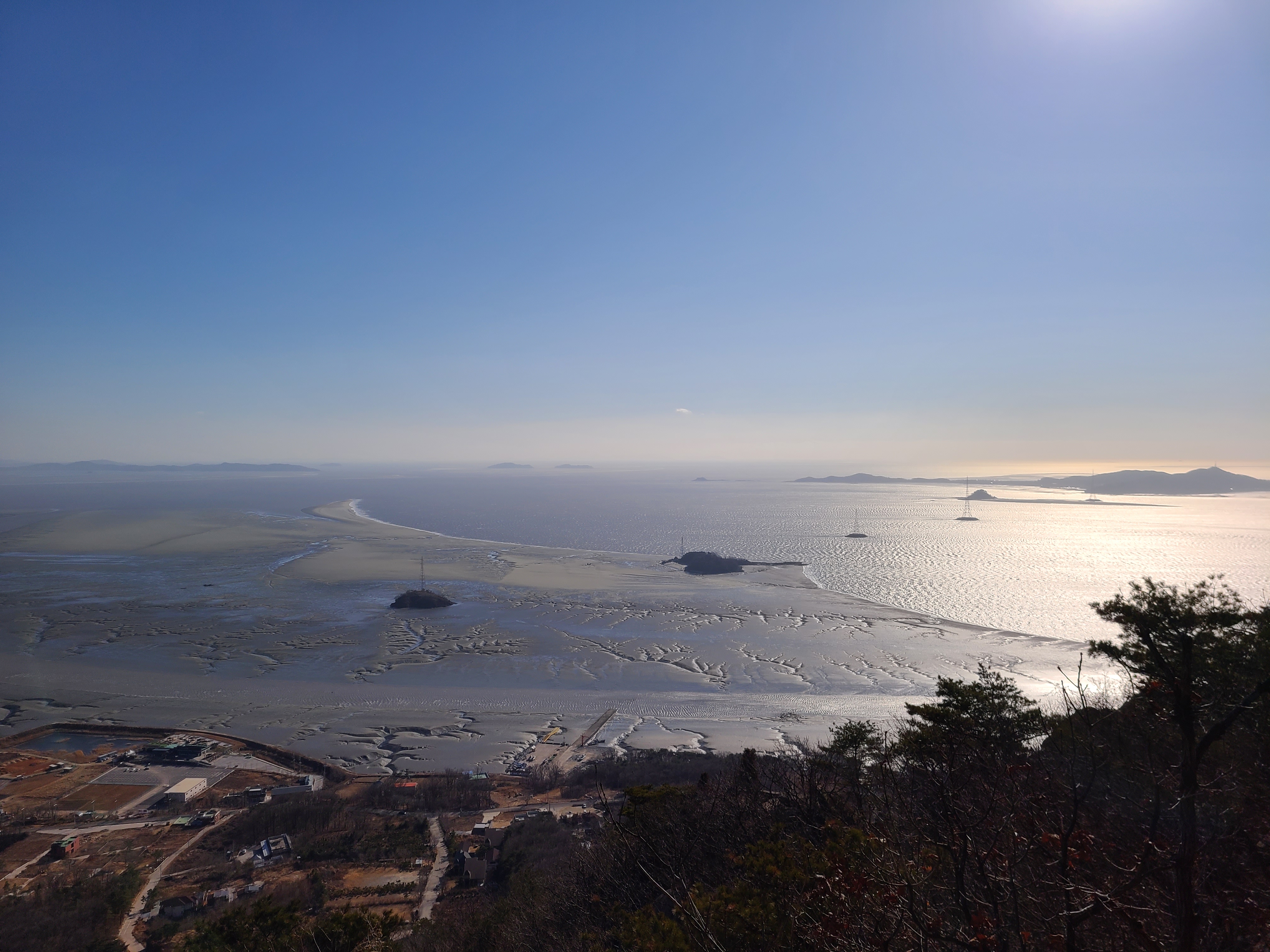 태양아래 반짝이는 서해바다와 갯벌을 바라보며 걷는 산길은 적당한 바람과 싸늘함에도 그리 추위를 느끼지않고