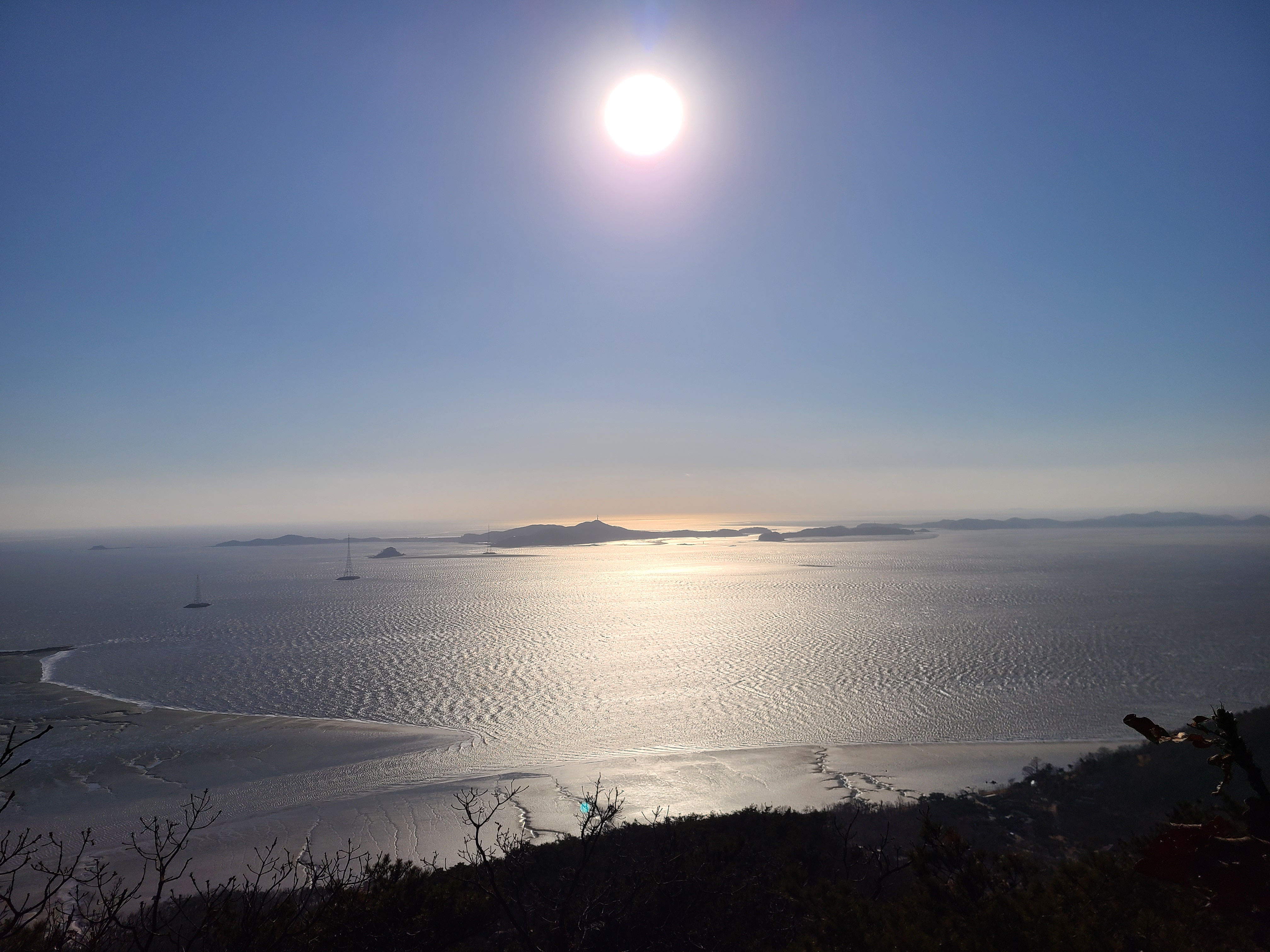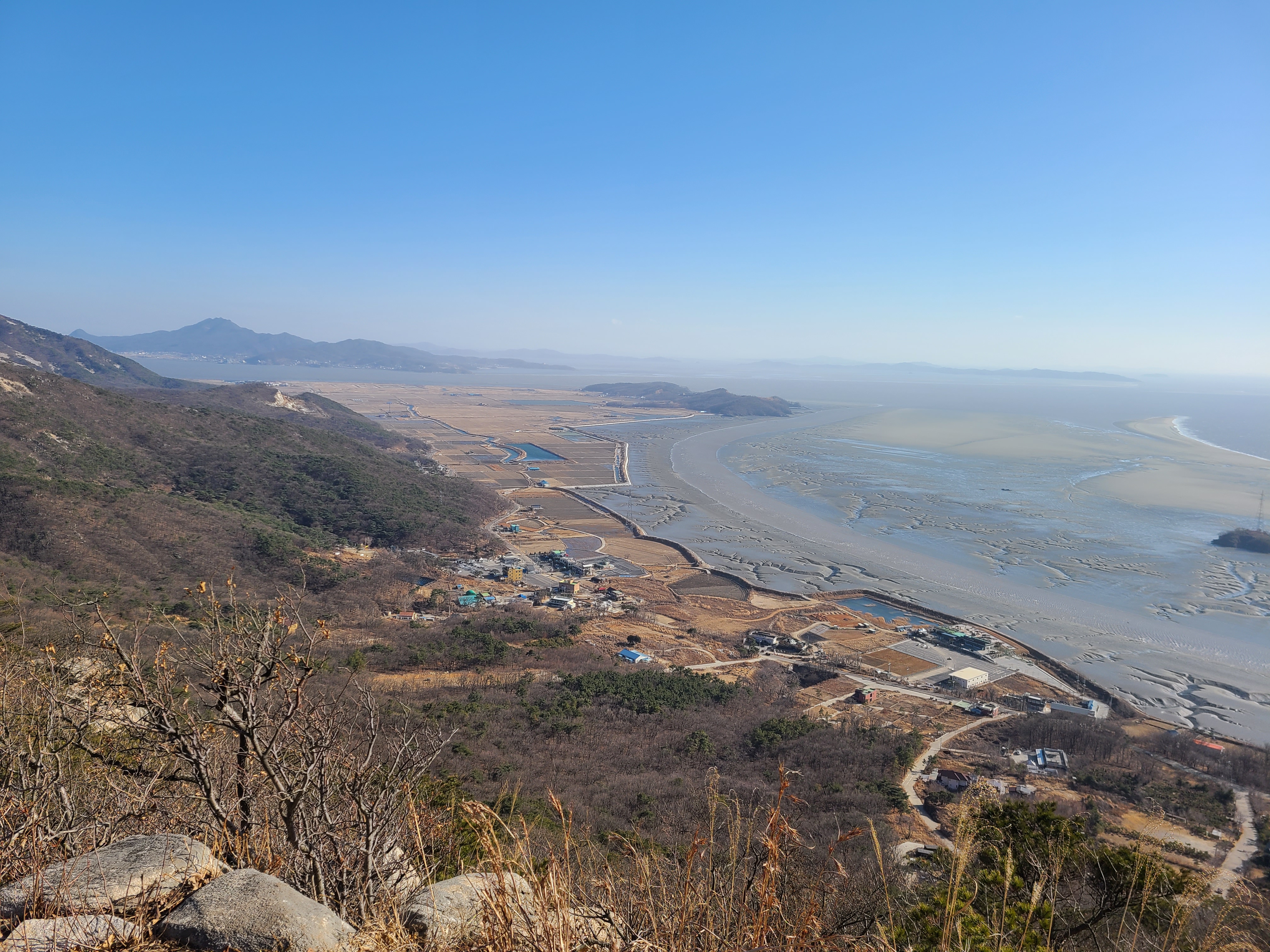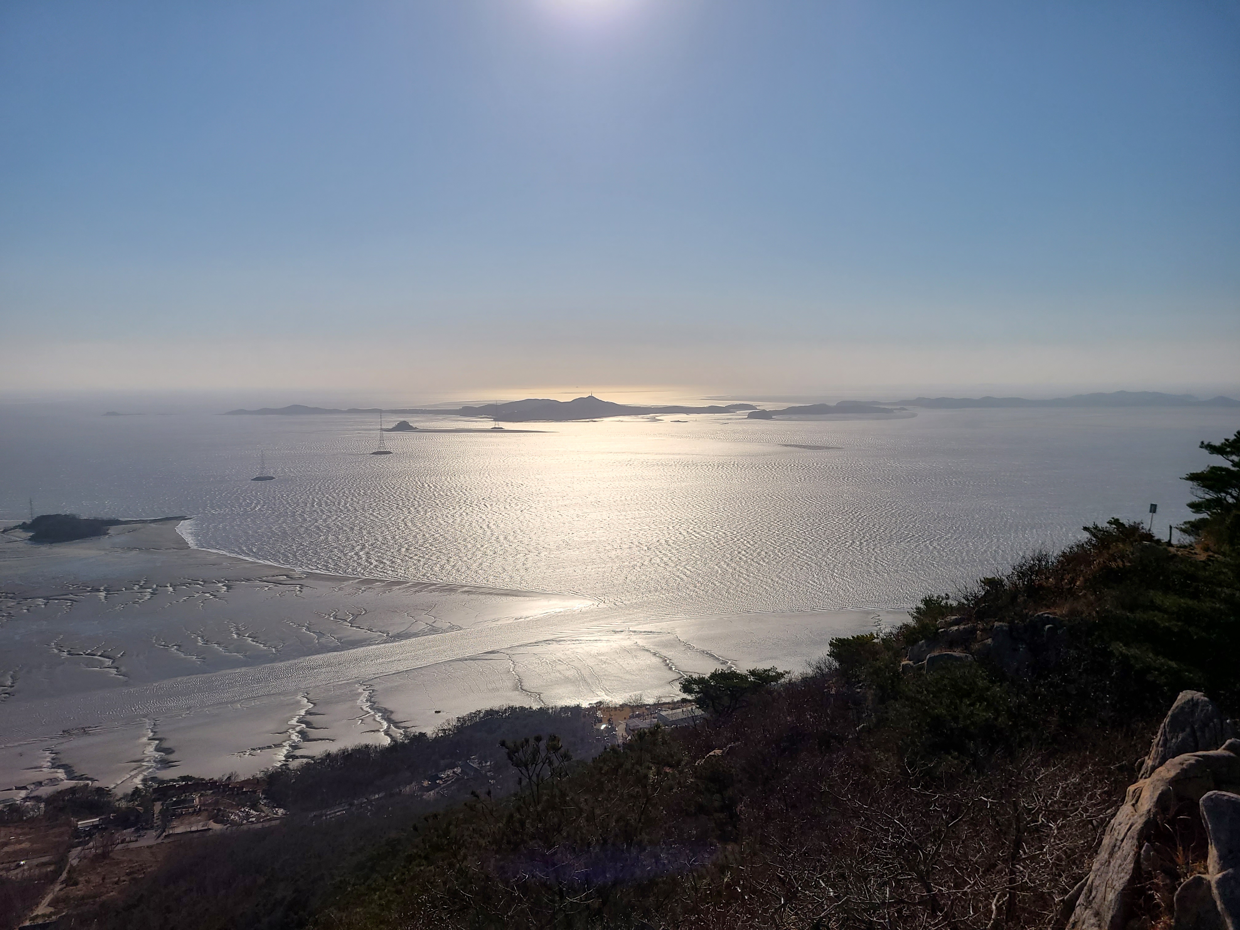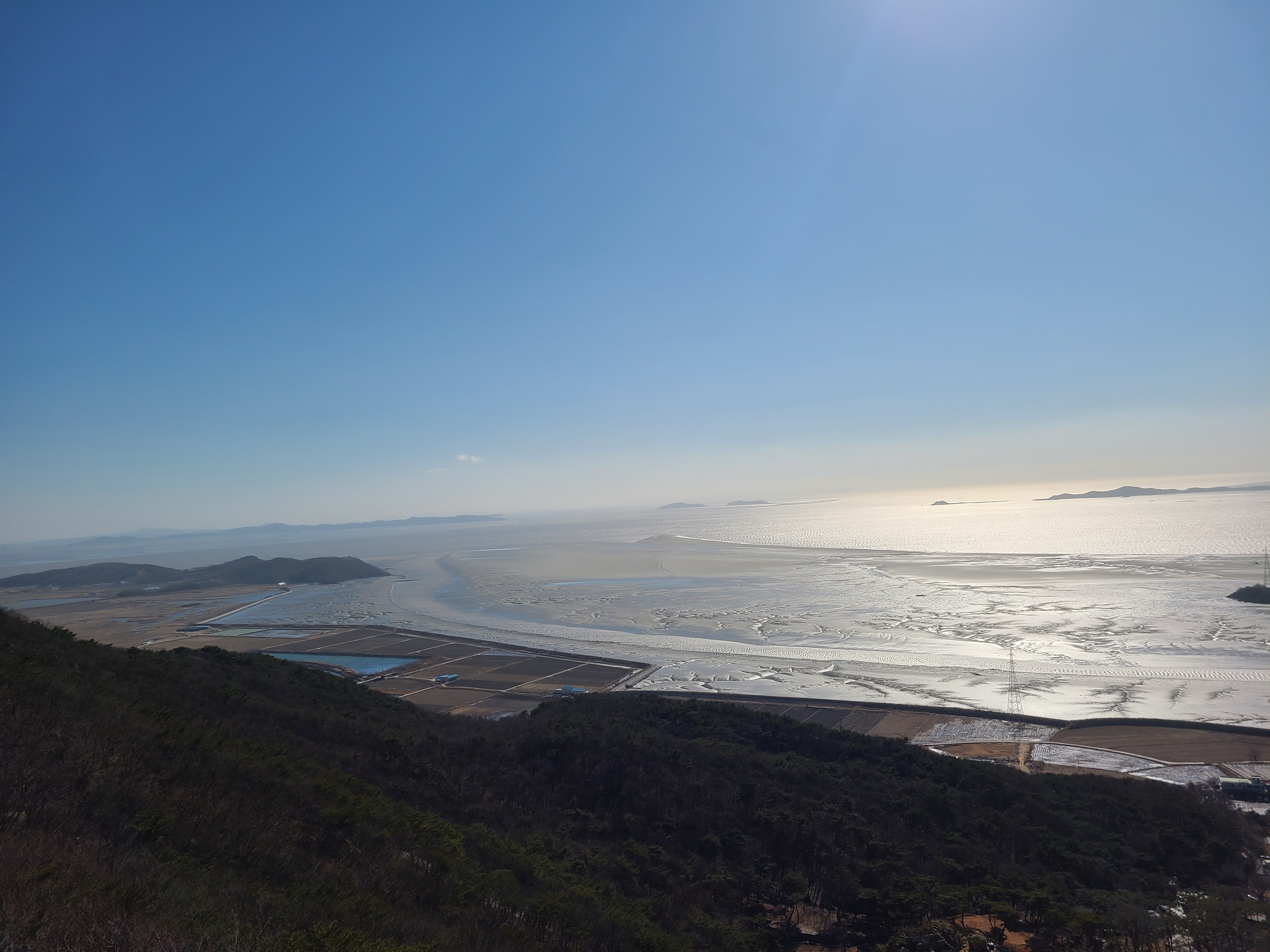 태양아래 반짝이는 서해바다와 갯벌을 바라보며 걷는 산길은 적당한 바람과 싸늘함에도 그리 추위를 느끼지않고