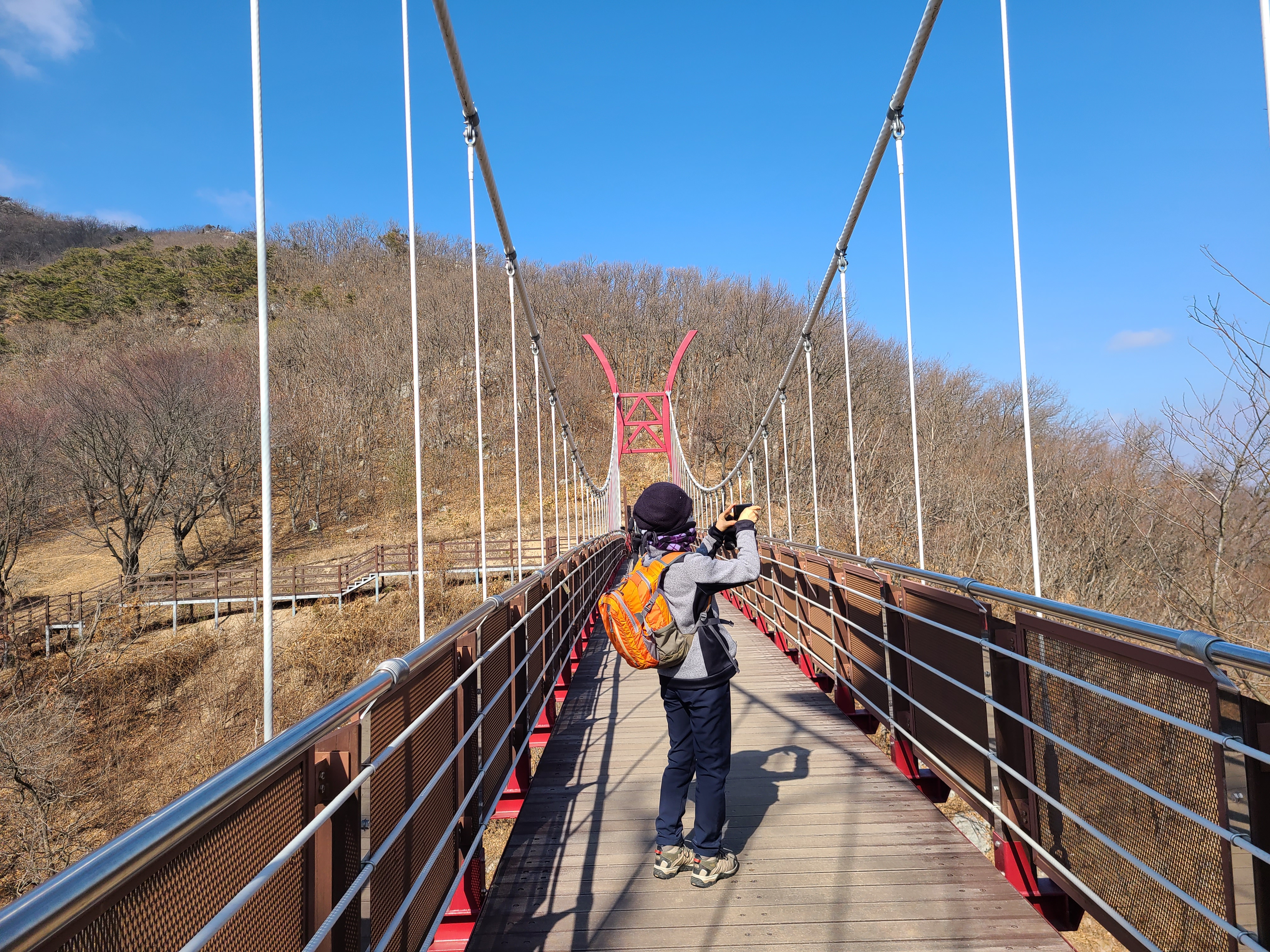 해명산을 지나 바람이 없는 양지녘에서 준비한 컵라면과 과일로 속을 채운다.