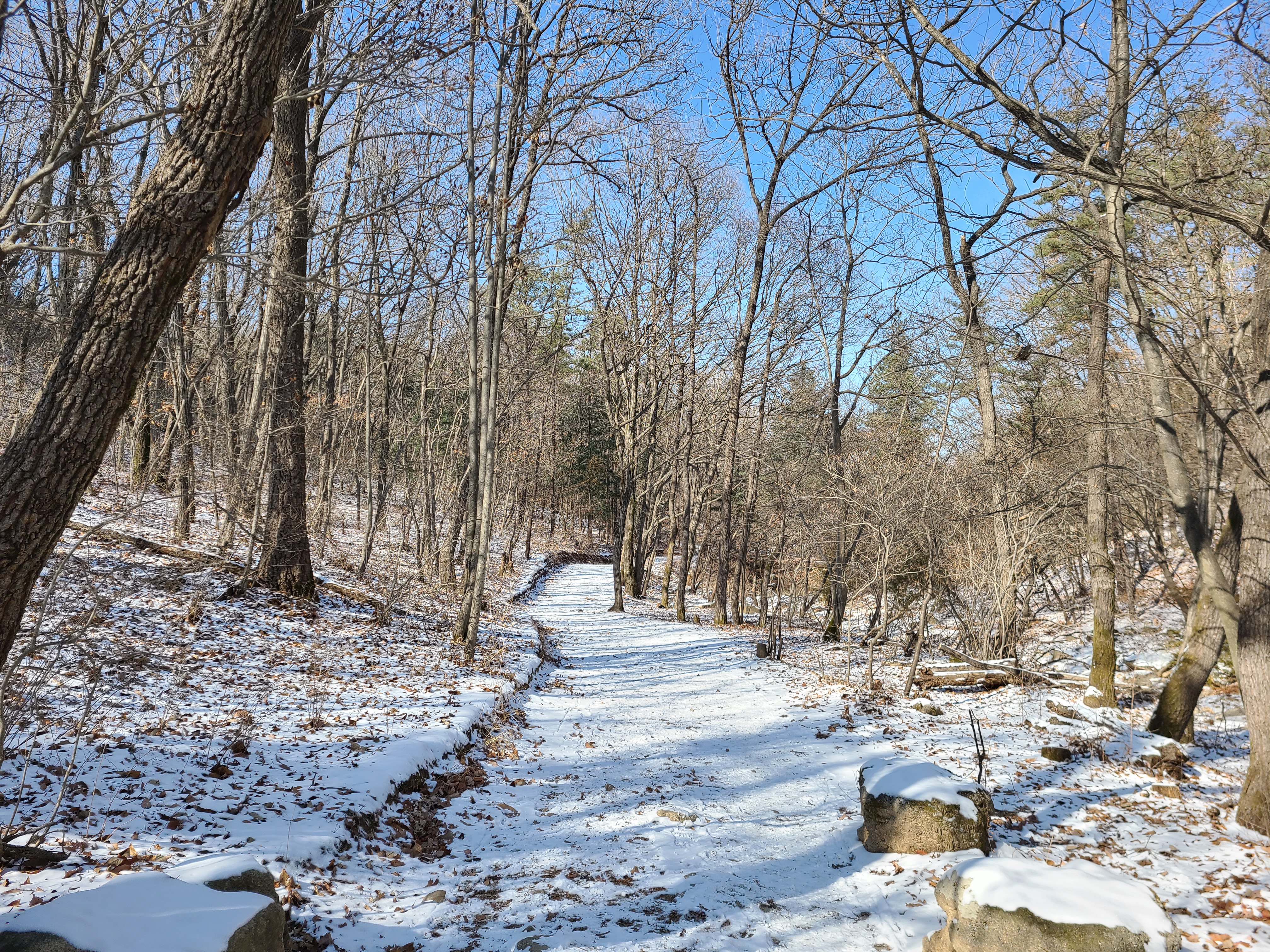 어제내린 눈이 그대로 쌓여있는 호암산을 걷는다.