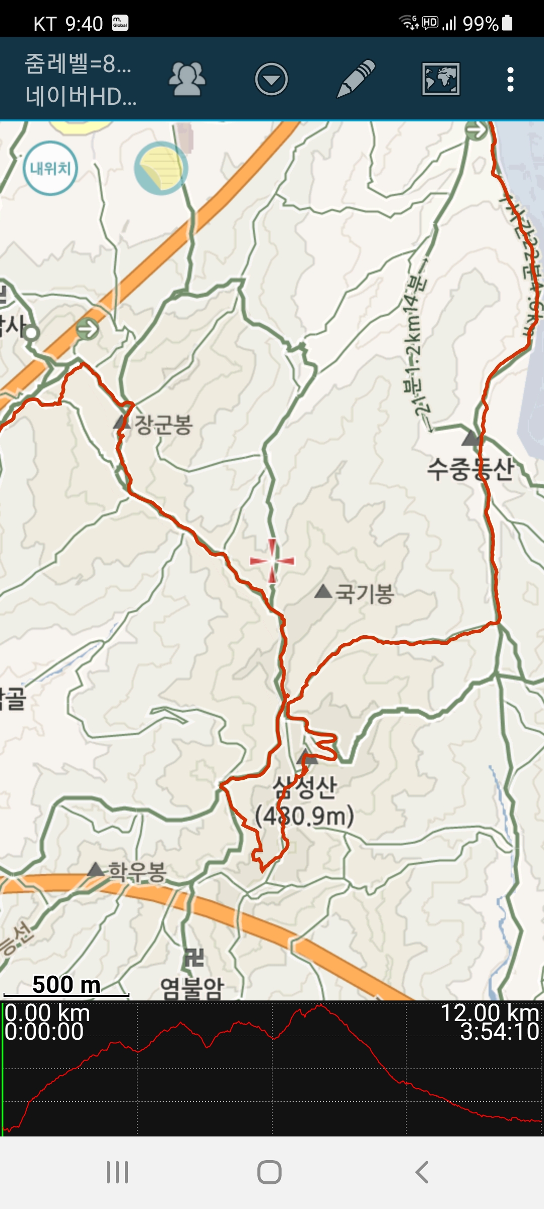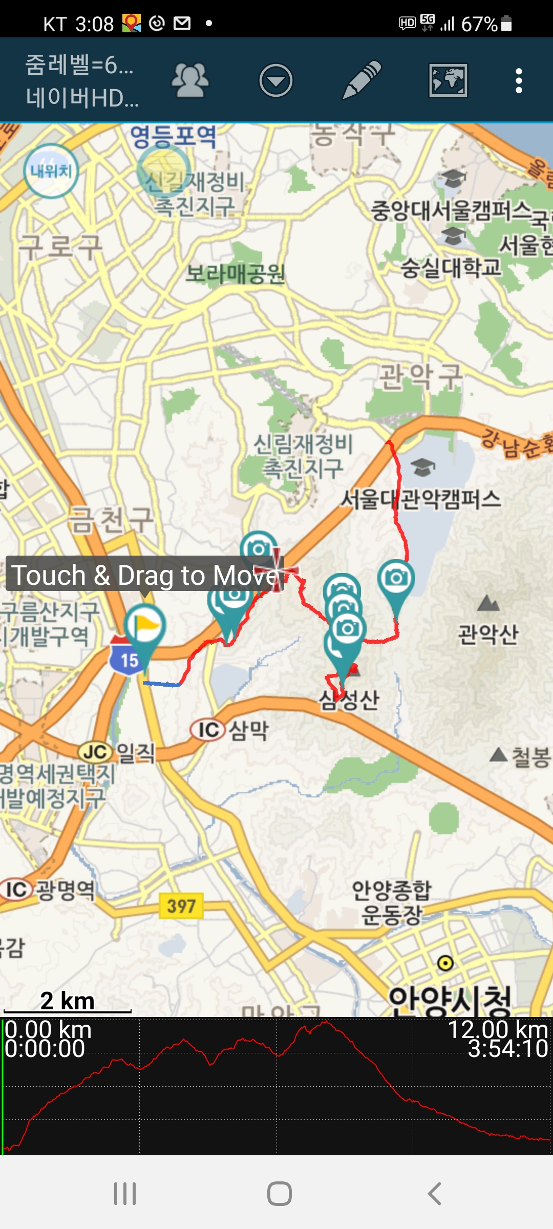 4시간20여분에 걸쳐 12키로의 호암,삼성산을 기분좋게 걷는 하루였다.
