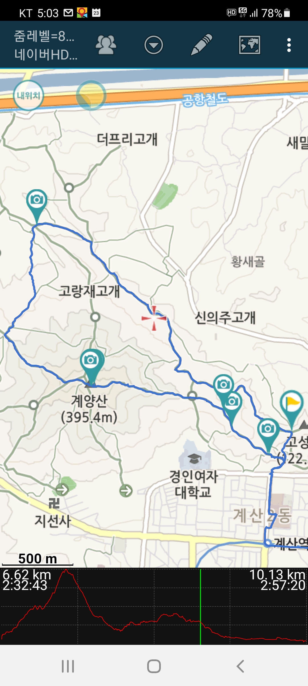 3.공영주차장-계양산성-정상-고랑재고개-인천둘레길코스-원점회귀, 8.5km